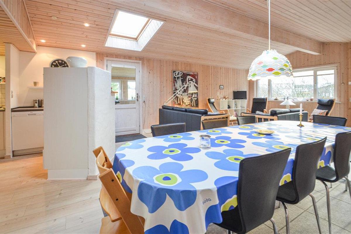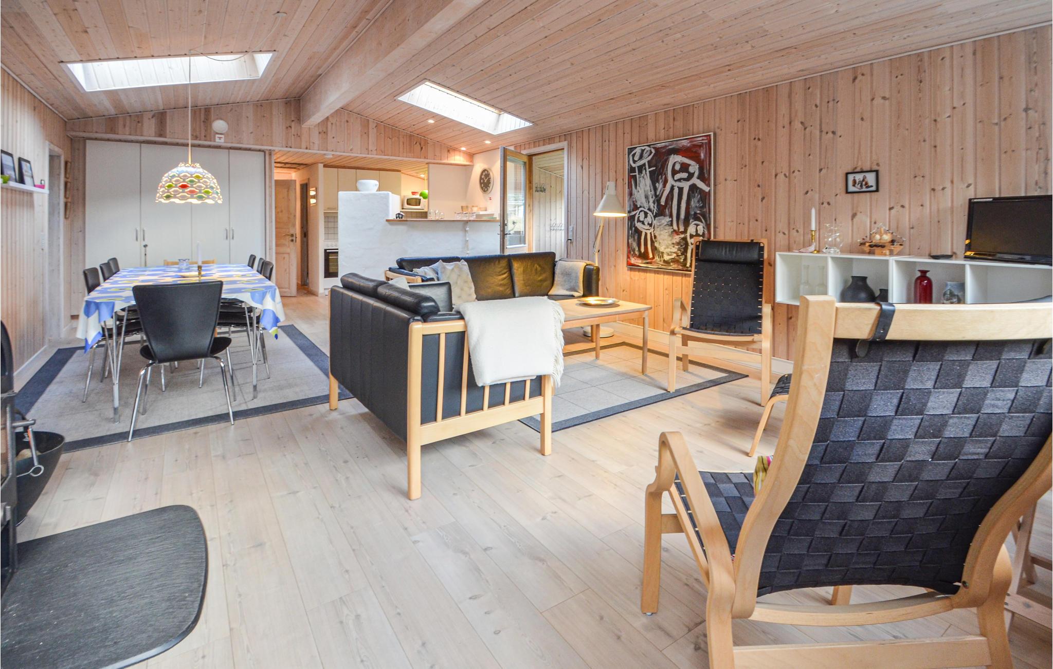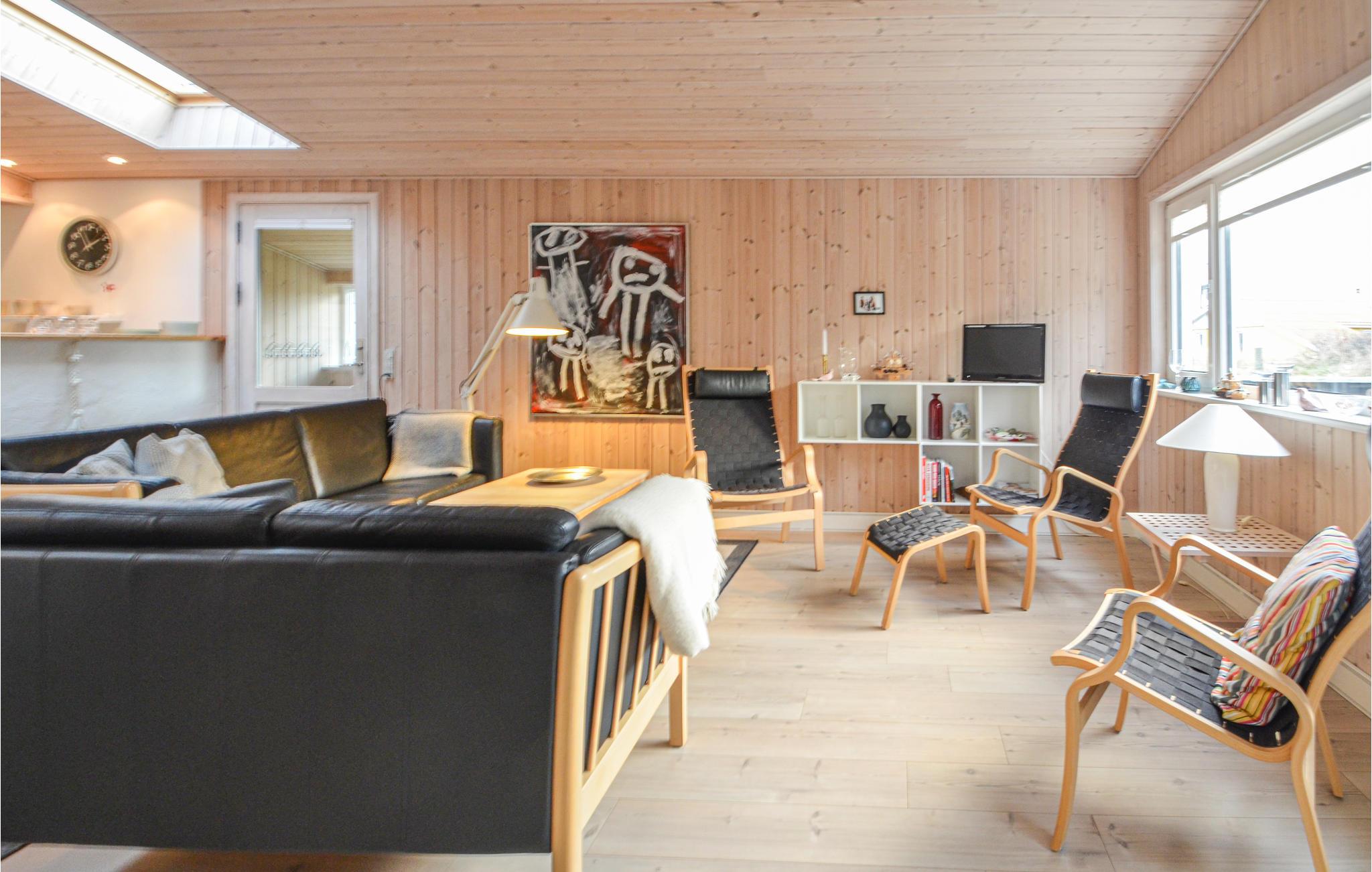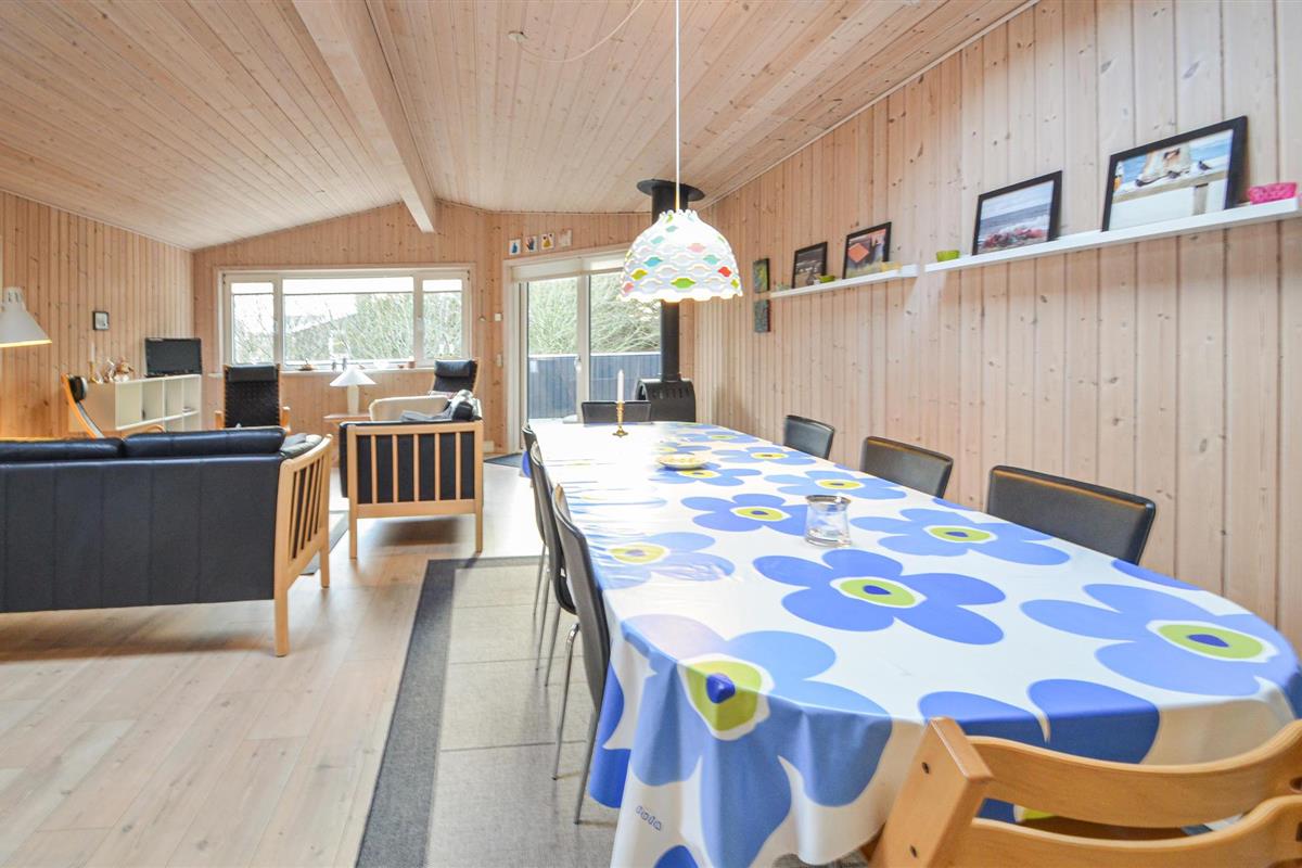 Klassiek houten vakantiehuis op een groot natuurgrondstuk in het vissersdorp Vorupør Strand aan de kust. Grote, open keuken met goed uitgerust keukengerei - het huis is zeer geschikt voor self-catering en mensen die ook op vakantie graag koken. De woonkamer en het eetgedeelte grenzen direct aan de keuken. Buiten vindt u een prachtig houten terras, dat volledig omheind is - dus ouders met kinderen hoeven zich geen zorgen te maken dat ze de kleintjes uit het oog verliezen. 3 slaapkamers, elk met 2 tweepersoonsbedden en een eenpersoonsbed, bieden voldoende ruimte voor 4 personen. Vorupør Strand heeft geweldige, brede stranden en er is ook iets voor geschiedenisliefhebbers - u kunt leren over de geschiedenis en het leven aan zee in het plaatselijke museum van Vorupør.