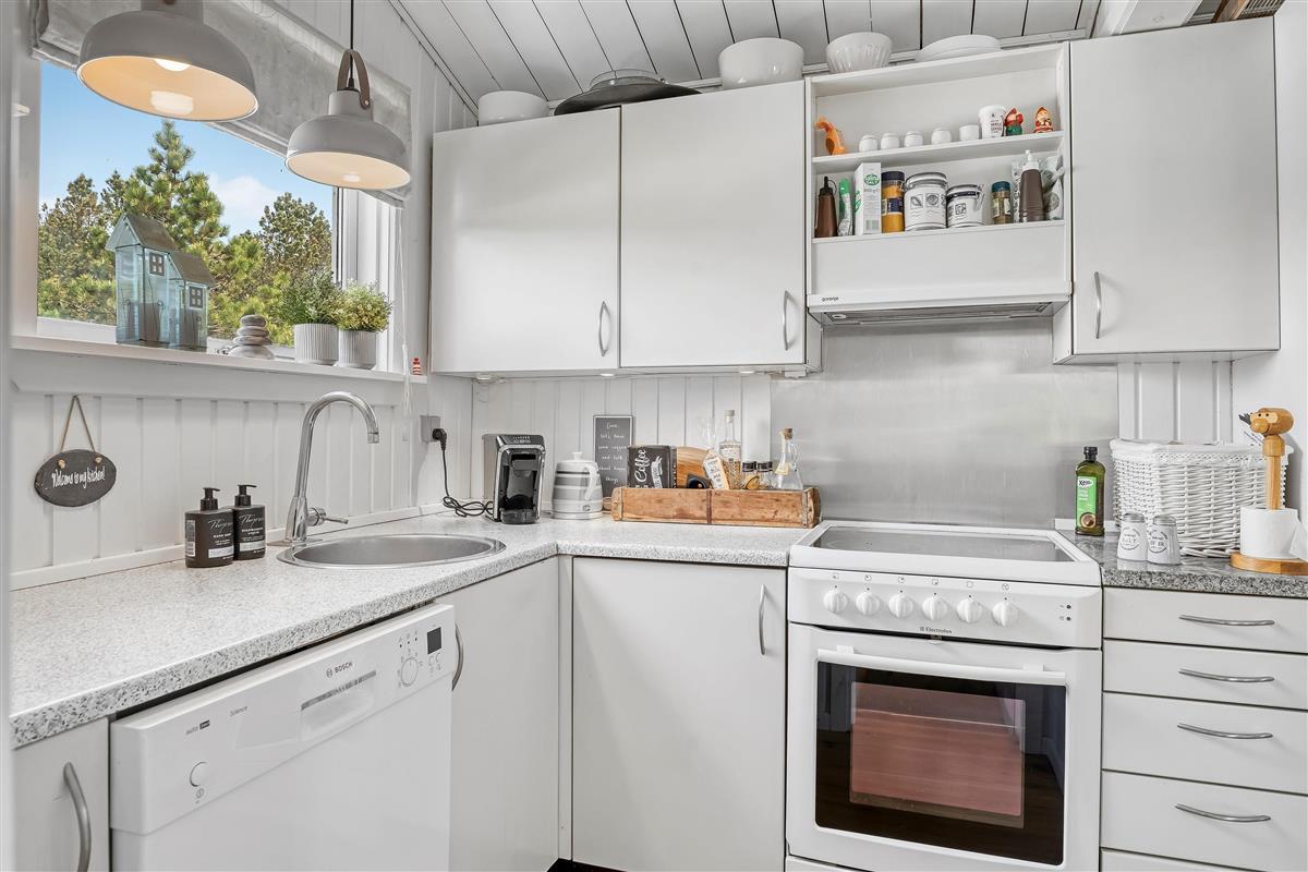 The interior of the house radiates comfort and functionality with an area of 80 square meters. In the living room you will find a wood-burning stove that creates a warm and inviting atmosphere, perfect for those cold evenings. Here you can also find a television with both Danish and German TV, so you can enjoy entertainment in all languages. The house is equipped with wireless internet, so you can stay in touch with the outside world if you wish.