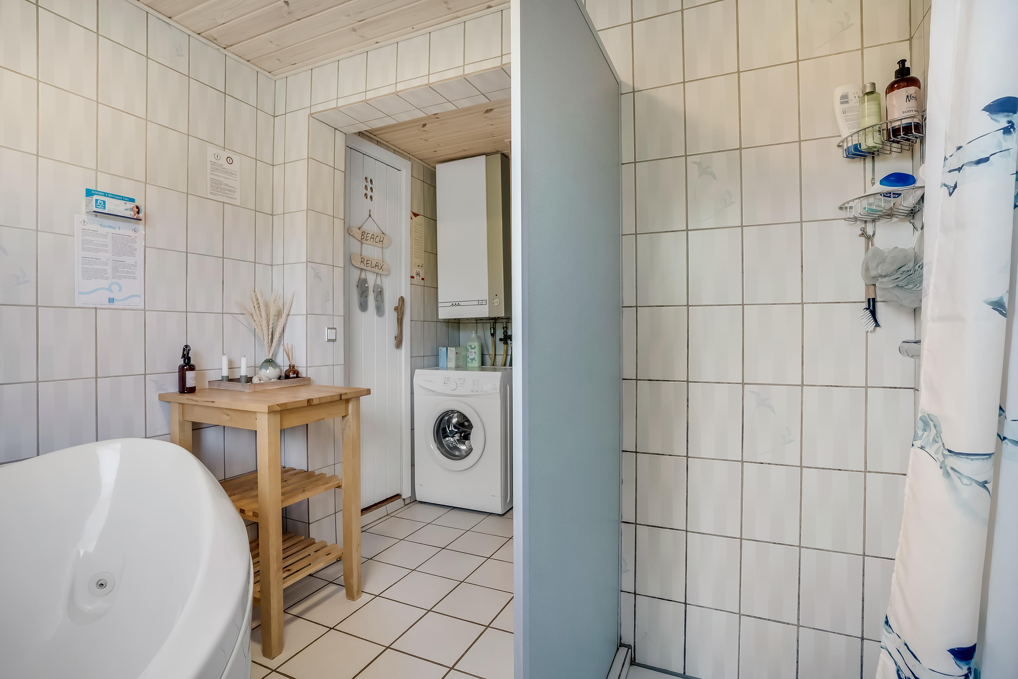 The kitchen is equipped with everything you need to prepare delicious meals. With an induction hob, oven, microwave, dishwasher, fridge and freezer (80 litres), you are well equipped to cook. There is also a barbecue available, so you can enjoy cosy barbecue evenings on the enclosed terrace or the open terrace, where you can relax and enjoy the fresh air.