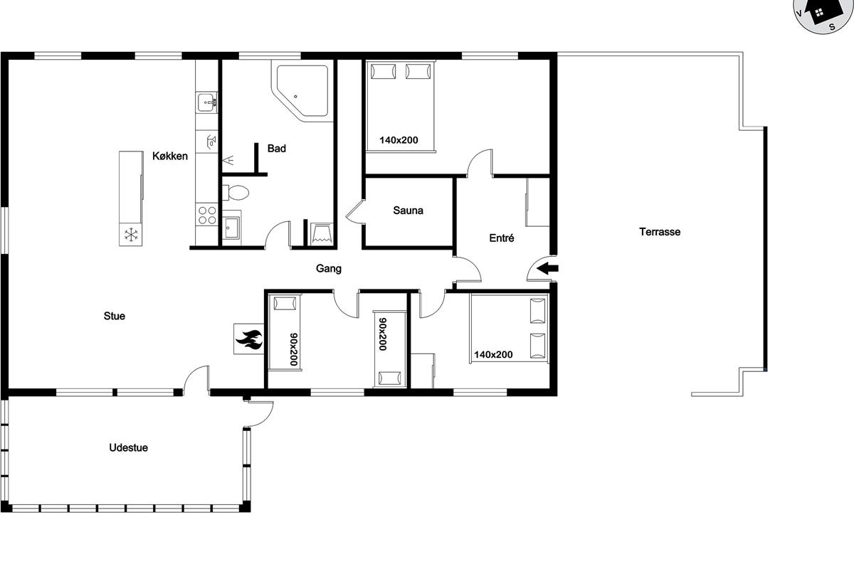 With wireless internet, you can stay connected to the outside world or simply share your vacation experiences with friends and family. This vacation home combines comfort, style and modern amenities to ensure you have an unforgettable vacation. Go on adventures by the water, relax in the sauna, or enjoy a cozy evening on the the terrace – everything you need is here!