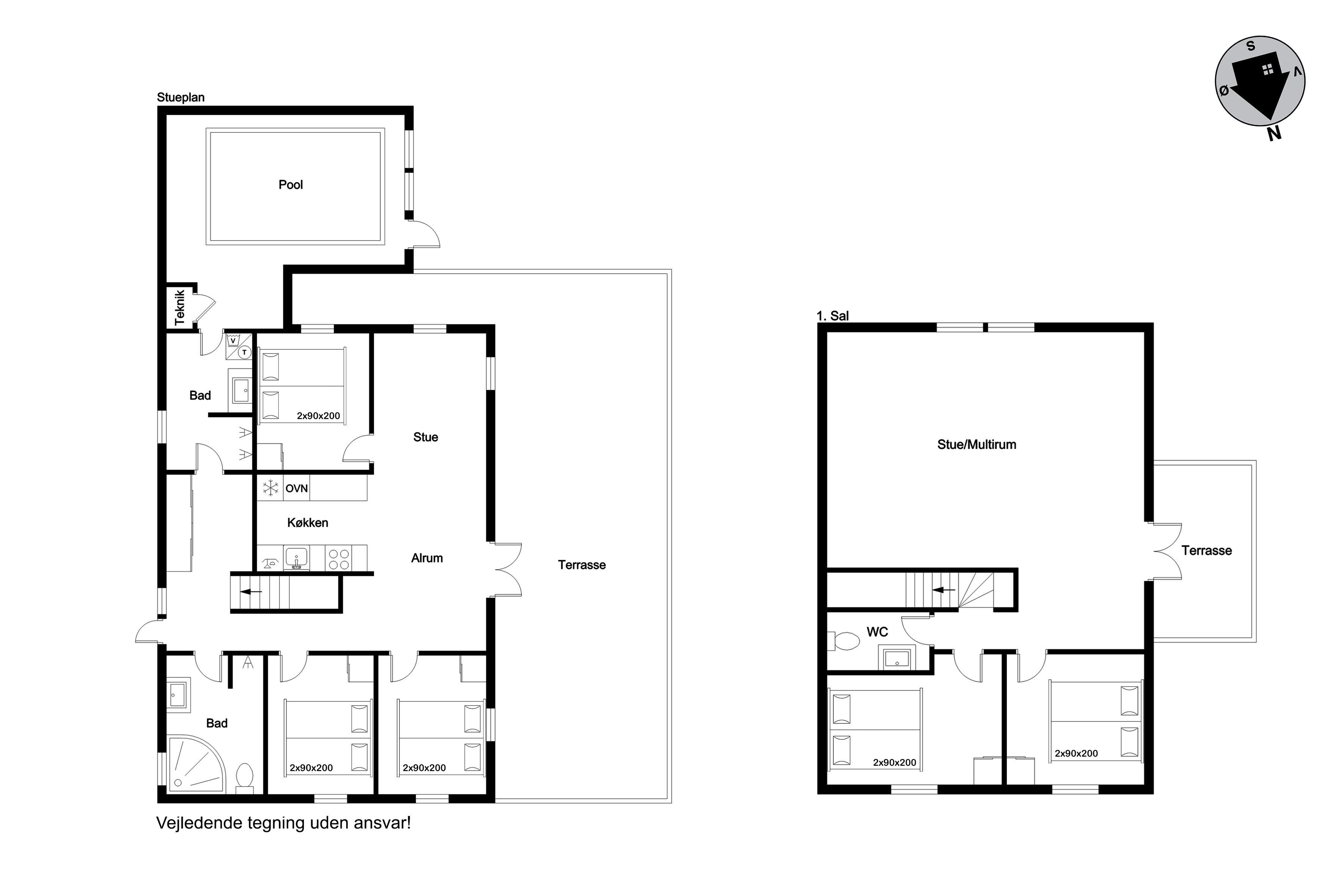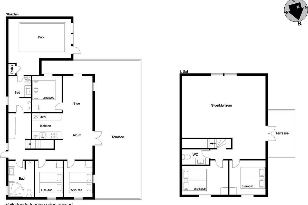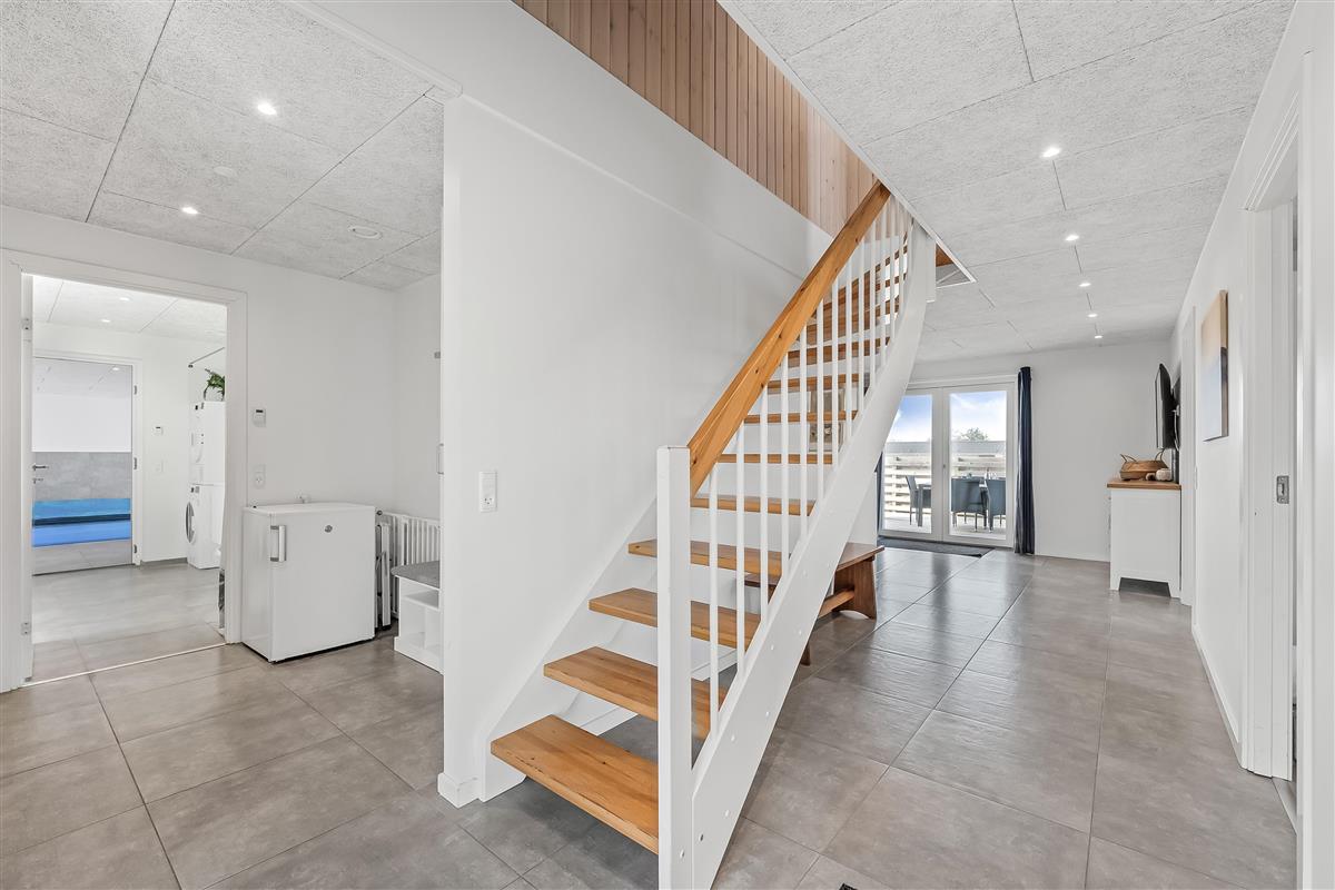 The house extends over a plot of 900 square meters and has a spacious living area of 255 square meters, providing plenty of space for both relaxation and fun. Inside you will find five inviting bedrooms, all equipped with double beds, ensuring a good night's sleep. With two modern bathrooms, where there is a toilet, shower and underfloor heating, there is also plenty of space to handle the morning routines for the whole group.