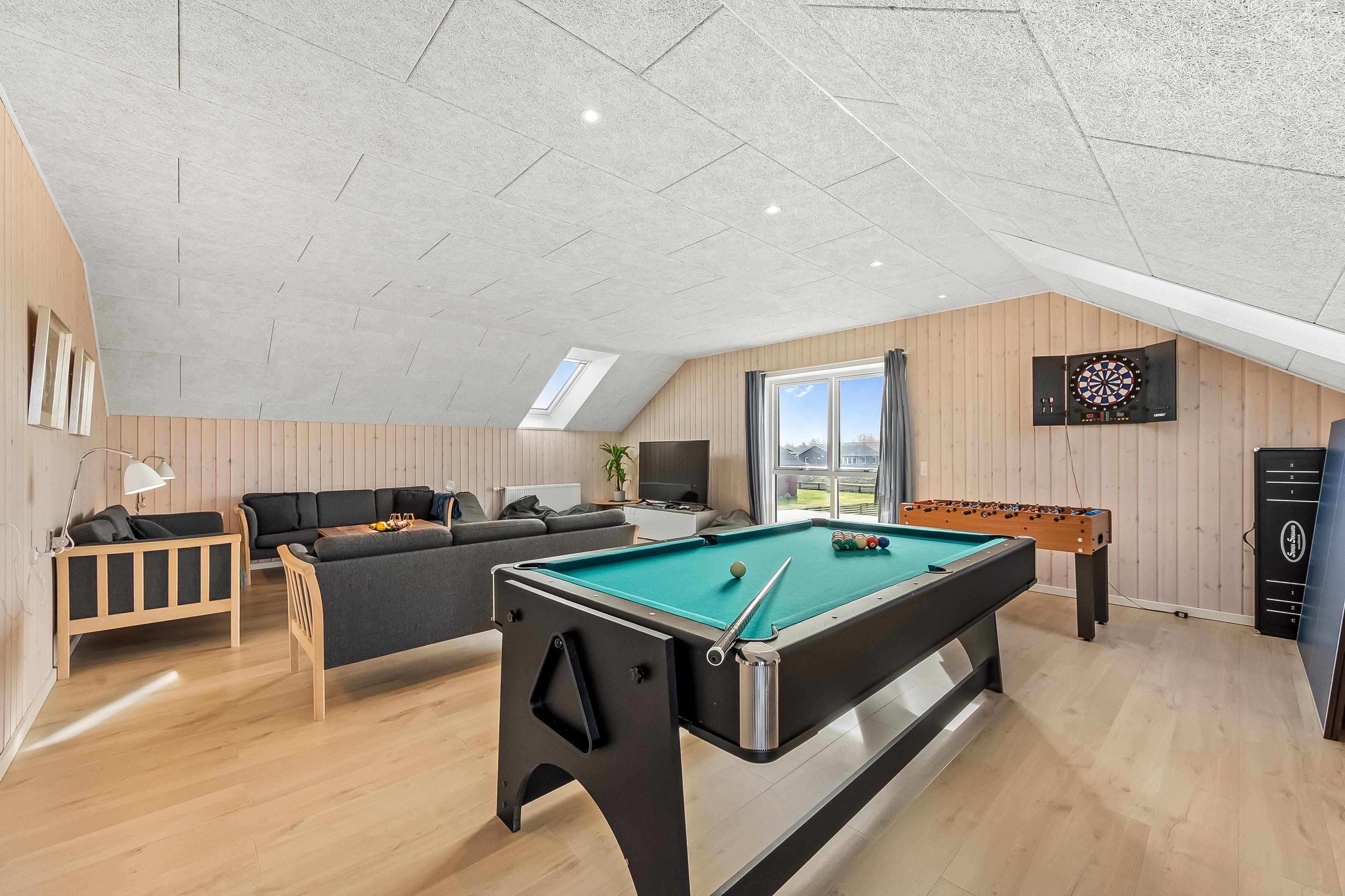 This lovely pool house at Grønkærvej 19F in Vorupør, offers the perfect setting for an unforgettable holiday with family or friends. With space for up to 10 people, this modern home is ideal for large groups who want to enjoy both comfort and entertainment. Located just 1300 meters from the water, you can enjoy the fresh air and beautiful views.