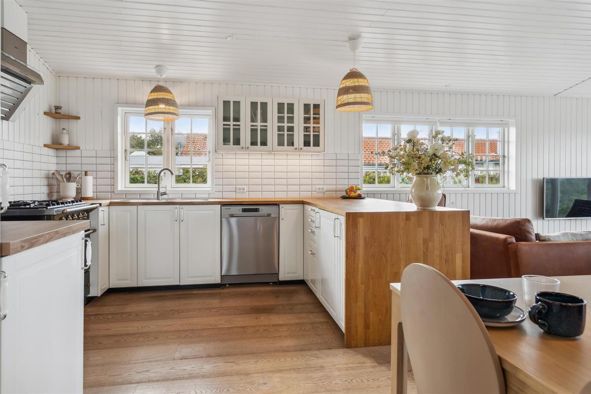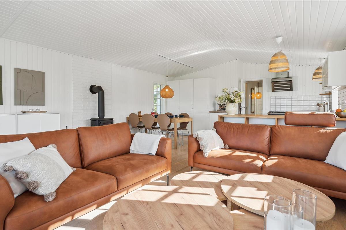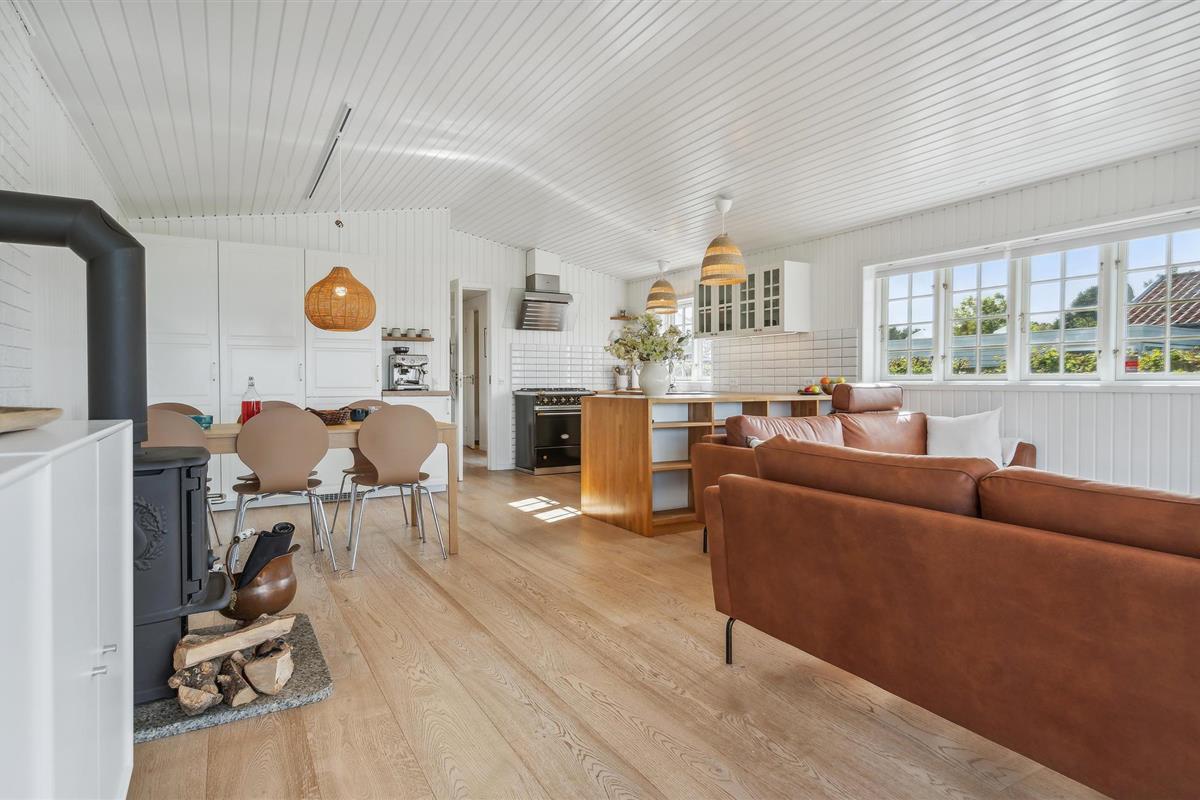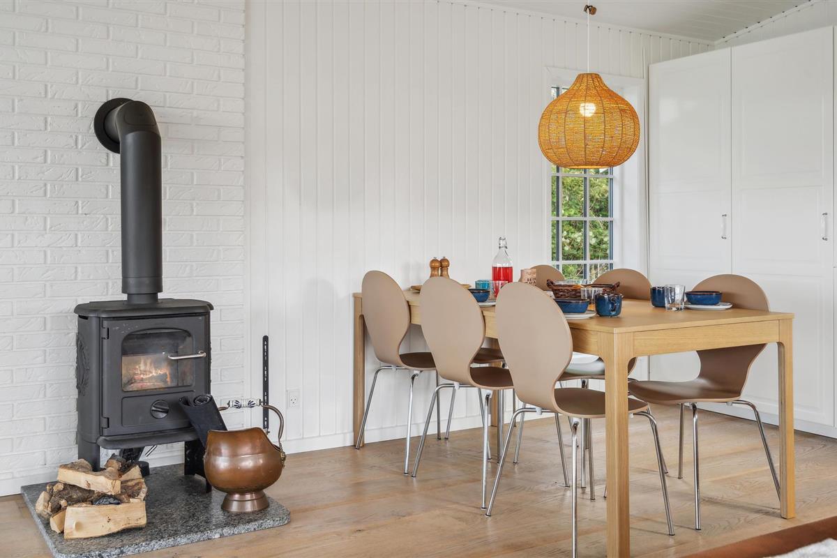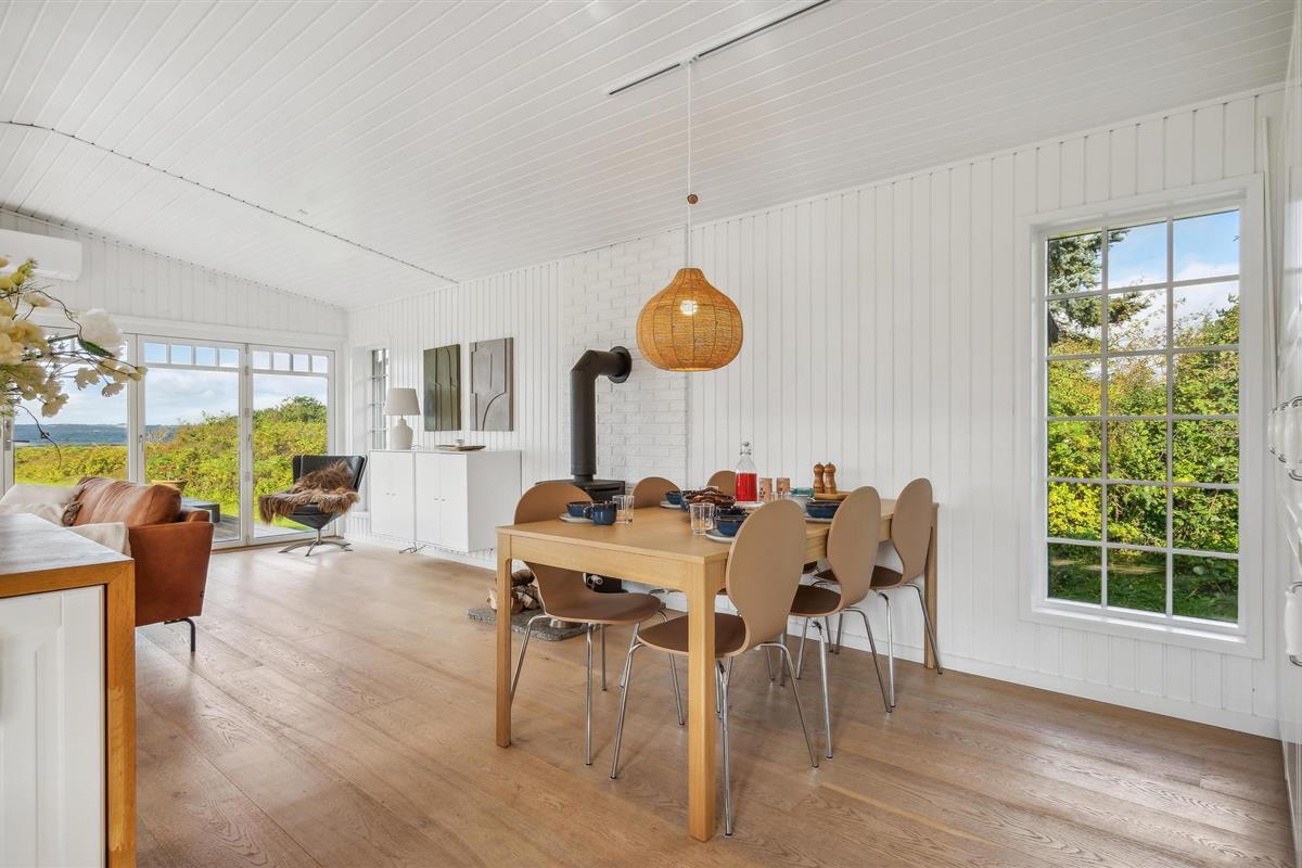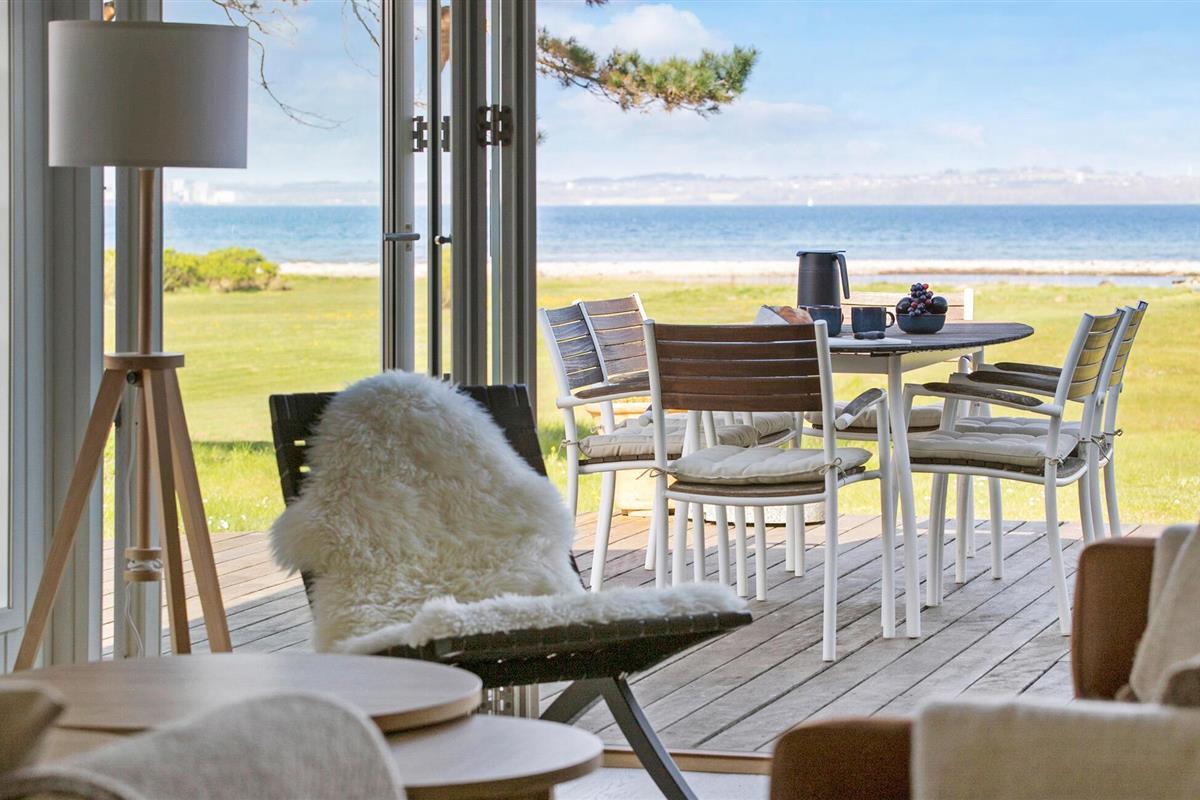 Dit mooie vakantiehuis ligt aan het mooie Mols en in de eerste rij huizen aan het water. Hierdoor heeft u vanuit het huis een fantastisch uitzicht op de baai van Aarhus. Vooral het terras laat u de zon en het uitzicht optimaal beleven. U ziet de ruïnes van het kasteel van Kalø boven de landtong van Kalø Vig uitsteken en aan de horizon ziet u Aarhus liggen. Er zijn geen tv-zenders in het huis, u kunt streamen via Chromecast vanaf apparaten die u meeneemt. Het huis ligt op Vrinners Strand op een open, vlak strandperceel. Een verfrissende duik in de zee is dus altijd binnen handbereik. Op het terras op het westen kunt u 's avonds lekker barbecueën en naar de zonsondergang kijken.