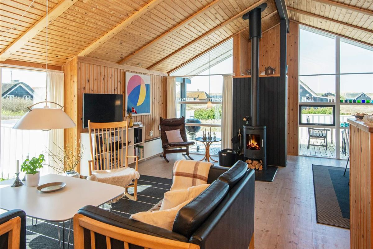 Das Wohnzimmer ist modern eingerichtet und bietet kostenloses Highspeed-Internet, einen großen Flachbildfernseher mit dänischen und deutschen Sendern sowie Chromecast zum Streamen Ihrer eigenen Fernsehprogramme. Für kühle Sommerabende oder verregnete Herbstabende steht ein Holzofen zur Verfügung.