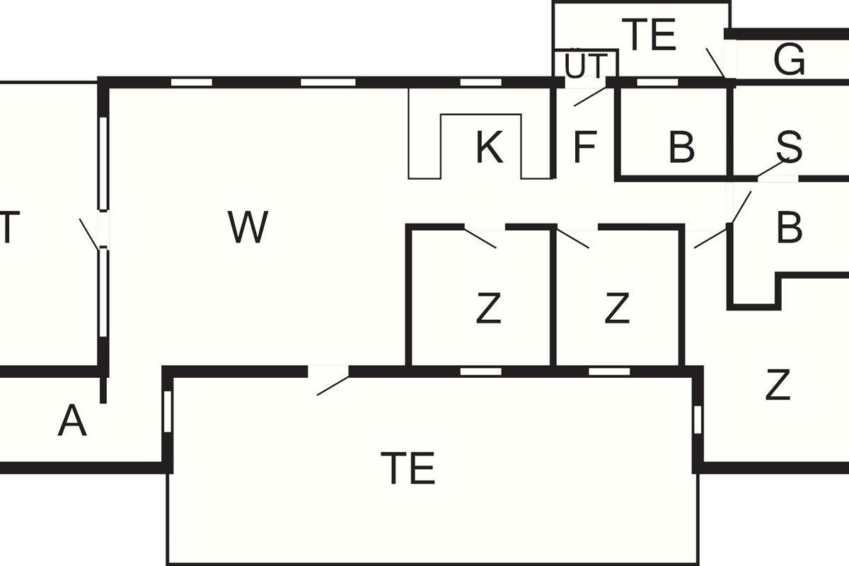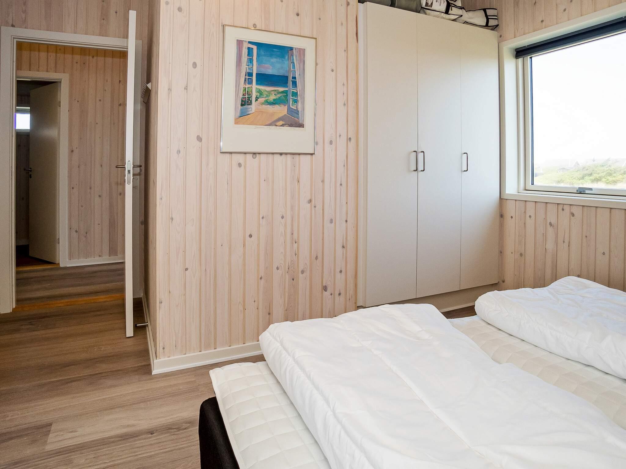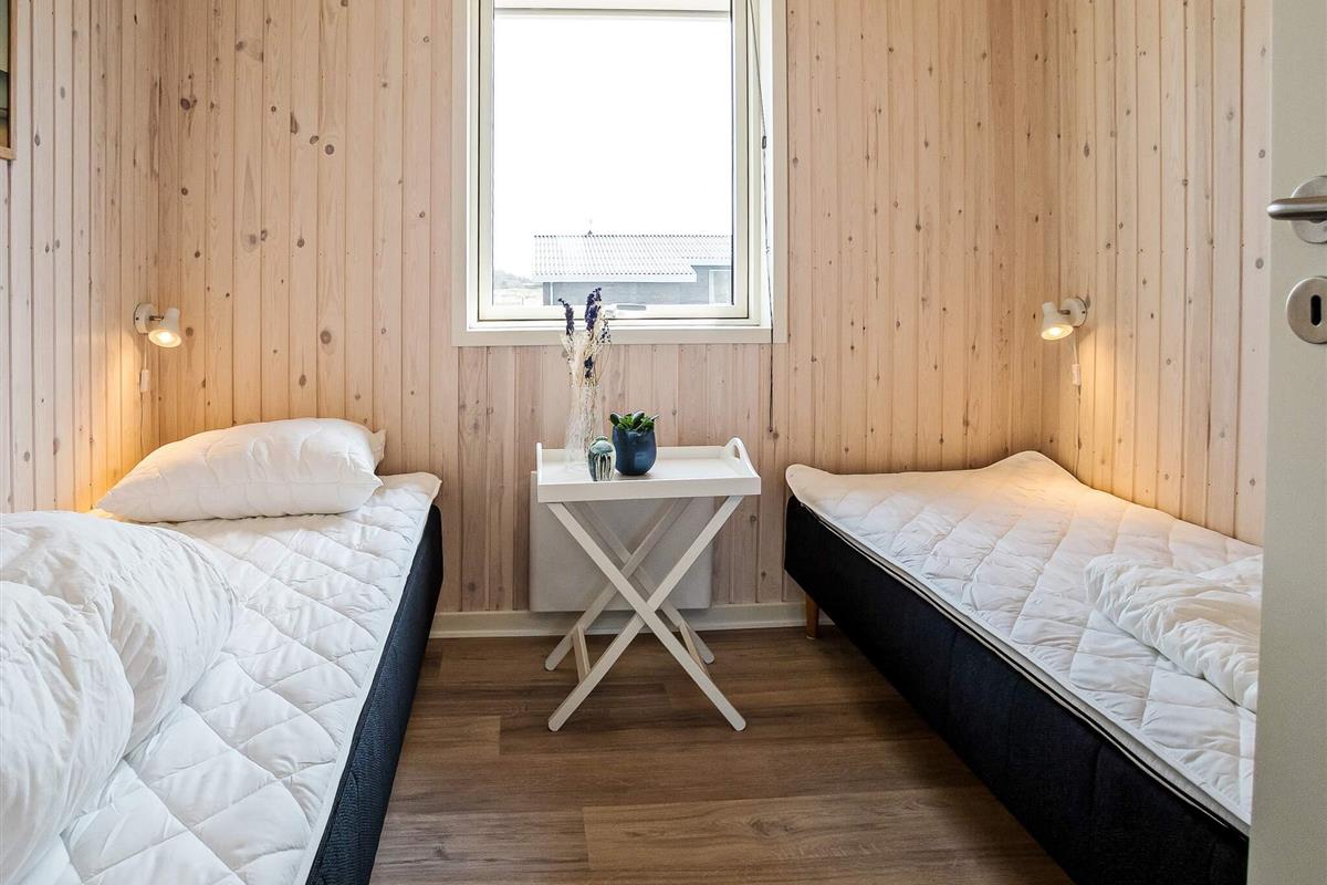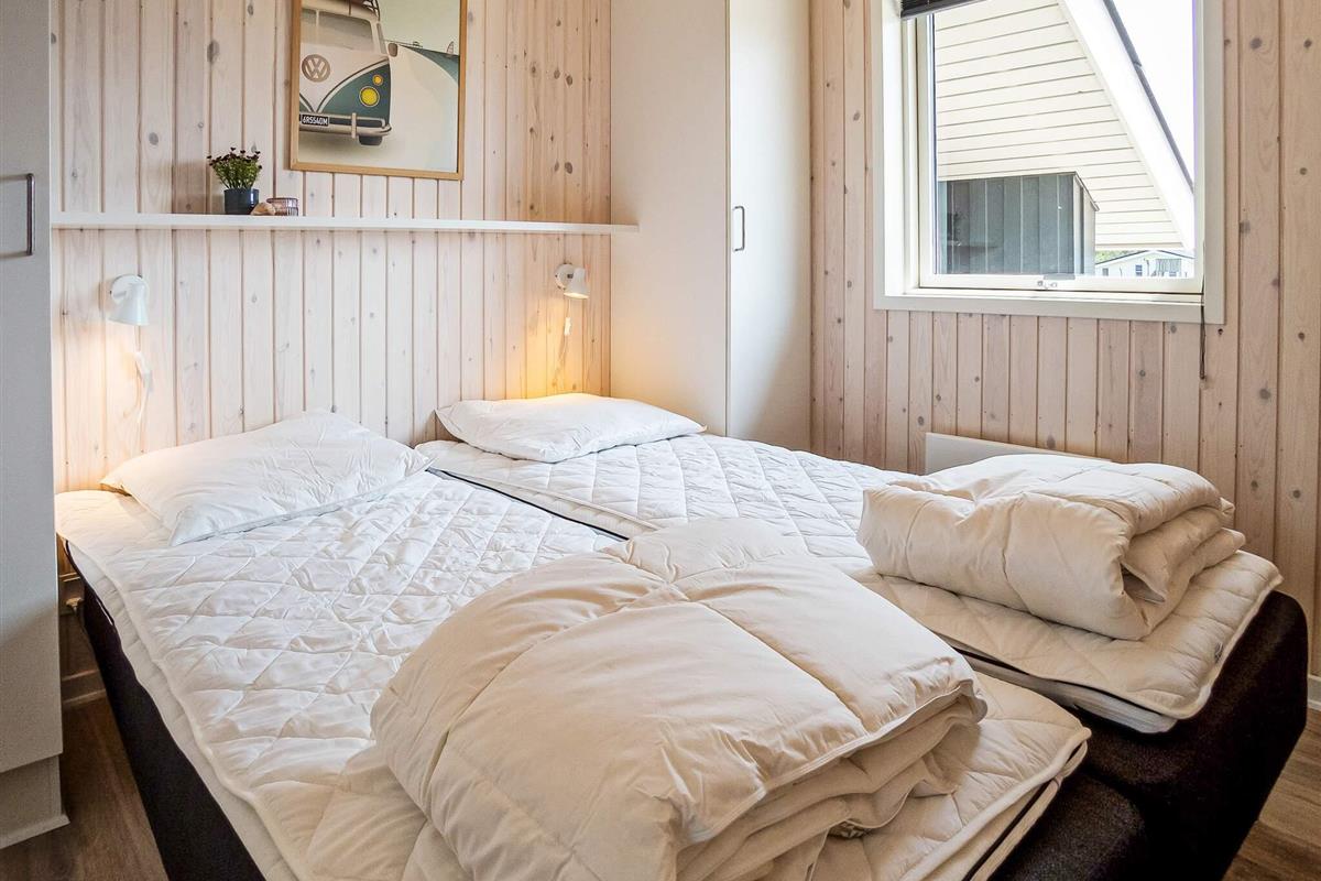 Das geräumige Ferienhaus verfügt über drei Schlafzimmer; eines mit zwei Einzelbetten (80 x 200 cm), die beiden anderen mit jeweils einem Doppelbett (160 x 200 cm). Im offenen Alkoven befindet sich zusätzlich ein schmaleres Doppelbett (140 x 200 cm).