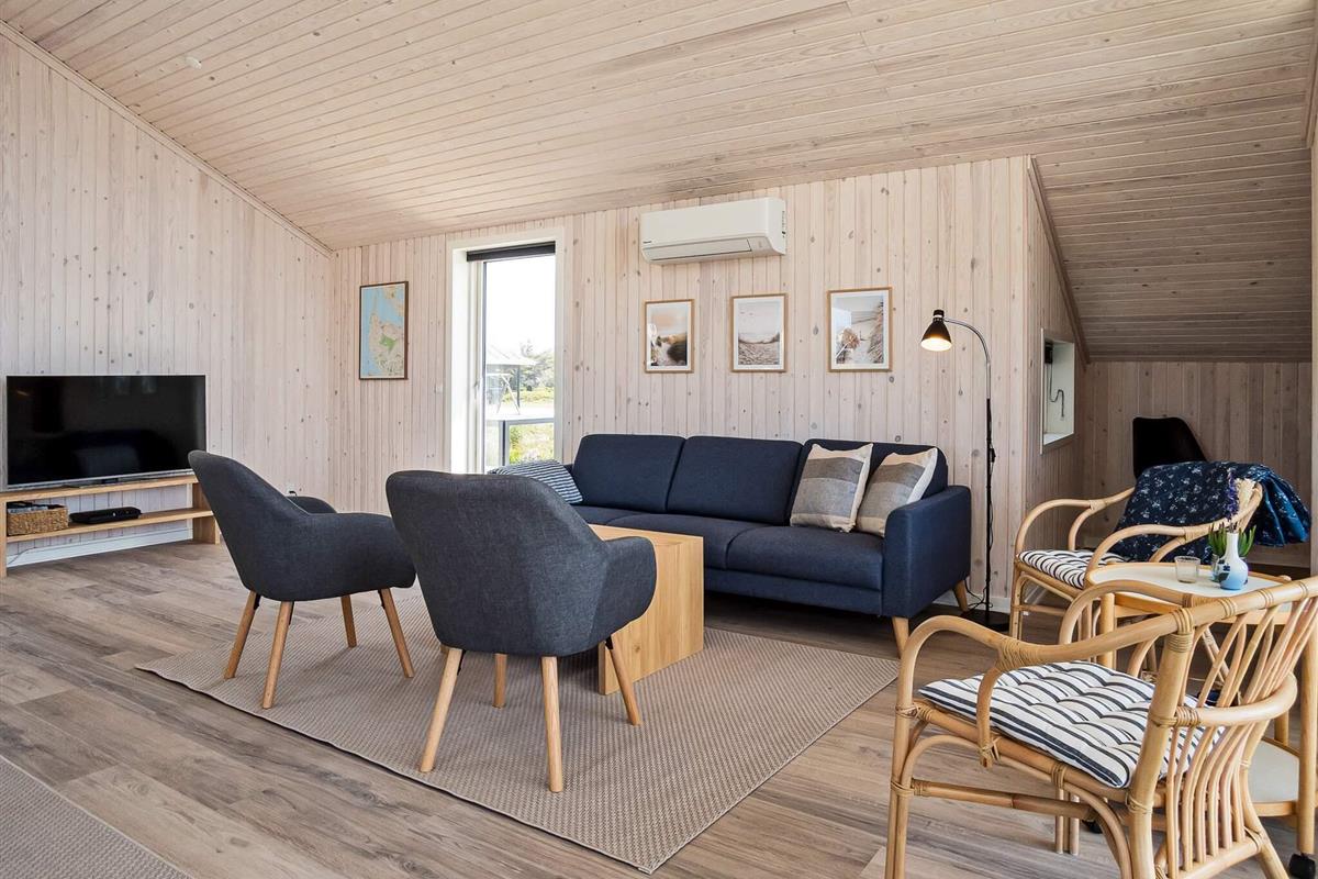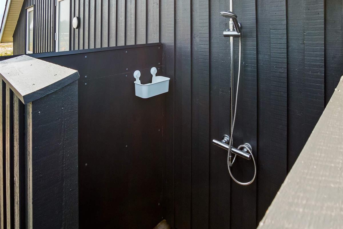 Das Ferienhaus ist dank großer Fenster und Dachfenster lichtdurchflutet. Alle Räume haben hohe Decken. Auf der Rückseite des Hauses befindet sich eine praktische Außendusche mit Kalt- und Warmwasser, die von Mai bis Ende Oktober genutzt werden kann. Klimafreundliche Wärmepumpe im Haus.