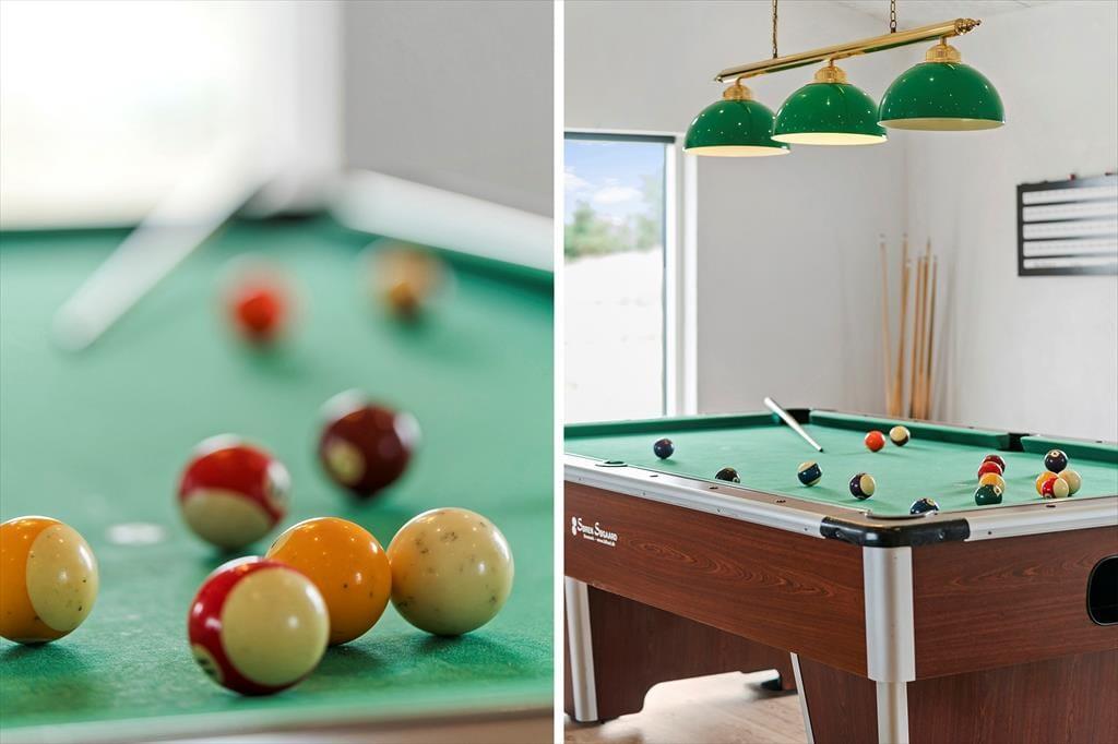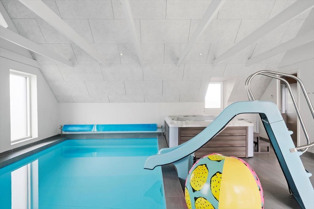 As soon as you step inside, you’ll feel the modern and welcoming atmosphere that fills every corner of the house. There’s plenty of space for everyone to spend time together – or apart – and the heart of the house is the open-plan living area with kitchen and lounge, perfect for cooking, chatting and playing games. But the fun doesn’t stop there – the large activity room invites you to spend hours competing and laughing together. Challenge each other with games of table tennis, pool, table football or darts, or simply enjoy some good-natured fun and high spirits. And when it's time to unwind, you’ll be happy to discover the indoor pool (18 m²) with a water slide and the inviting hot tub – ideal for relaxing moments in warm water, whatever the weather or time of year.