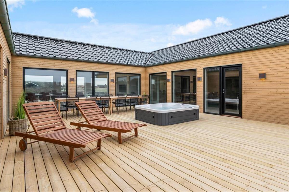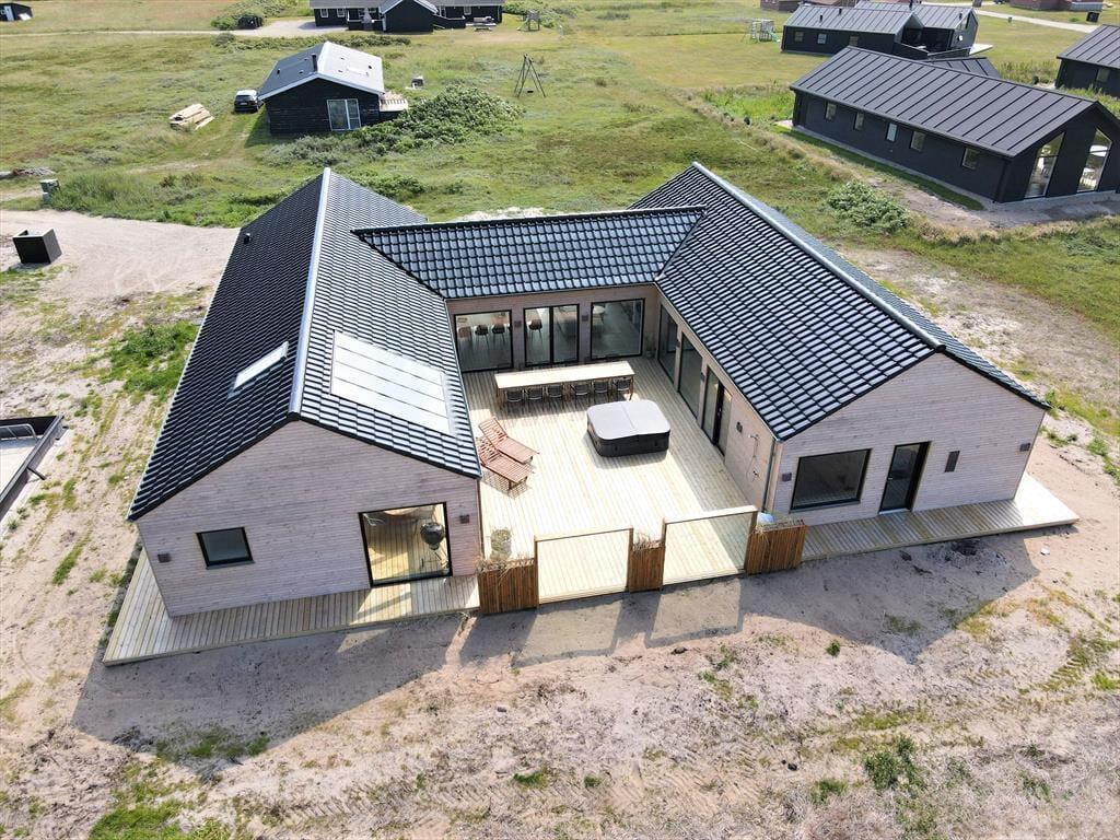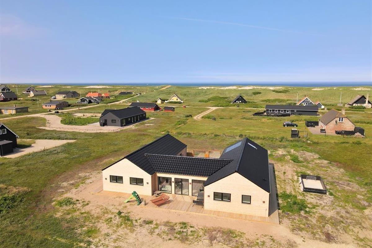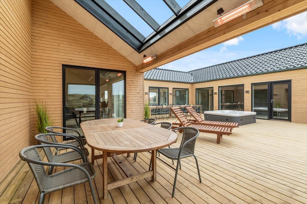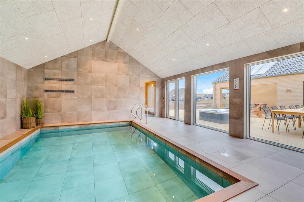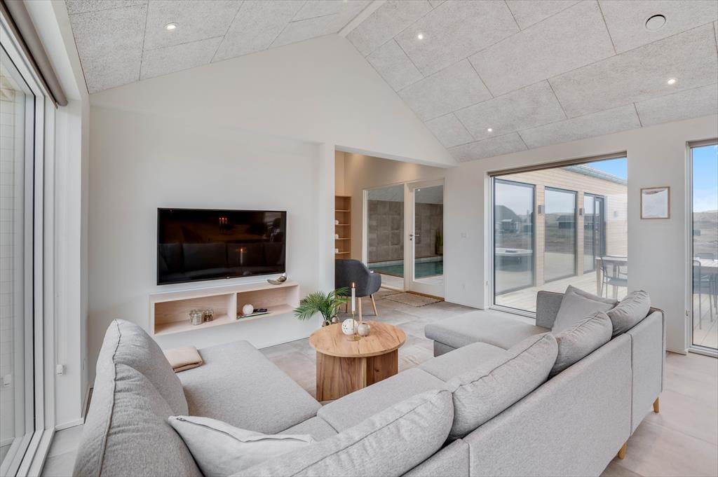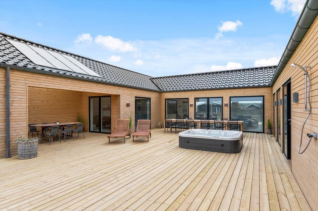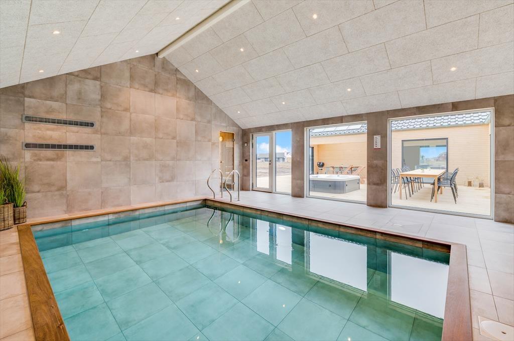 If you dream of a holiday in luxurious surroundings with space for relaxation, play and quality time, the holiday home at Alkajavej 13 A in Vrist is an ideal choice. Here you’ll enjoy an exclusive holiday base of 244 m² – just 200 meters from the North Sea – with plenty of room for both children and adults. The house features a pool area, an activity room, and an outdoor spa – and of course, your dog is more than welcome too.