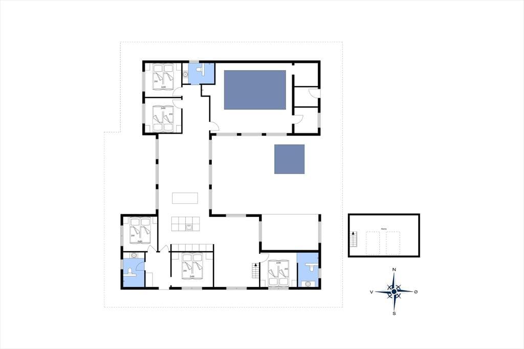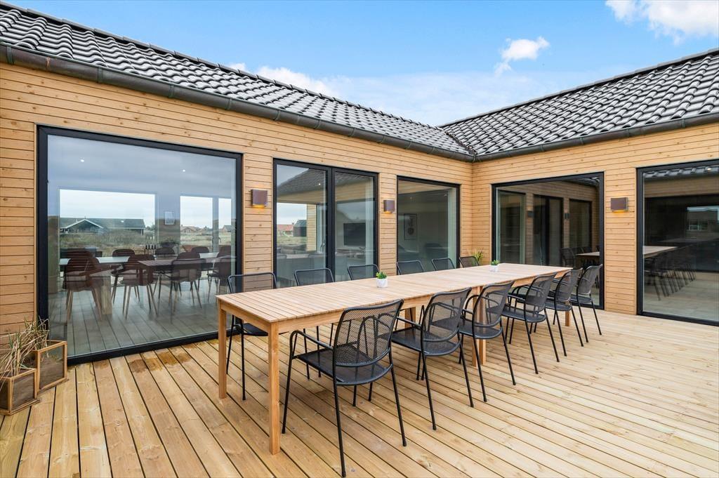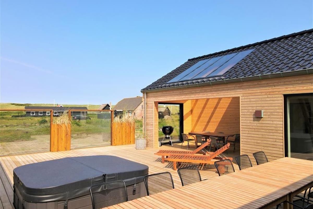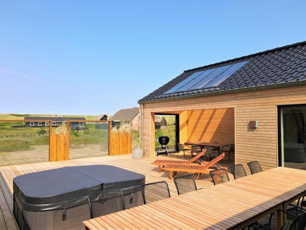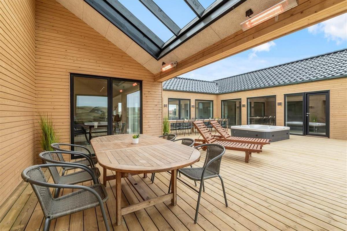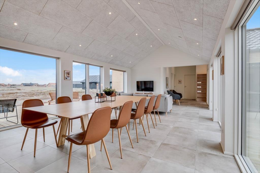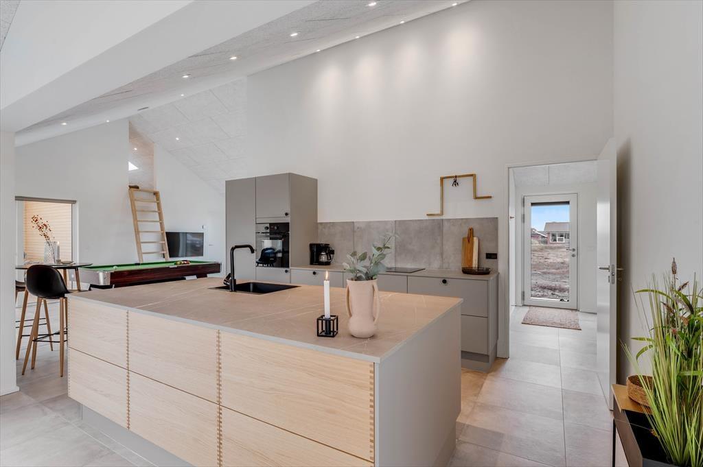 If you dream of a holiday in luxurious surroundings with space for relaxation, play and quality time, the holiday home at Alkajavej 13 A in Vrist is an ideal choice. Here you’ll enjoy an exclusive holiday base of 244 m² – just 200 meters from the North Sea – with plenty of room for both children and adults. The house features a pool area, an activity room, and an outdoor spa – and of course, your dog is more than welcome too.