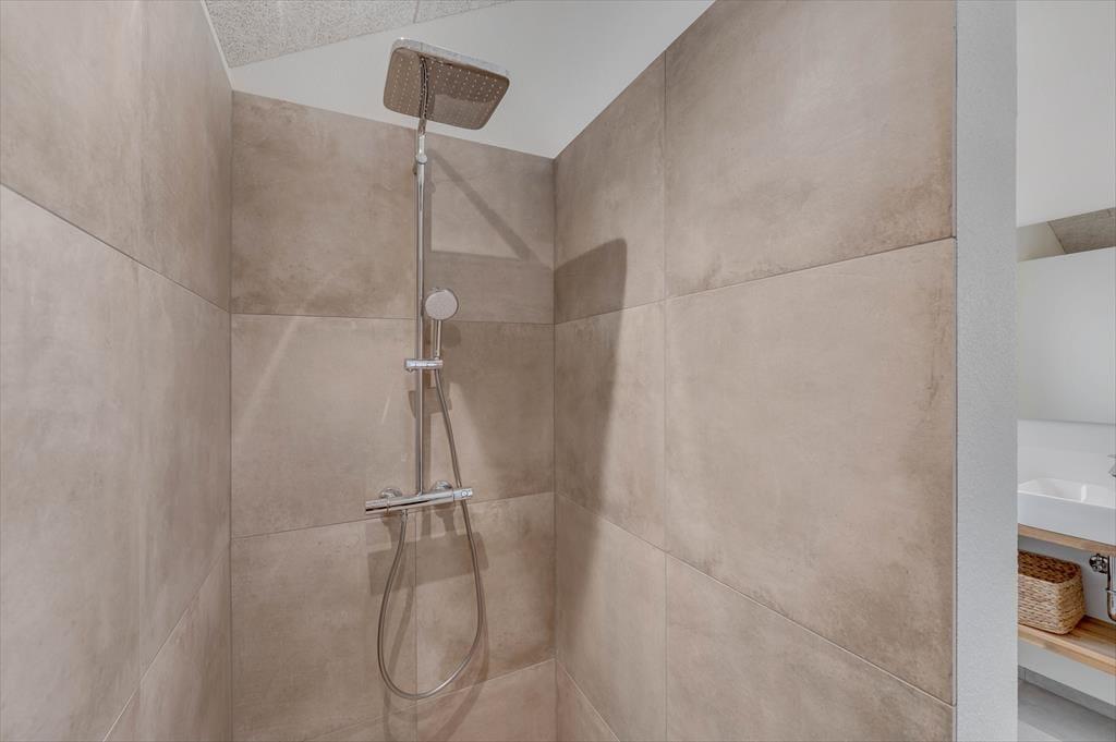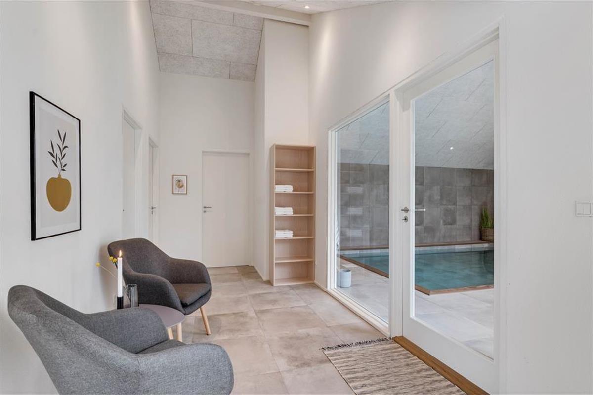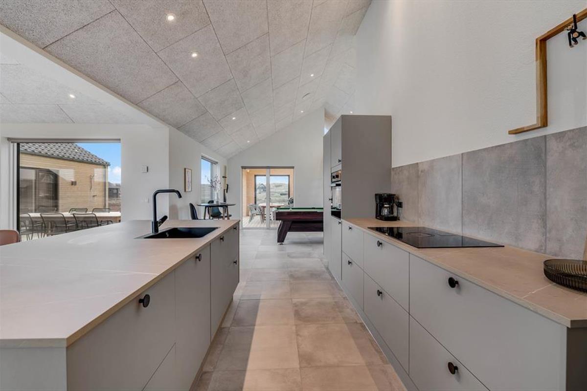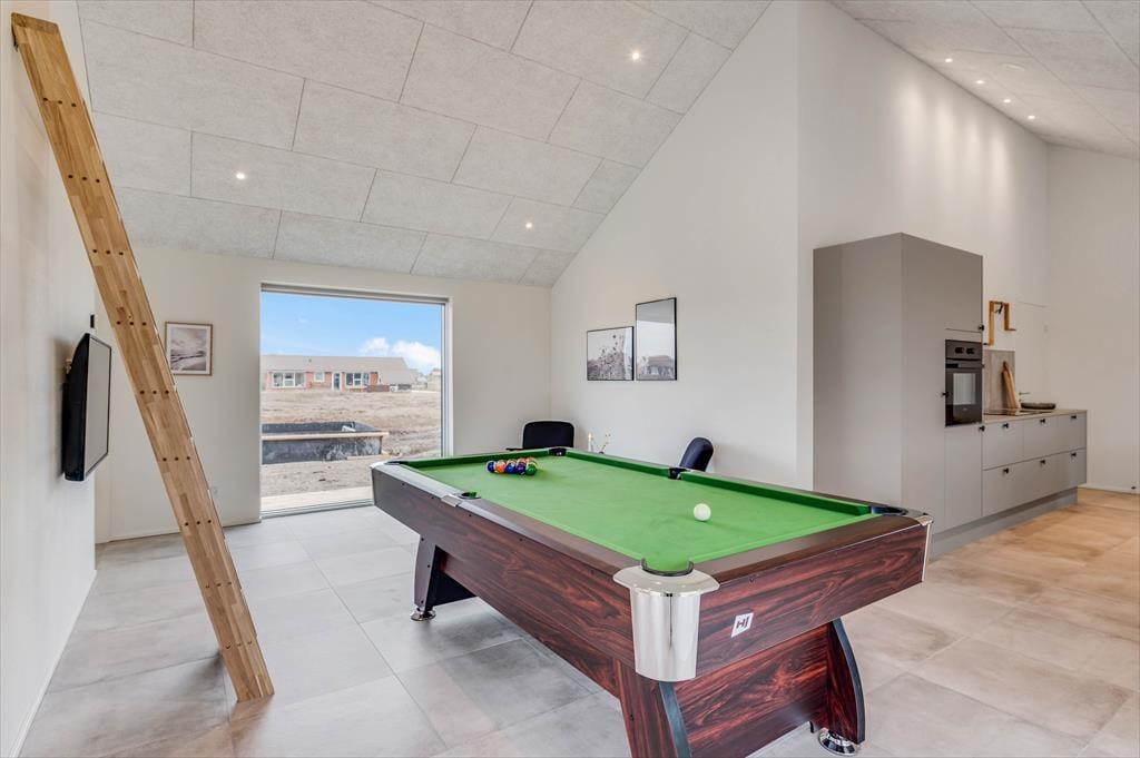 This spacious holiday home is thoughtfully designed with stylish details and a bright, welcoming atmosphere that makes it easy to feel at home. The kitchen and living room are combined in an open layout and quickly become the natural hub for cooking, chatting, and enjoying time together. When it’s time to relax and recharge, head into the beautiful pool area, where an indoor pool, shower, and sauna await. And if you're up for some fun and friendly competition, the activity room is equipped with both a pool table and table tennis – perfect for hours of entertainment for all ages. The house also features a cosy loft space that’s great for playing, reading, or simply enjoying a quiet moment away from it all. There’s room here for the whole family – and maybe even two – to enjoy a holiday with everything your heart desires.