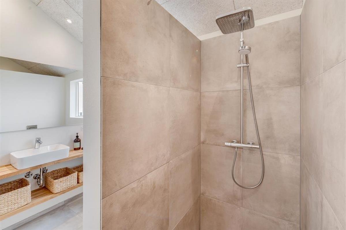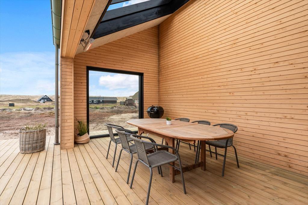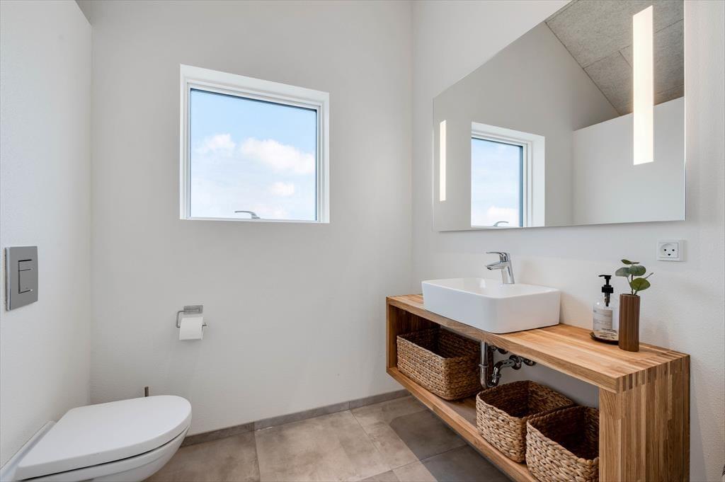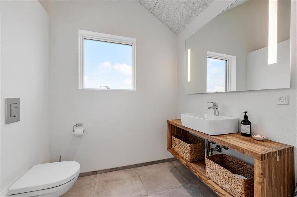 Outside, a lovely terrace environment sets the stage for many wonderful moments under the open sky. There’s plenty of space for shared meals, sunbathing in a lounger, or relaxing in the warm outdoor spa. It’s a special experience to sit in the bubbling water while breathing in the fresh sea air and gazing at the blue sky – or even a starry night. The outdoor shower is also perfect for rinsing off after a dip in the North Sea. The garden has lush green areas where children can play, and dogs can roam freely – and the entire Alkajavej area exudes peace and a true holiday vibe. This is where you can truly unwind and enjoy life at your own pace.