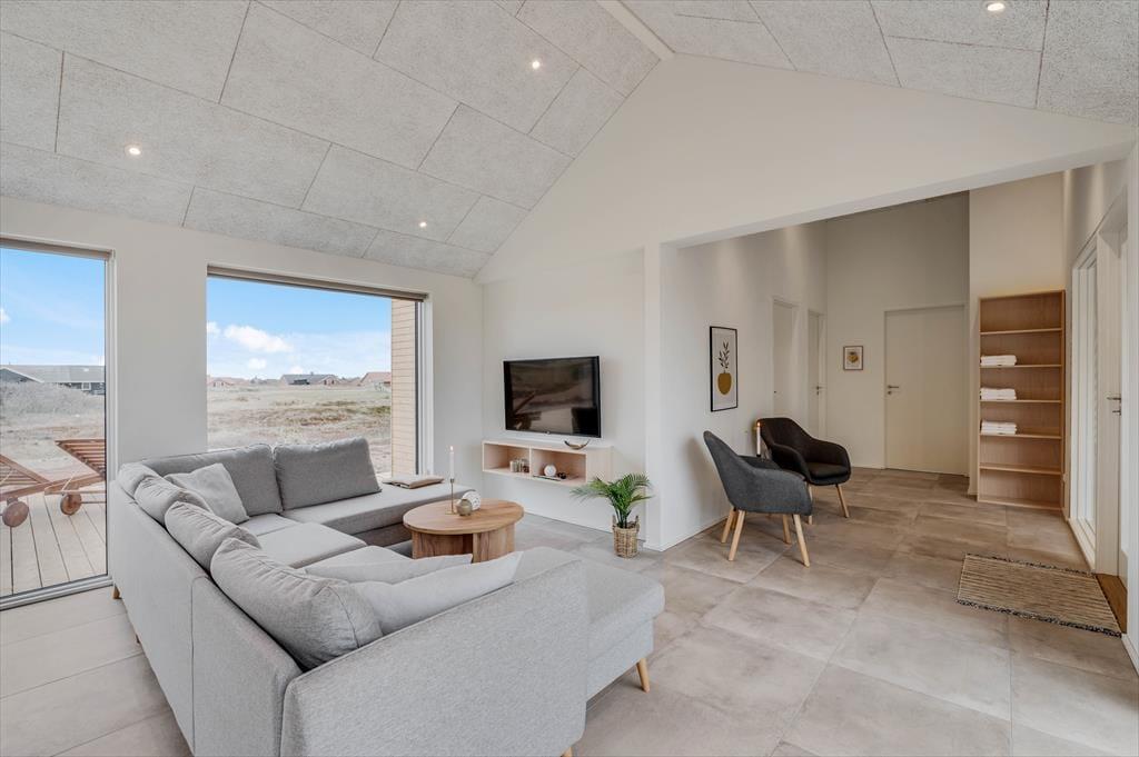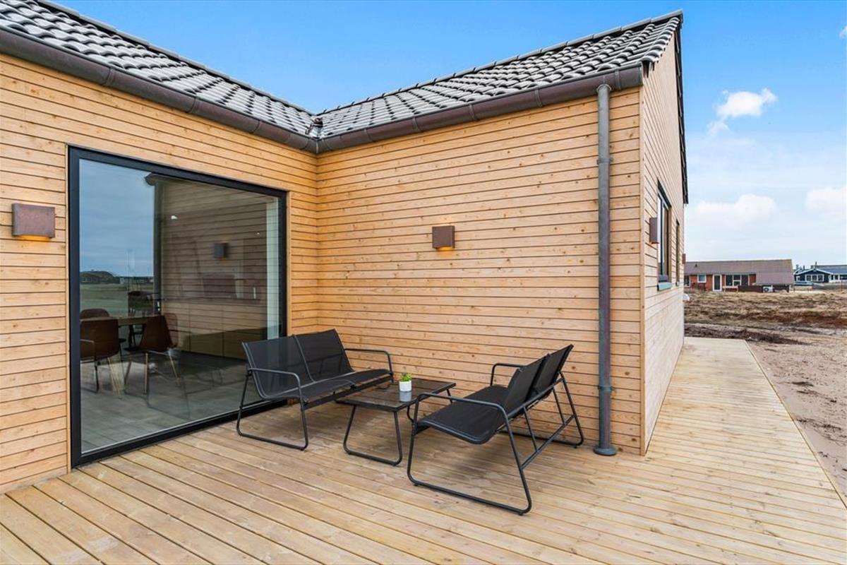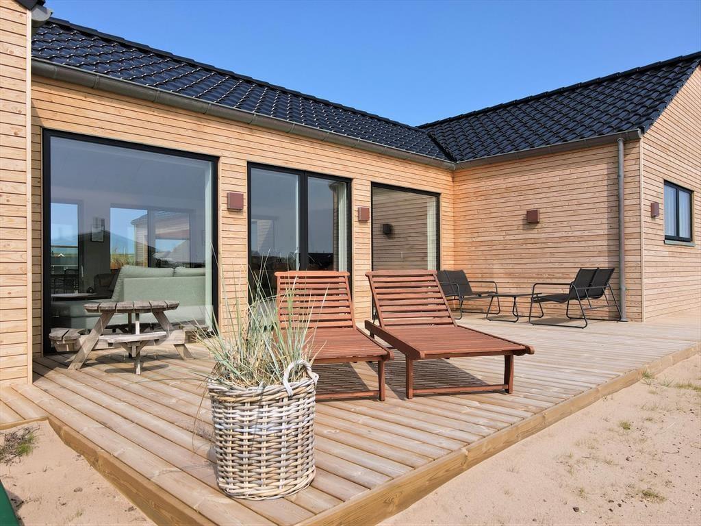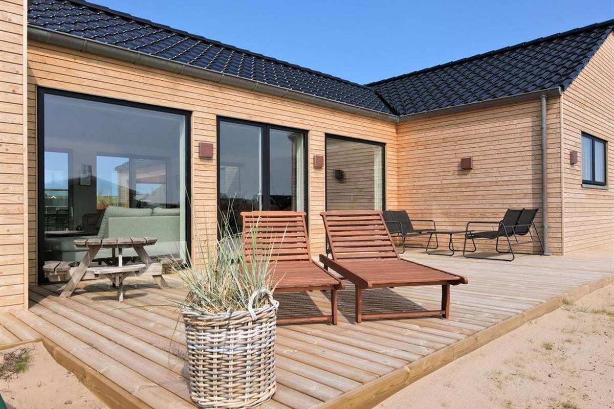 Outside, a lovely terrace environment sets the stage for many wonderful moments under the open sky. There’s plenty of space for shared meals, sunbathing in a lounger, or relaxing in the warm outdoor spa. It’s a special experience to sit in the bubbling water while breathing in the fresh sea air and gazing at the blue sky – or even a starry night. The outdoor shower is also perfect for rinsing off after a dip in the North Sea. The garden has lush green areas where children can play, and dogs can roam freely – and the entire Alkajavej area exudes peace and a true holiday vibe. This is where you can truly unwind and enjoy life at your own pace.