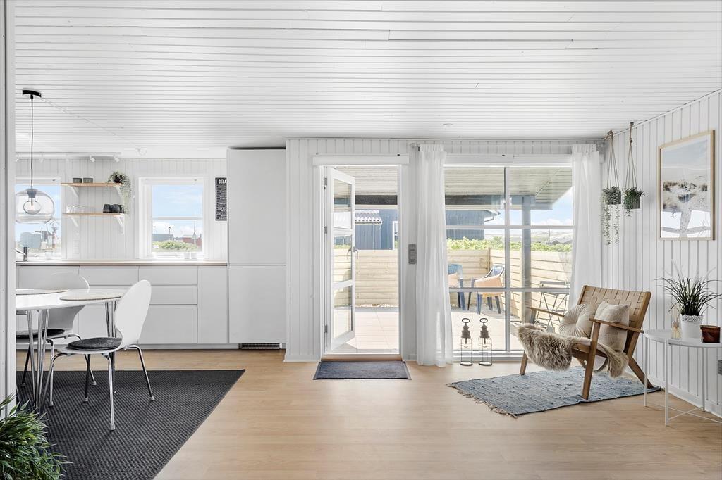 Are you dreaming of a holiday by the North Sea in peaceful and secure surroundings? Then the holiday home on Gloryvej 5 in Vrist is a great choice. This lovely holiday base offers bright and inviting interiors, a fully enclosed south-facing terrace, and a location just 200 metres from the beach. The house accommodates six guests and warmly welcomes your four-legged friend too.