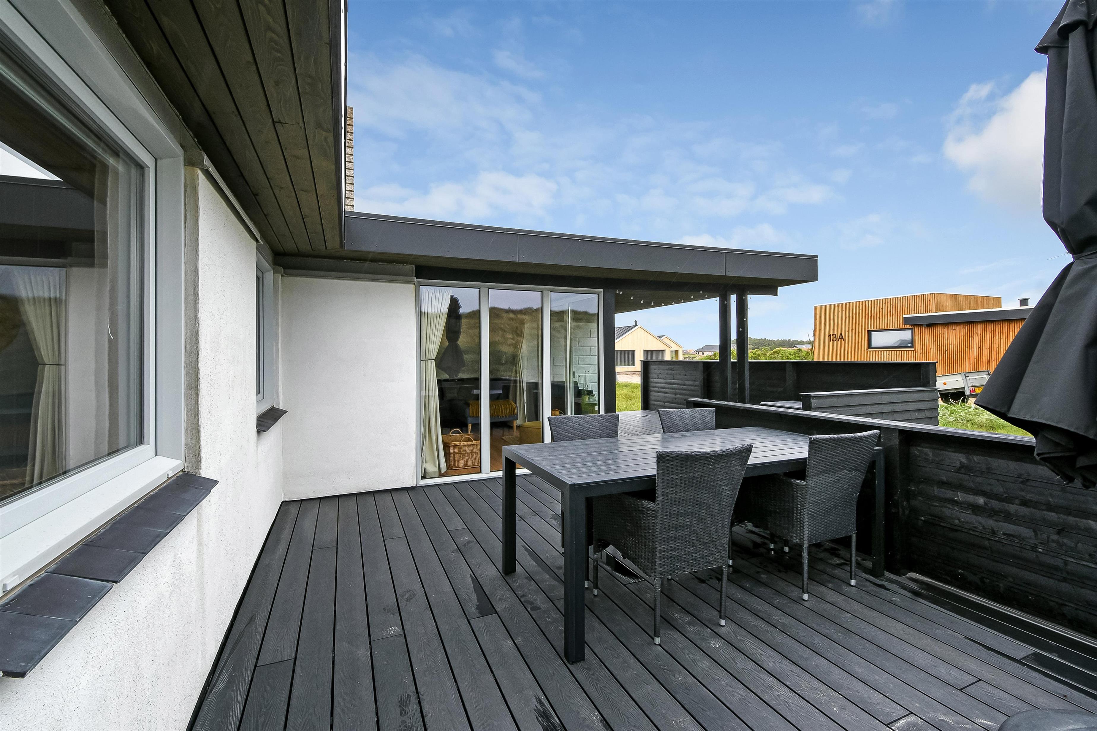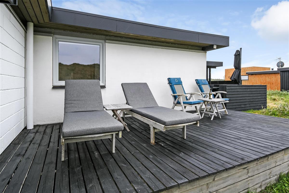 Das Haus liegt auf einem etwa 1.200 m² großen Naturgrundstück. Es gibt Zugang zu mehreren schönen Terrassen, von denen eine teilweise überdacht ist. Es ist immer möglich, einen Platz in der Sonne zu finden. Private fussweg direkt zum Nordsee Es gibt Gartenmöbel für alle Terrassen, sowie eine Sonnenliege, die bewegt werden kann. Das Abendessen kann auf dem Grill des Hauses zubereitet werden, während Sie die hellen Sommerabende auf der Terrasse genießen. In Vrist und Umgebung gibt es wirklich gute Möglichkeiten zum Radfahren, Wandern oder Laufen und nur ca. 100 m vom Haus entfernt liegt die rauschende Nordsee, die jeden Tag neue malerische Erlebnisse bietet. Die Gegend bietet viele Ausflugsmöglichkeiten. Versuchen Sie, früh im Urlaub aufzustehen und eine Fischauktion in Thyborøn zu besuchen. Es ist ein Erlebnis zu sehen, wie die vielen Kisten mit Fischen innerhalb von Minuten den Besitzer wechseln. Thyborøn bietet eine aufregende Hafenumgebung und sowohl das Jütland-Aquarium mit vielen aufregenden Fischen und Aktivitäten für Kinder, als auch das Küstenzentrum sind einen Besuch wert. Von Thyborøn gibt es eine kleine Fähre nach Agger, wo Sie Dänemarks ersten Nationalpark Thy besuchen und weiter nach Klitmøller - Dänemarks Surferparadies Cold Hawaii - fahren können. Im Osten liegt Lemvig, eine gemütliche Stadt am Limfjord, nur 15 Autominuten vom Haus entfernt. Lemvig hat eine gemütliche Fußgängerzone und eine große Auswahl an Lebensmittelgeschäften und Fachgeschäften. Sie möchten unbedingt langsamer unterwegs sein, dann lassen Sie das Auto stehen und steigen Sie in den kleinen Nahverkehrszug, der zwischen Thyborøn und Vemb fährt.
