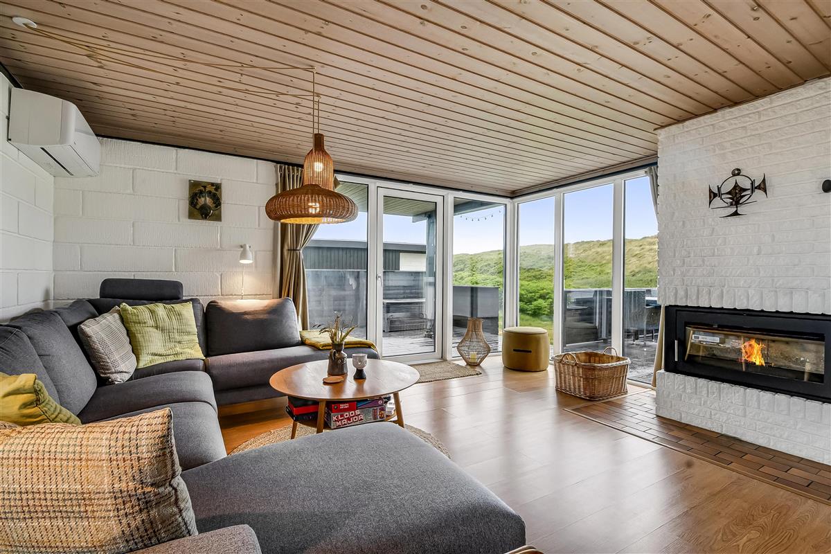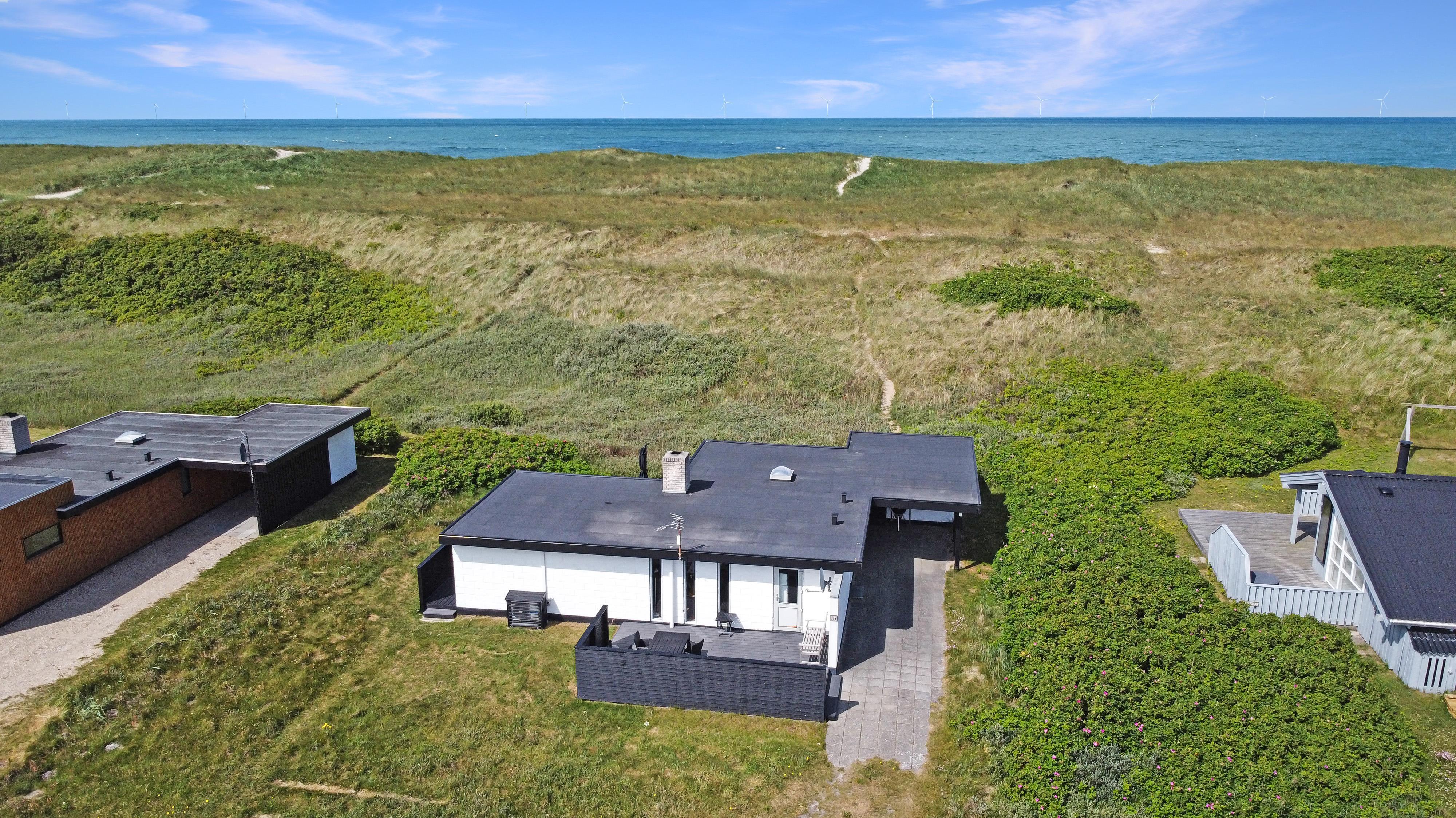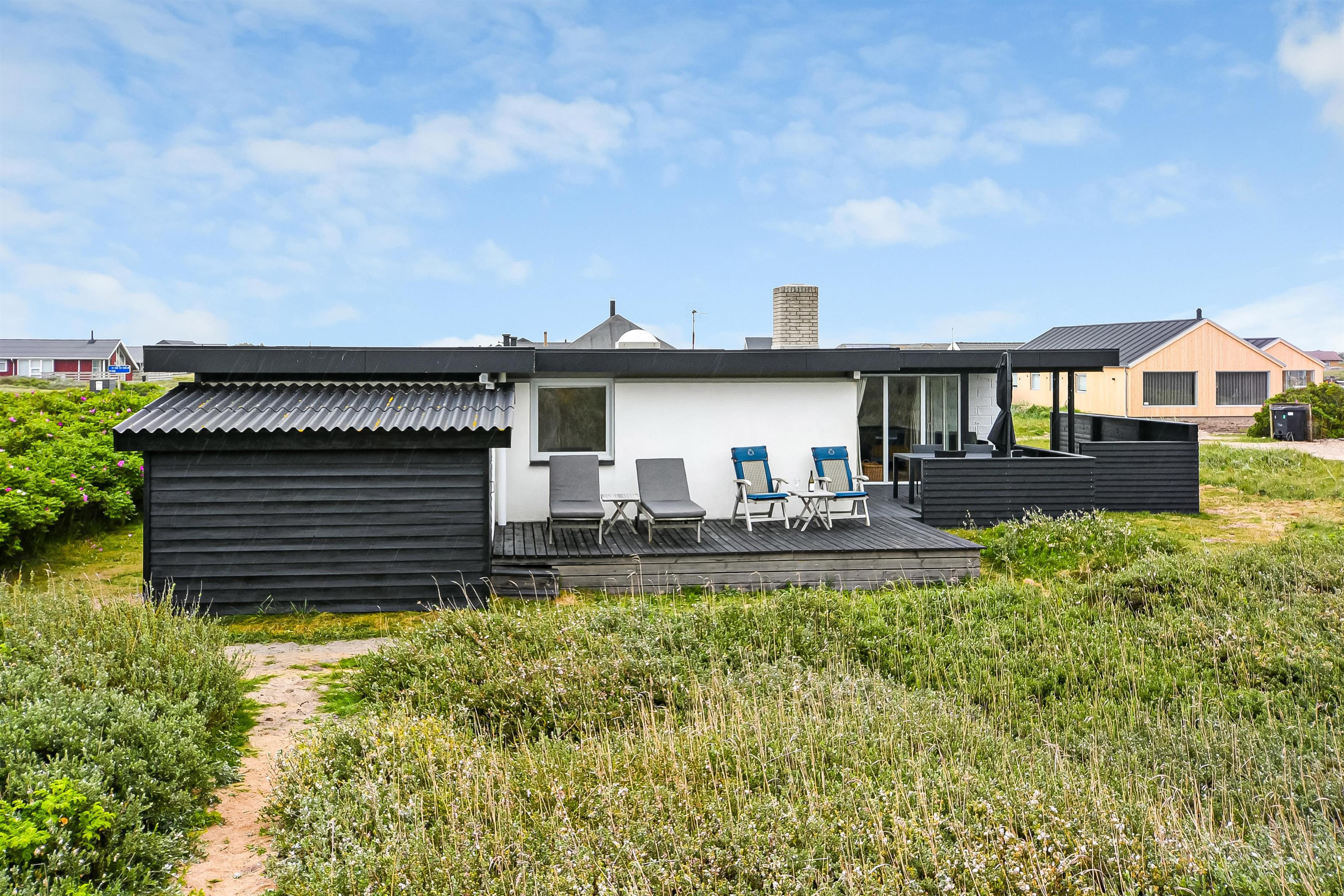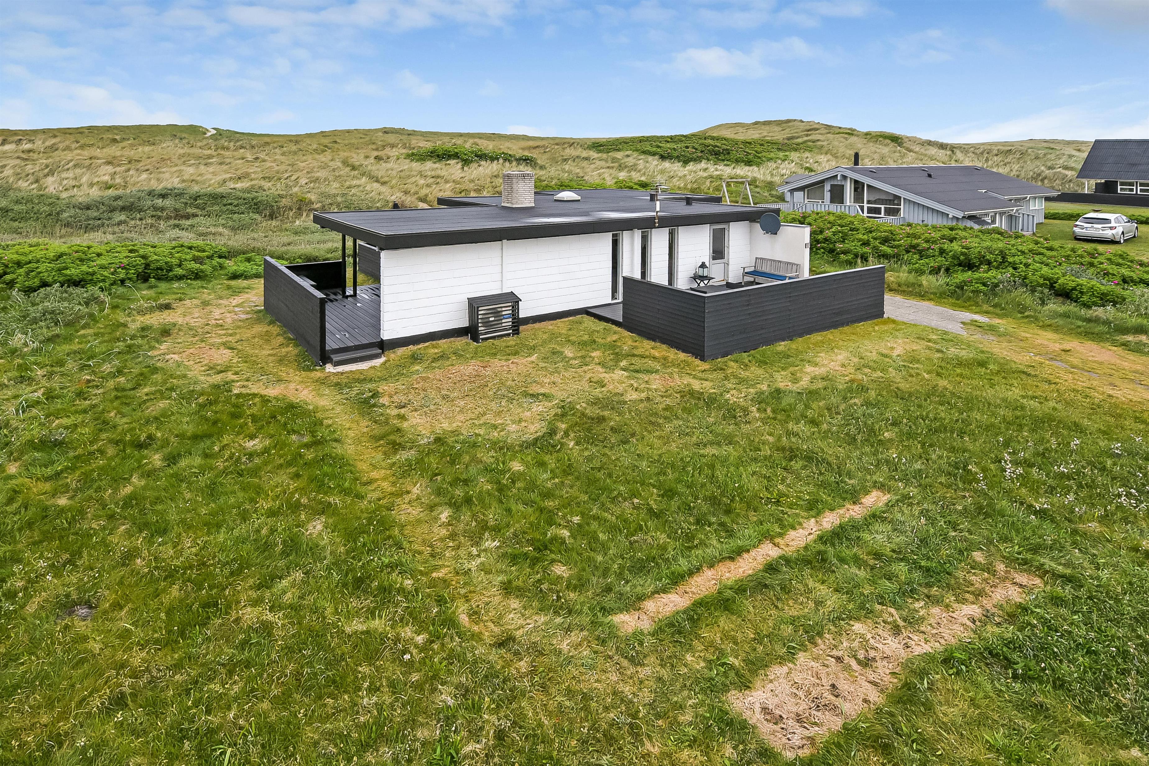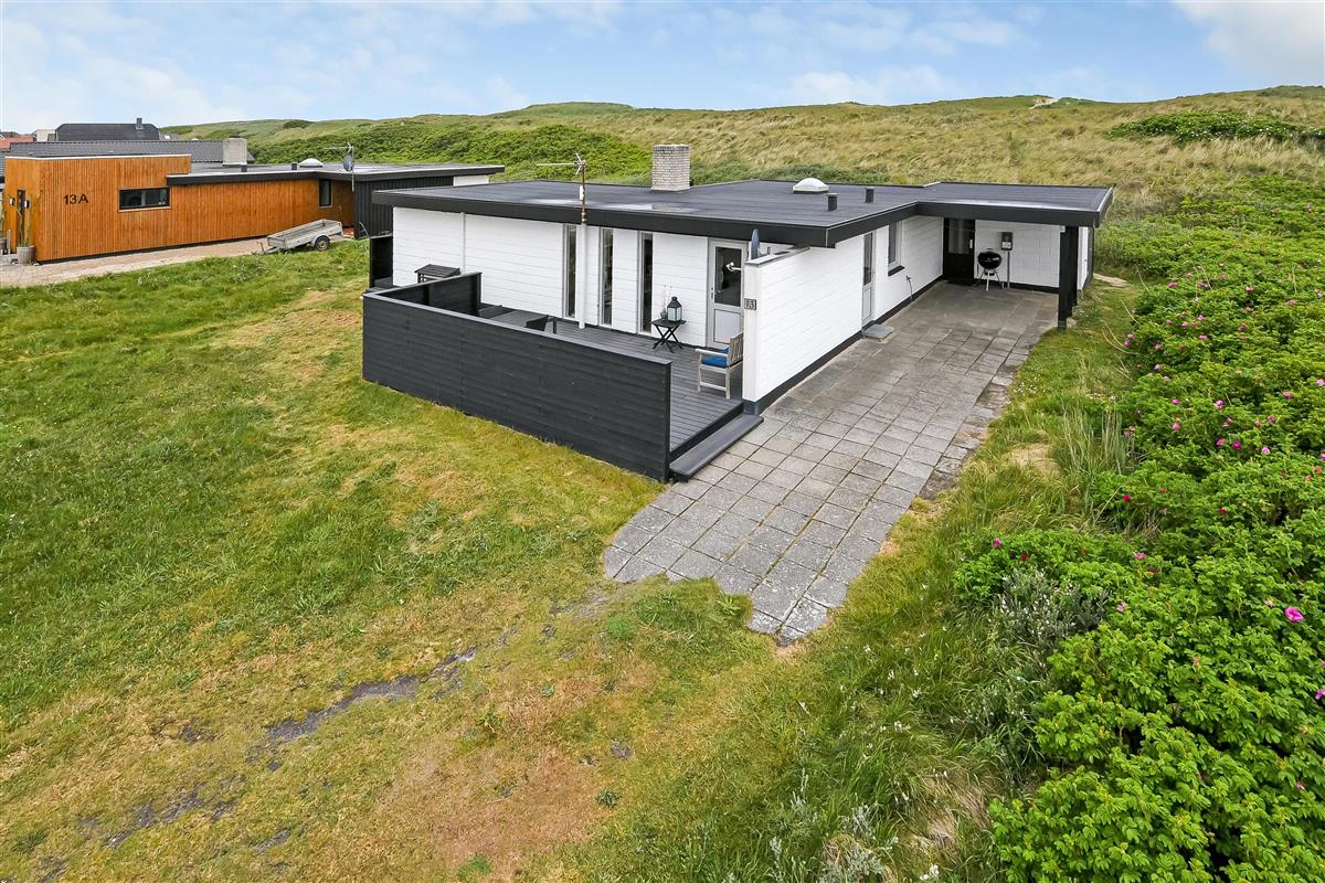 Dieses Haus ist 75 m² groß und bietet echte dänische Gemütlichkeit und wurde im Jahr 2021 schön modernisiert. Das Haus ist gut eingerichtet mit 3 Schlafzimmern (1DB, 1EB, 1DB) mit neuen, guten großen Betten. Vom kombinierten Wohnzimmer und Küche hat man einen schönen Blick auf die hohen Dünen an der Nordsee. Das Wohnzimmer ist mit guten Möbeln, Essbereich, Fernseher mit dänischen und deutschen Kanälen, Google TV, DAB Radio und Zugang zu einer schönen Terrasse ausgestattet. Für einen kühlen Sommerabend oder einen Herbsttag mit Regen und Sturm gibt es einen Kaminofen zum Heizen und für eine gemütliche Atmosphäre. Es gibt auch eine energiefreundliche Wärmepumpe im Wohnzimmer, die das ganze Haus leicht aufheizt. Die Küchenzeile verfügt über einen Herd mit Cerankochfeld, Abzugshaube, Mikrowelle, Geschirrspüler und Kühl- / Gefrierschrank. Schönes Badezimmer mit Dusche, WC, Waschbecken und Fußbodenheizung. In Verbindung mit der Terrasse und dem Carport vor dem Haus besteht ein direkter Zugang zur Sauna. Nichtraucher-Haus. Nur Hund erlaubt.
