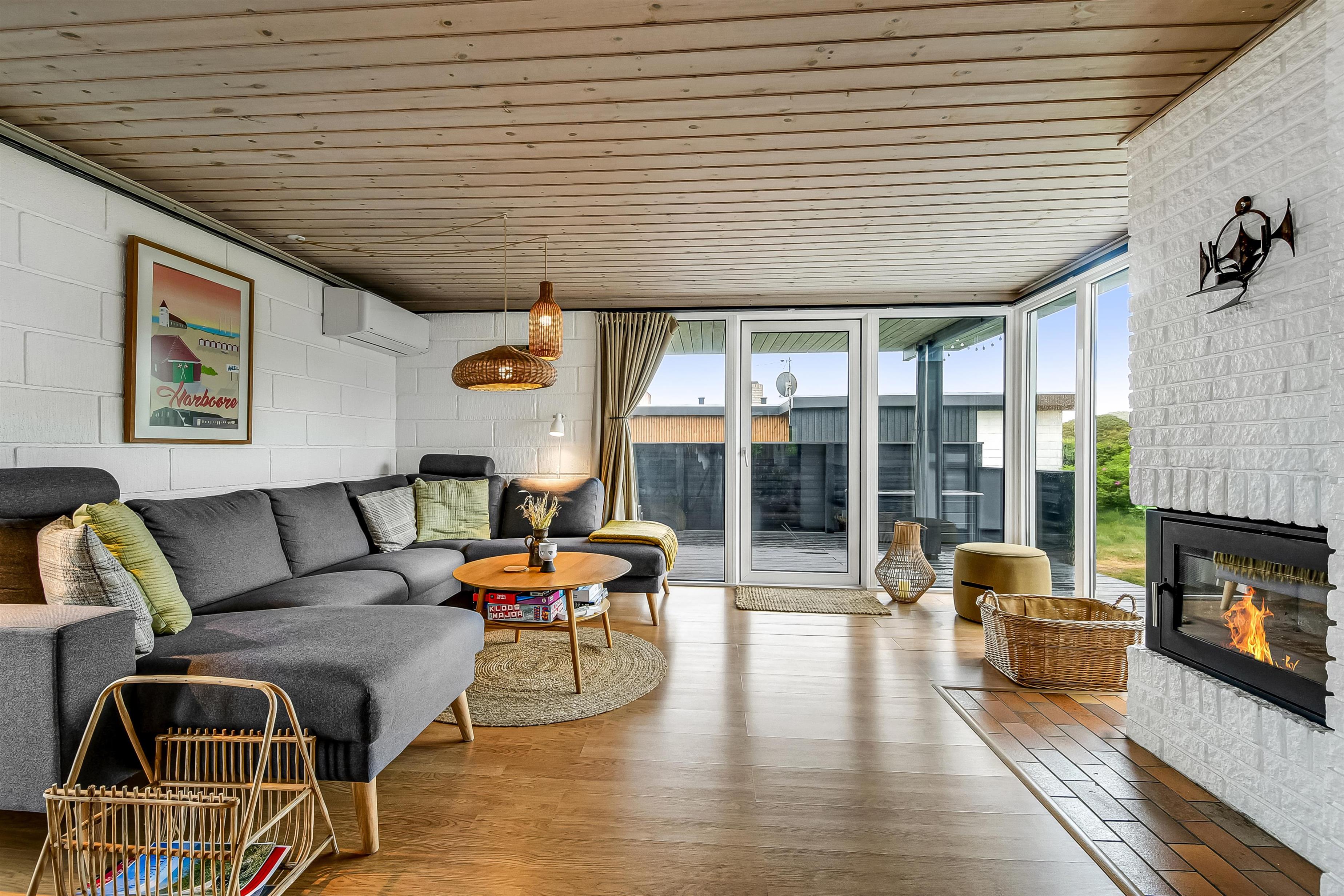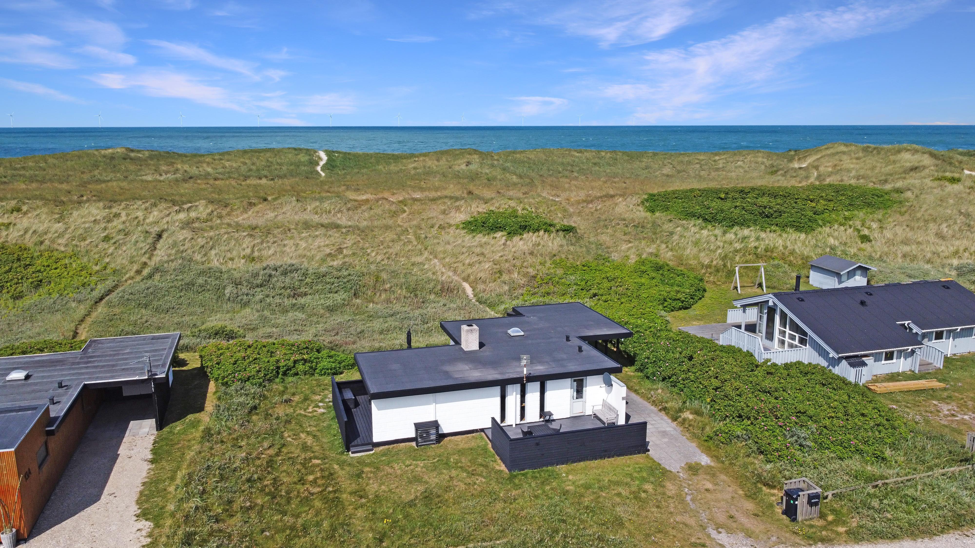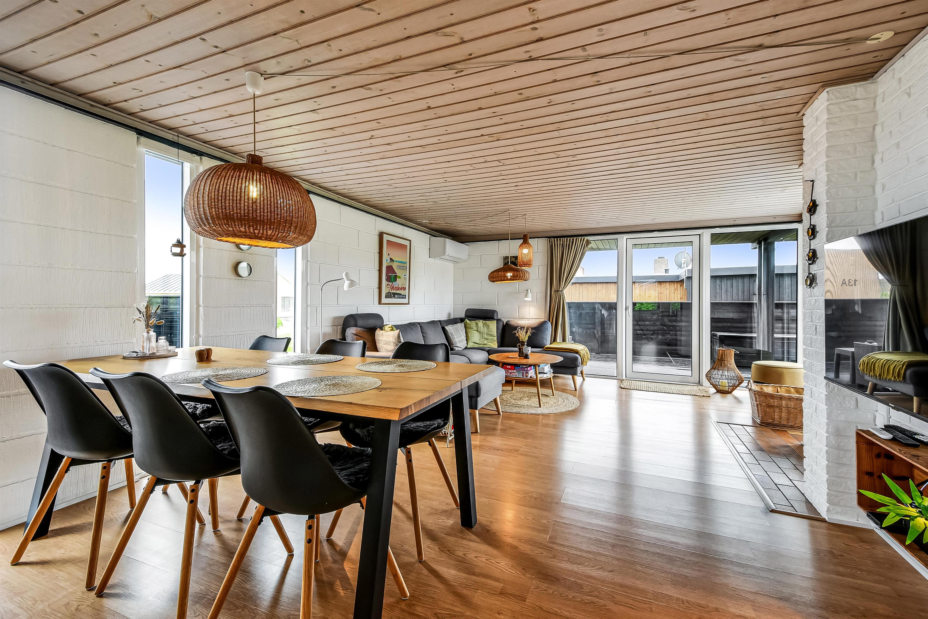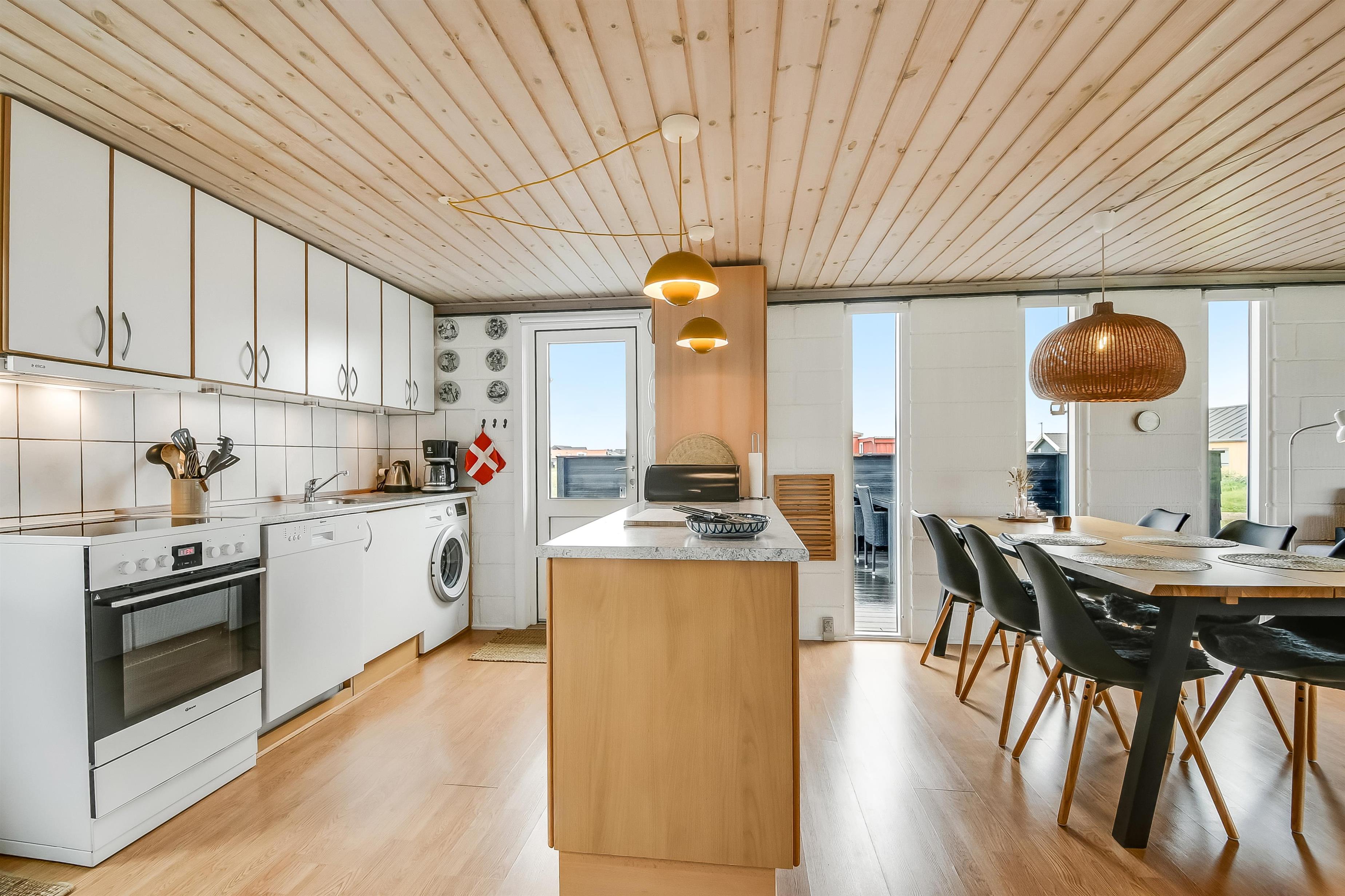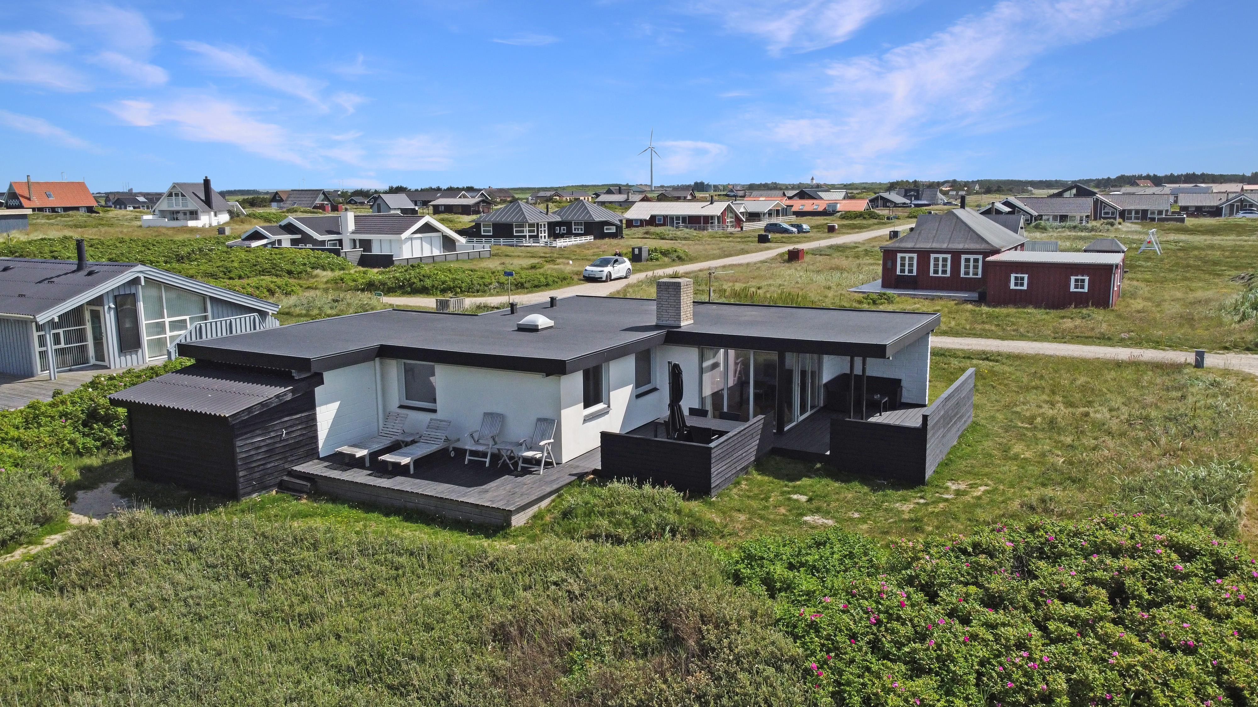 Dieses Haus ist 75 m² groß und bietet echte dänische Gemütlichkeit und wurde im Jahr 2021 schön modernisiert. Das Haus ist gut eingerichtet mit 3 Schlafzimmern (1DB, 1EB, 1DB) mit neuen, guten großen Betten. Vom kombinierten Wohnzimmer und Küche hat man einen schönen Blick auf die hohen Dünen an der Nordsee. Das Wohnzimmer ist mit guten Möbeln, Essbereich, Fernseher mit dänischen und deutschen Kanälen, Google TV, DAB Radio und Zugang zu einer schönen Terrasse ausgestattet. Für einen kühlen Sommerabend oder einen Herbsttag mit Regen und Sturm gibt es einen Kaminofen zum Heizen und für eine gemütliche Atmosphäre. Es gibt auch eine energiefreundliche Wärmepumpe im Wohnzimmer, die das ganze Haus leicht aufheizt. Die Küchenzeile verfügt über einen Herd mit Cerankochfeld, Abzugshaube, Mikrowelle, Geschirrspüler und Kühl- / Gefrierschrank. Schönes Badezimmer mit Dusche, WC, Waschbecken und Fußbodenheizung. In Verbindung mit der Terrasse und dem Carport vor dem Haus besteht ein direkter Zugang zur Sauna. Nichtraucher-Haus. Nur Hund erlaubt.