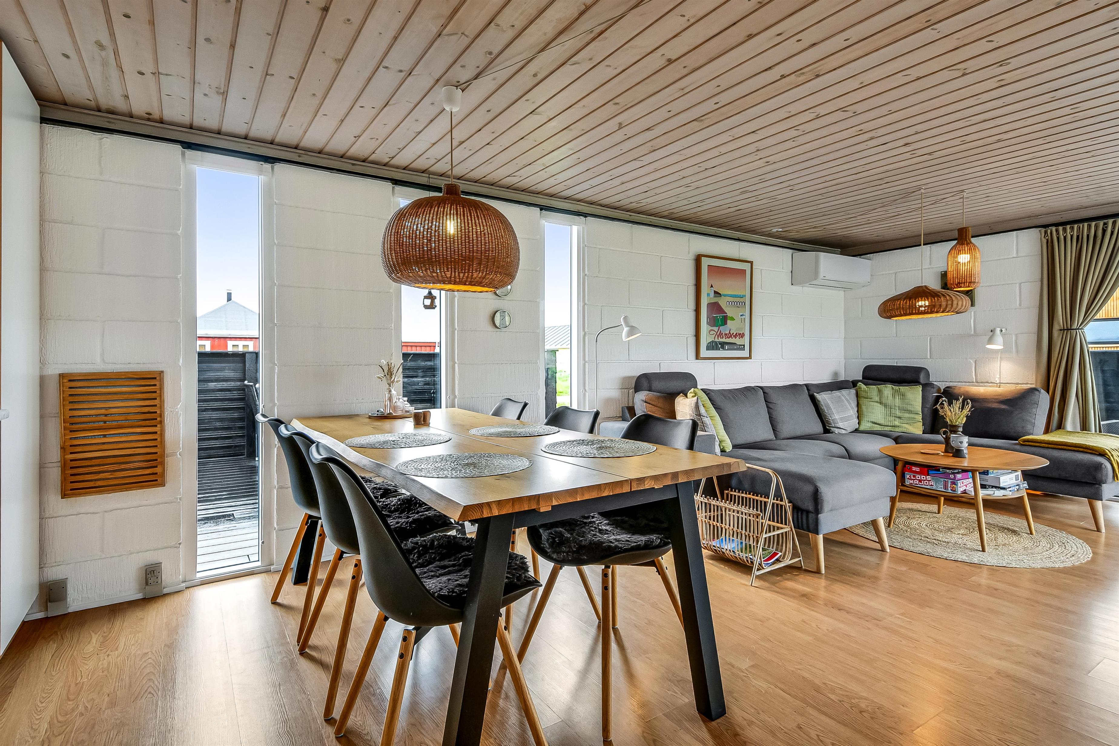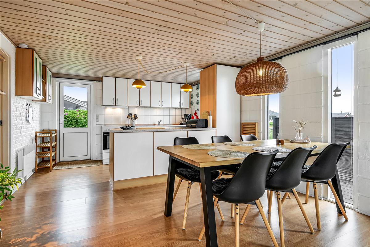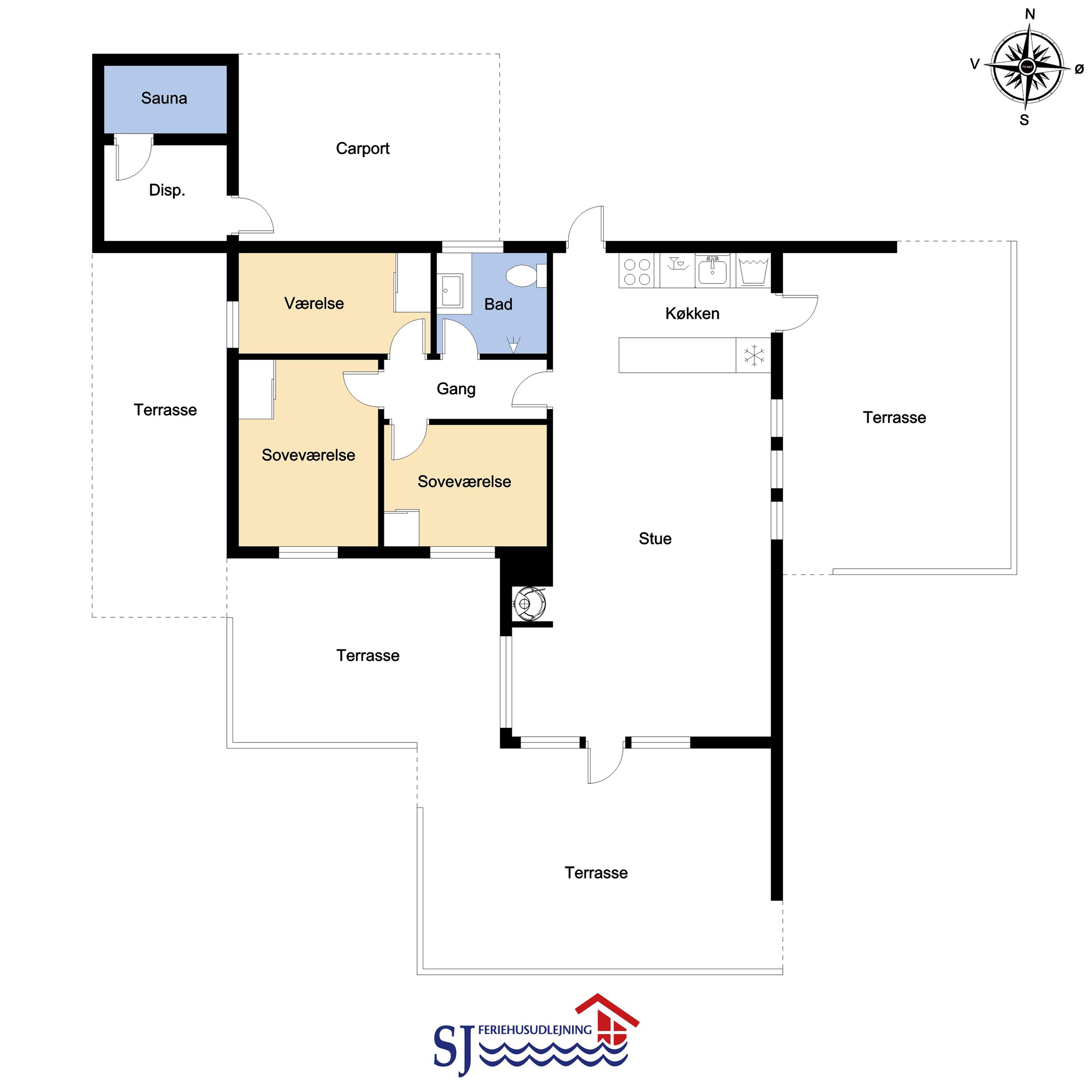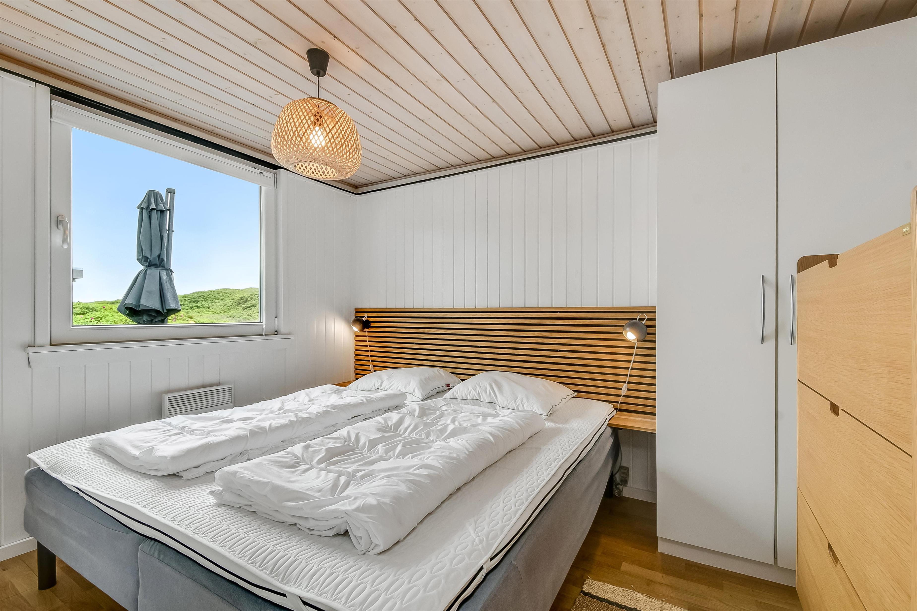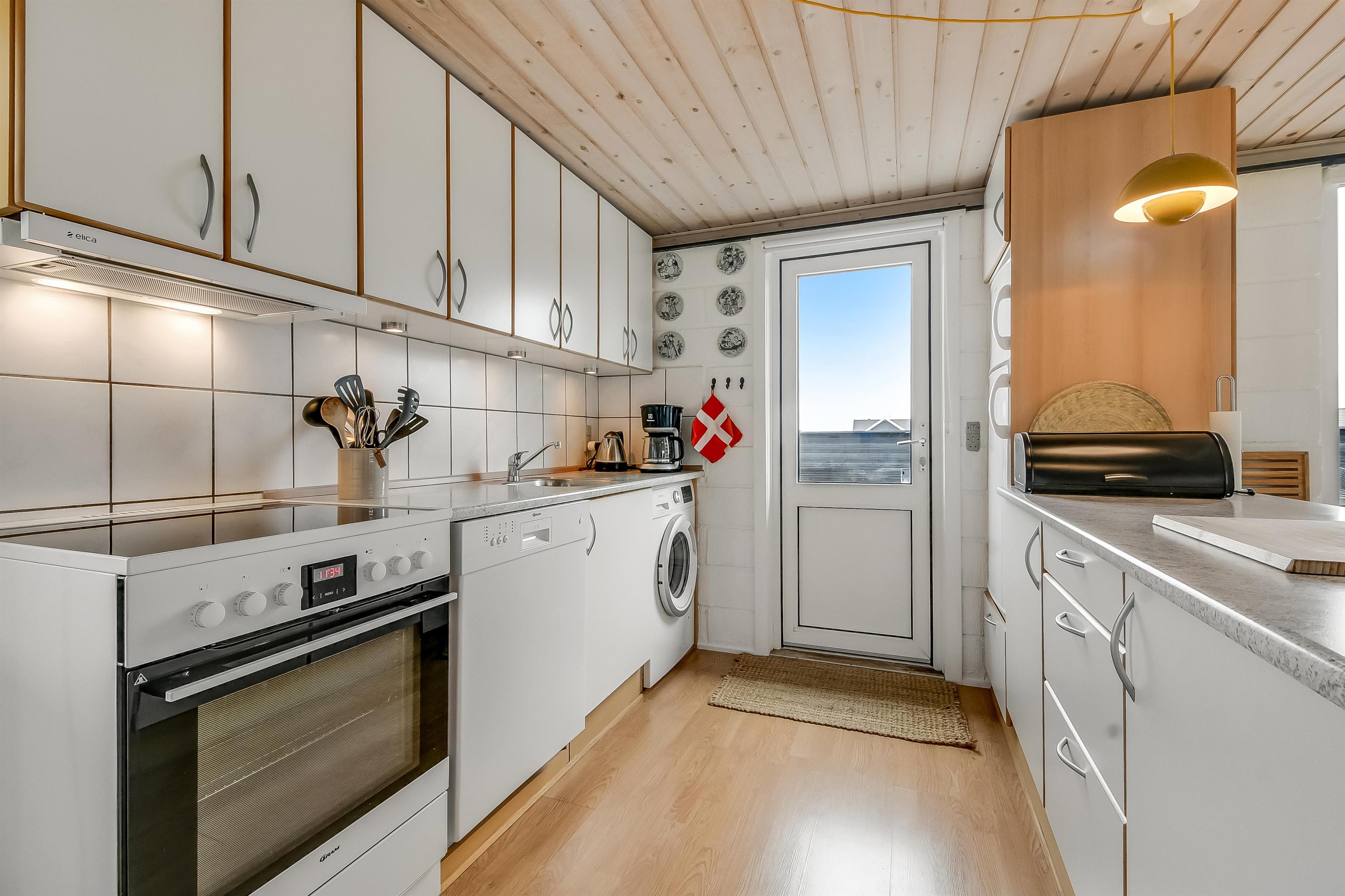 Dieses Haus ist 75 m² groß und bietet echte dänische Gemütlichkeit und wurde im Jahr 2021 schön modernisiert. Das Haus ist gut eingerichtet mit 3 Schlafzimmern (1DB, 1EB, 1DB) mit neuen, guten großen Betten. Vom kombinierten Wohnzimmer und Küche hat man einen schönen Blick auf die hohen Dünen an der Nordsee. Das Wohnzimmer ist mit guten Möbeln, Essbereich, Fernseher mit dänischen und deutschen Kanälen, Google TV, DAB Radio und Zugang zu einer schönen Terrasse ausgestattet. Für einen kühlen Sommerabend oder einen Herbsttag mit Regen und Sturm gibt es einen Kaminofen zum Heizen und für eine gemütliche Atmosphäre. Es gibt auch eine energiefreundliche Wärmepumpe im Wohnzimmer, die das ganze Haus leicht aufheizt. Die Küchenzeile verfügt über einen Herd mit Cerankochfeld, Abzugshaube, Mikrowelle, Geschirrspüler und Kühl- / Gefrierschrank. Schönes Badezimmer mit Dusche, WC, Waschbecken und Fußbodenheizung. In Verbindung mit der Terrasse und dem Carport vor dem Haus besteht ein direkter Zugang zur Sauna. Nichtraucher-Haus. Nur Hund erlaubt.