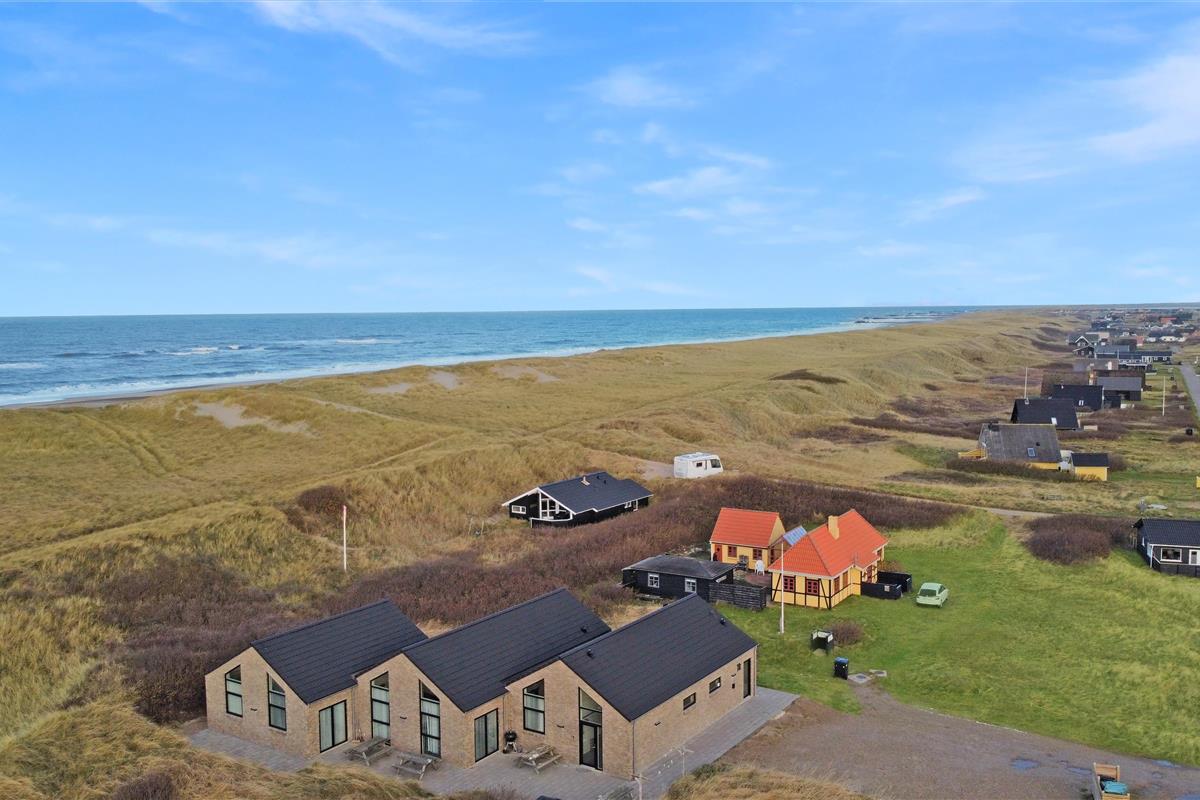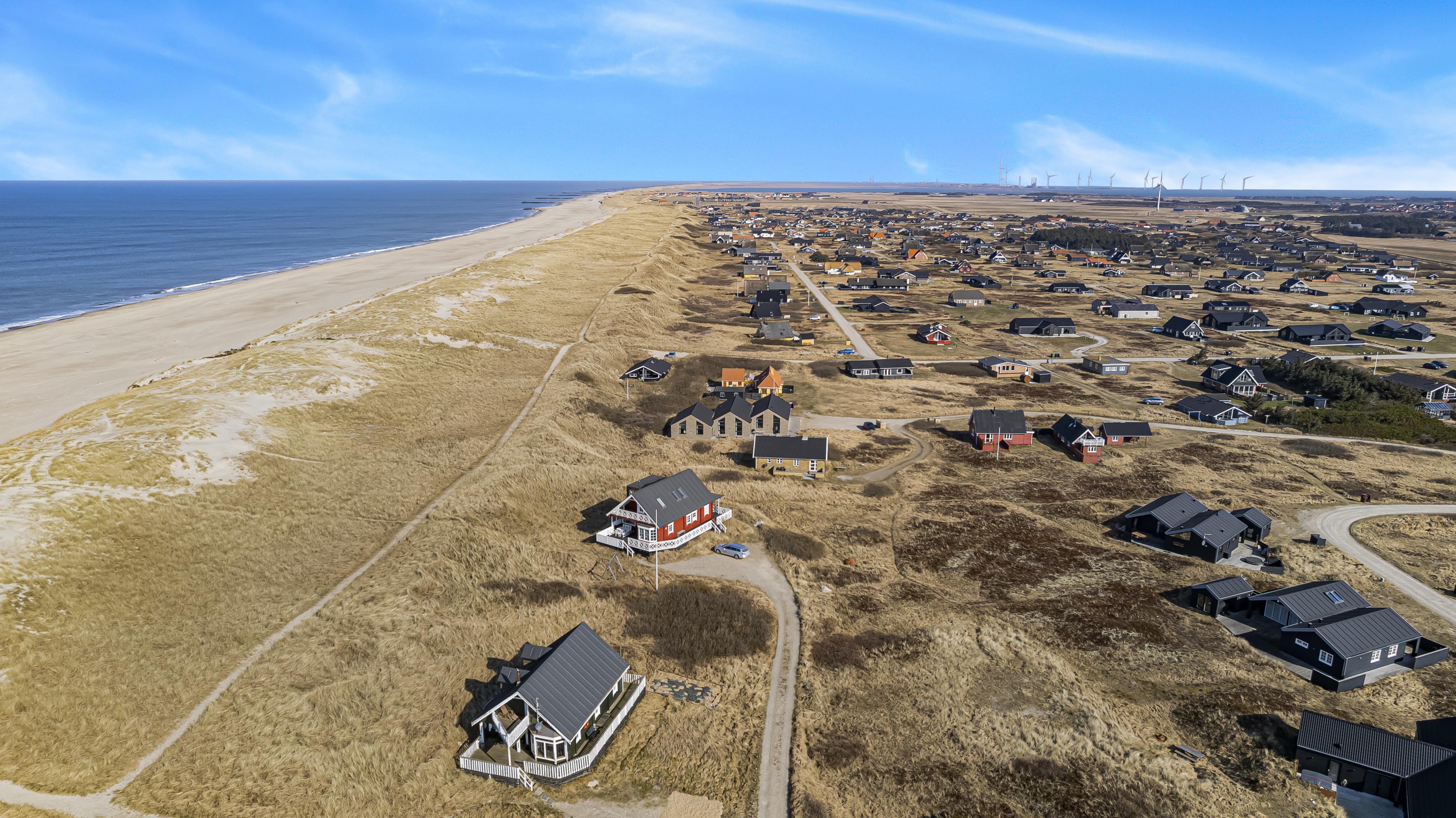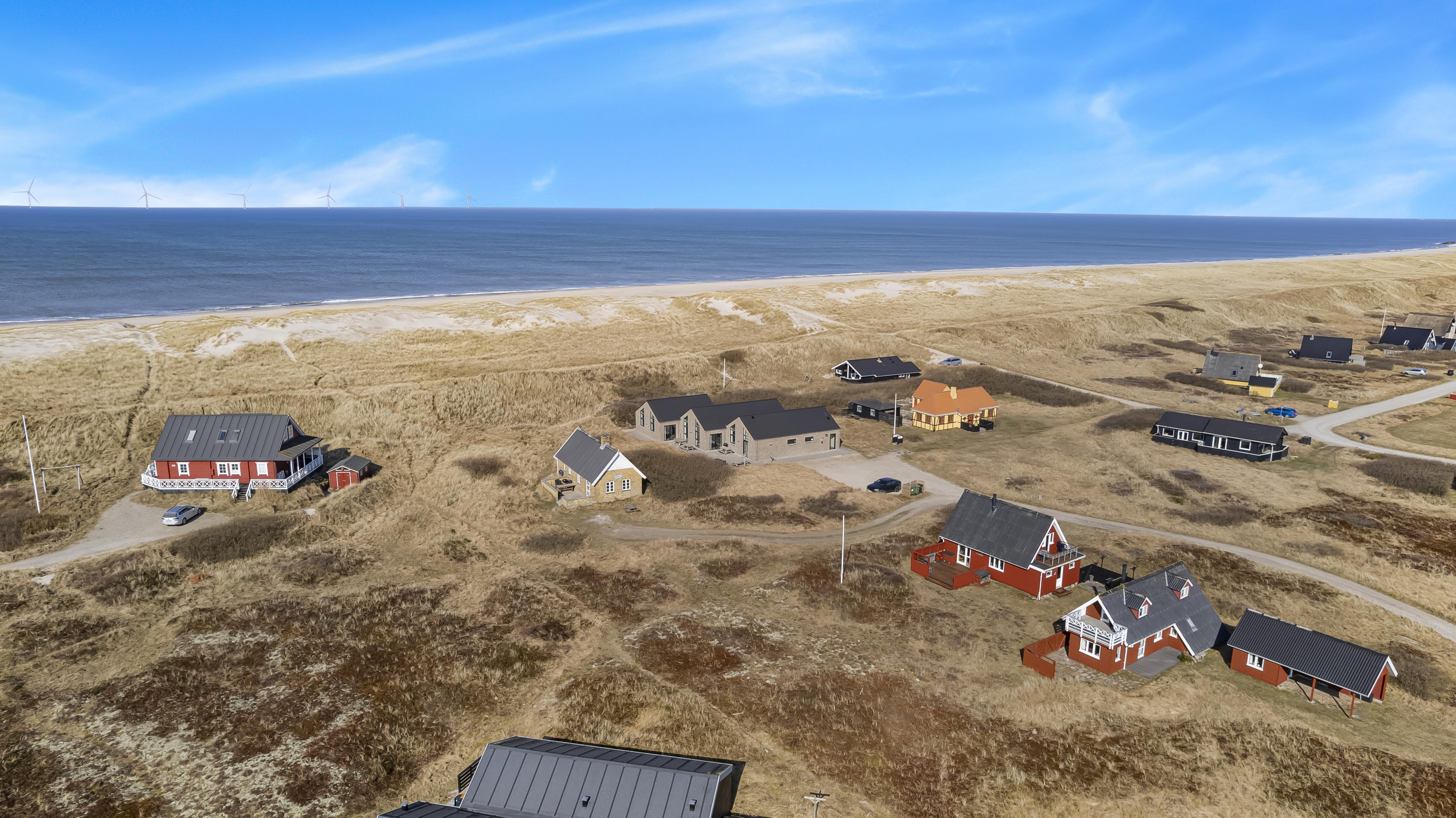 Das Ferienhaus ist auf einem 2.339 m² großen Dünengrundstück gelegen nur 75 m von der Nordsee entfernt. Große Terrassenanlage mit Gartenmöbeln, Sonnenliegen und Grill. Genießen Sie die Sonne miteinander oder einen schönen Grillabend. Gehen Sie mit dem Hund spazieren in der ruhigen Umgebung, über die hohen Dünen und gleich danach zeigt sich die Nordsee. Jeden Tag bietet die Nordsee malerische Erlebnisse und lädt zum Spazierengehen oder Laufen ein. Oder wie wäre es mit einer kleinen Tour bis zum kleinen Lebensmittelgeschäft der Gegend, das in der Saison geöffnet ist und frisches Frühstücksbrot anbietet und in dem auch täglich Einkäufe getätigt werden können. Egal, ob Sie sich für einen aktiven Urlaub oder eine totale Entspannung entscheiden, dieses schöne Ferienhaus ist von seiner Bauart, Lage und Umgebung perfekt. Sowohl die lebendige Handelsstadt Lemvig mit mehreren Fachgeschäften als auch das einzigartige Fischerdorf Thyborøn, das neben dem aktiven Fischereihafen auch einen Badestrand und verschiedene Aktivitätsmöglichkeiten bietet, die alle einen Besuch wert sind, sind mit dem Auto in Kürze erreichbar