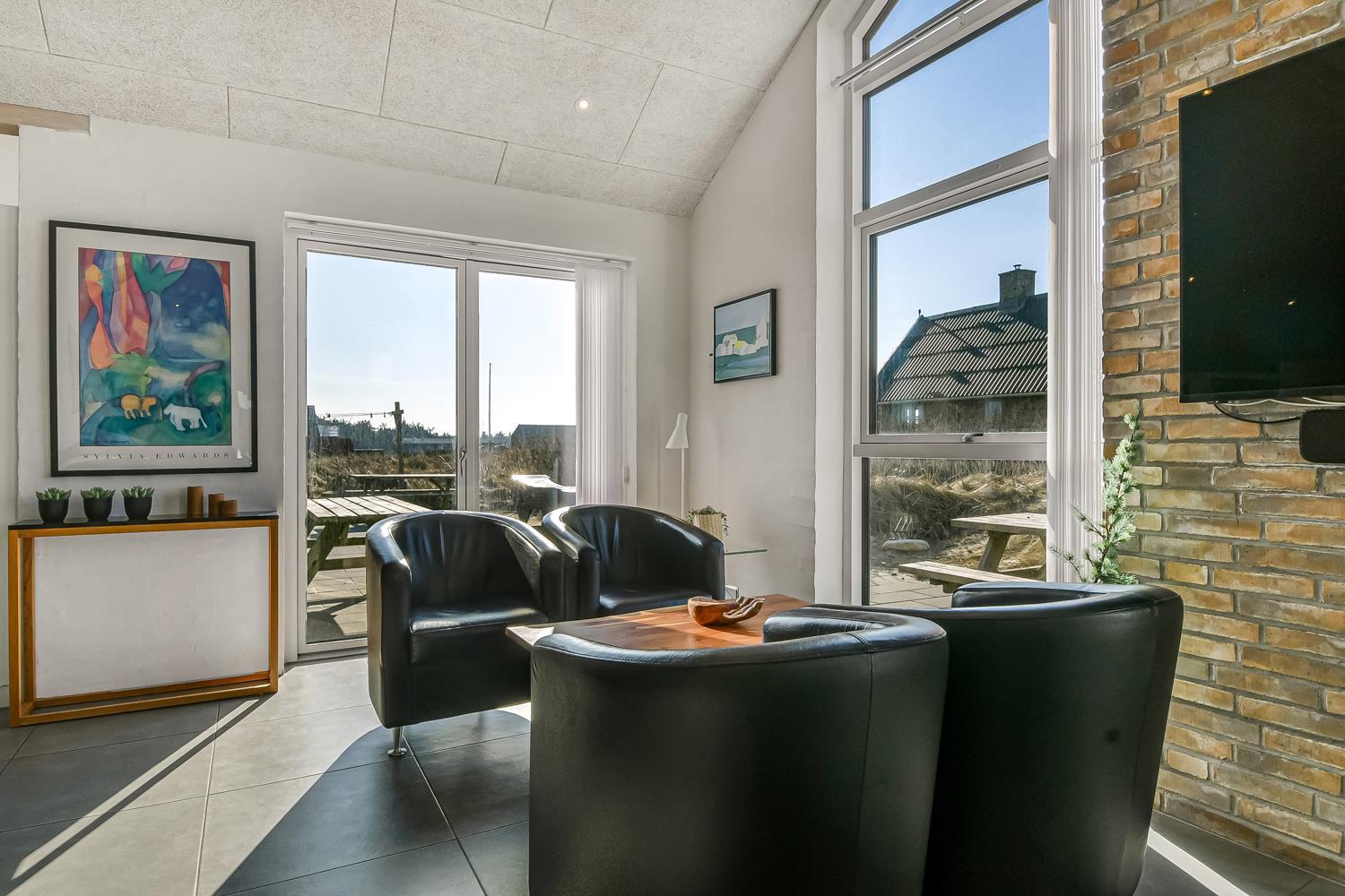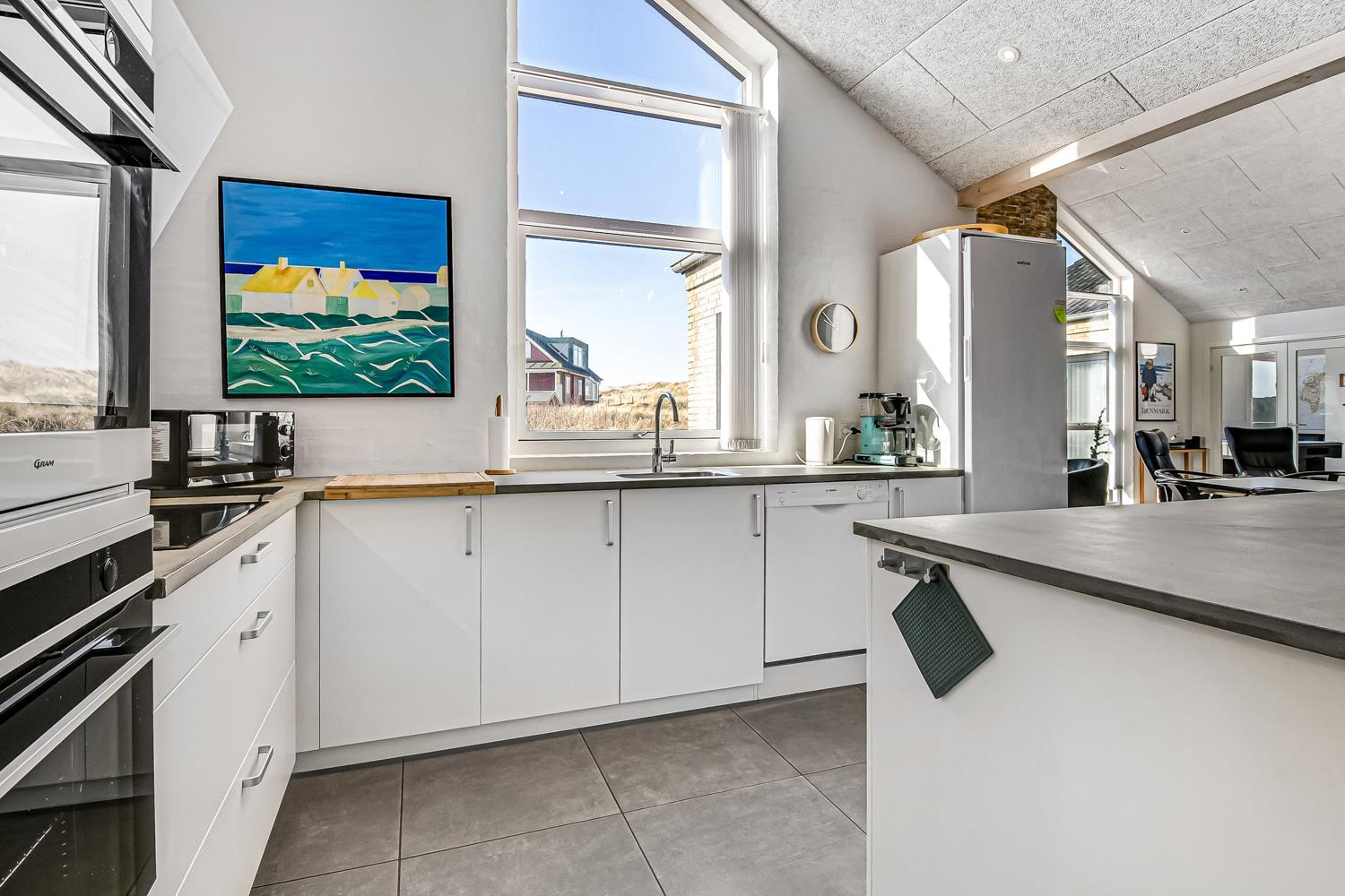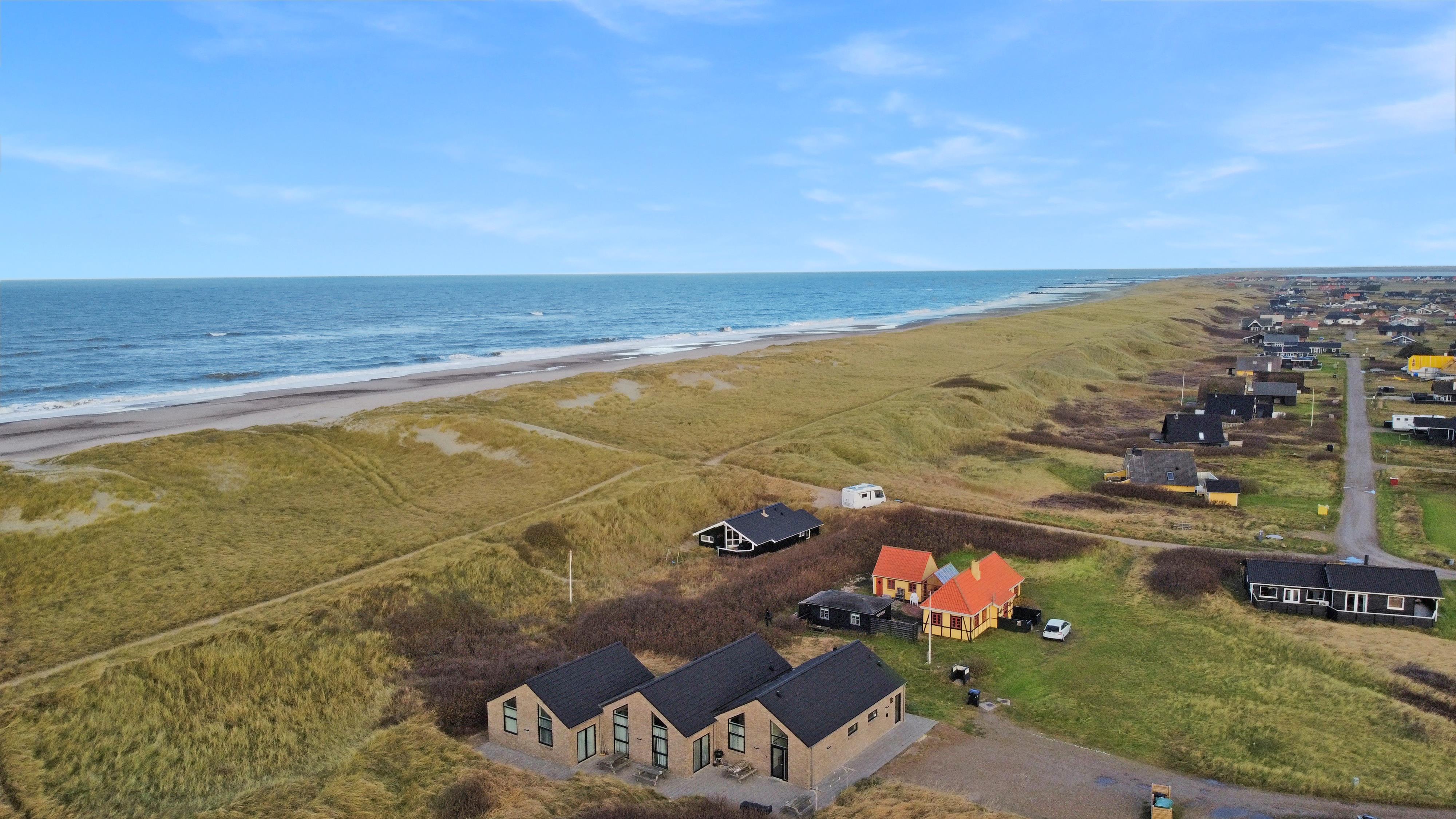 Das Ferienhaus ist auf einem 2.339 m² großen Dünengrundstück gelegen nur 75 m von der Nordsee entfernt. Große Terrassenanlage mit Gartenmöbeln, Sonnenliegen und Grill. Genießen Sie die Sonne miteinander oder einen schönen Grillabend. Gehen Sie mit dem Hund spazieren in der ruhigen Umgebung, über die hohen Dünen und gleich danach zeigt sich die Nordsee. Jeden Tag bietet die Nordsee malerische Erlebnisse und lädt zum Spazierengehen oder Laufen ein. Oder wie wäre es mit einer kleinen Tour bis zum kleinen Lebensmittelgeschäft der Gegend, das in der Saison geöffnet ist und frisches Frühstücksbrot anbietet und in dem auch täglich Einkäufe getätigt werden können. Egal, ob Sie sich für einen aktiven Urlaub oder eine totale Entspannung entscheiden, dieses schöne Ferienhaus ist von seiner Bauart, Lage und Umgebung perfekt. Sowohl die lebendige Handelsstadt Lemvig mit mehreren Fachgeschäften als auch das einzigartige Fischerdorf Thyborøn, das neben dem aktiven Fischereihafen auch einen Badestrand und verschiedene Aktivitätsmöglichkeiten bietet, die alle einen Besuch wert sind, sind mit dem Auto in Kürze erreichbar