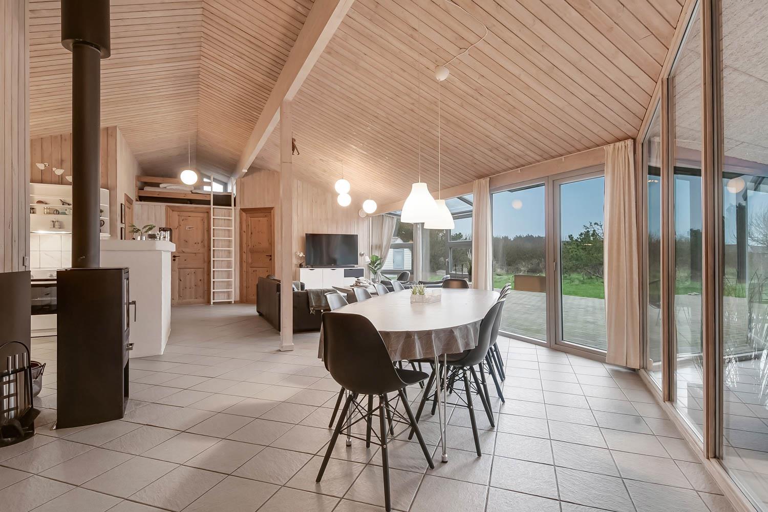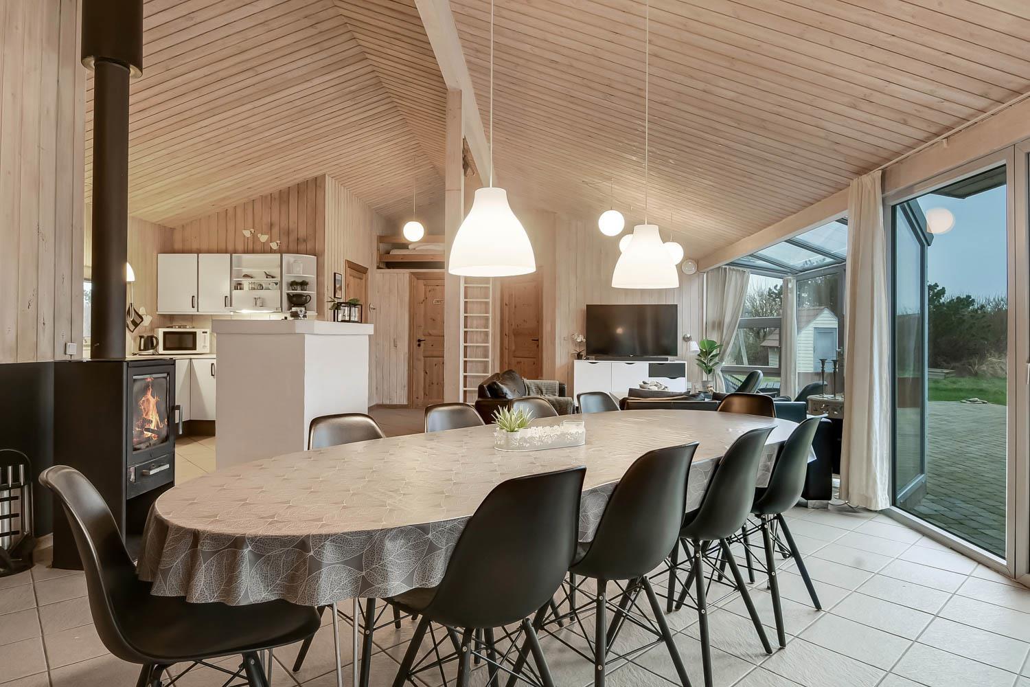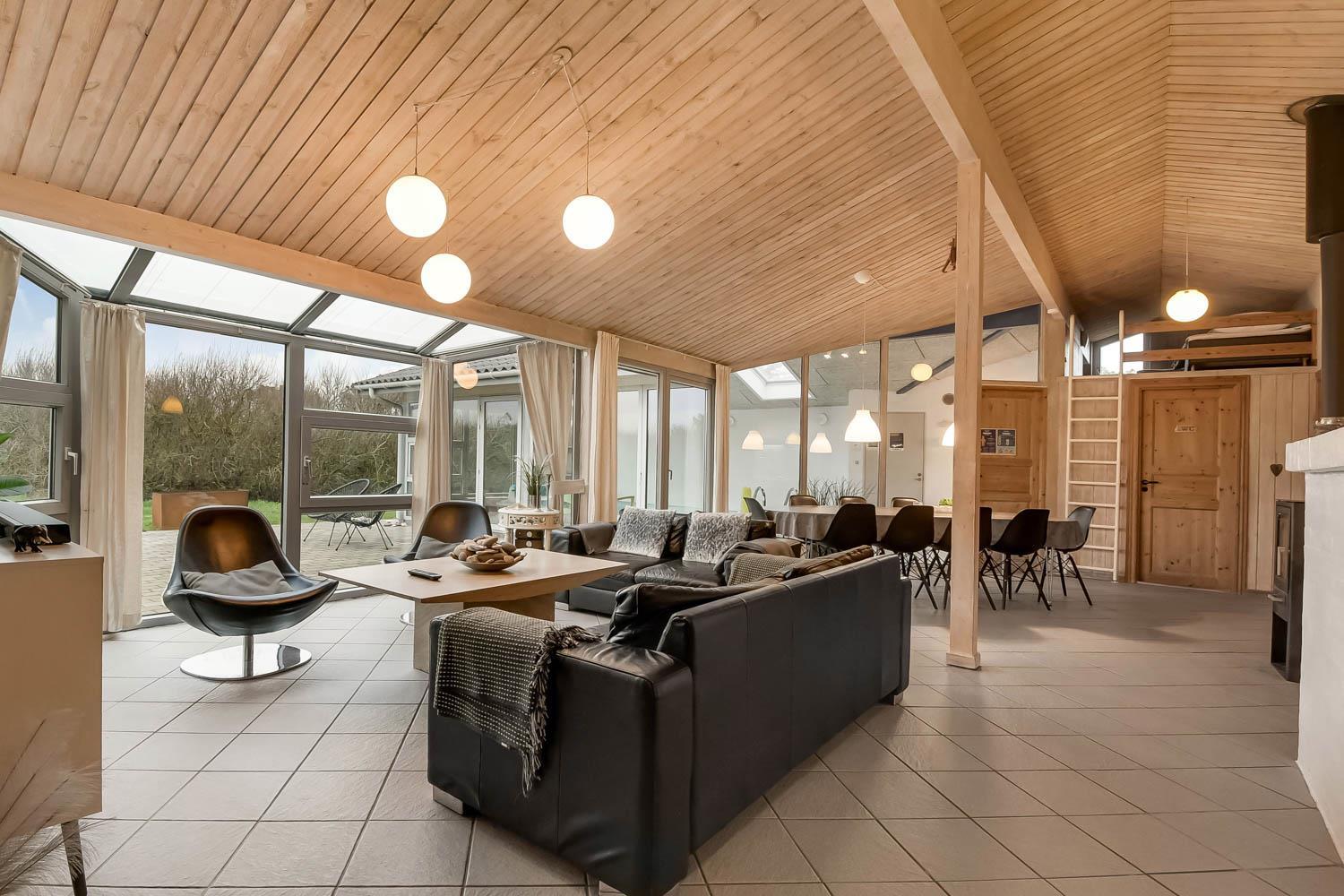 Die Küche des Hauses, die mit dem Wohnzimmer kombiniert ist, ist gut ausgestattet, unter anderem mit Geschirrspüler , Mikrowelle und Kühlschrank mit Gefrierfach. Das gemütliche Wohnzimmer ist mit komfortablen Möbeln, Kaminofen und Flachbildfernseher mit DR-Kanälen, Chromcast, Satellitenschüssel für die deutschen Kanäle und Stereoanlage ausgestattet. 4 gute Schlafzimmer, die mit 1DB+ 1DB + 2B + 2B und offenem Schlafboden mit 2 Schlafmöglichkeiten eingerichtet sind. In allen Zimmern können Doppel- und Einzelbetten hergestellt werden. Für die Kleinen gibt es ein Kinderbett und einen Hochstuhl. Das Haus verfügt über 2 Badezimmer, eines davon mit Toilette, Waschbecken, Dusche und Fußbodenheizung sowie Sauna. Die zweite ist auch mit Dusche und Fußbodenheizung und es gibt Platz für eine Wickelunterlage. Der schöner Poolraum hat Panoramafenster zu 3 Seiten, die ein schönes Licht bieten. Neben dem Pool gibt es einen Whirlpool. Im Haus ist eine Luft-Wasser-Wärmepumpe installiert, über die der Pool beheizt wird. Energifreundliches Haus. Das Haus ist natürlich auch mit Waschmaschine und Trockner ausgestattet. Wenn Sie ein Elektroauto oder einen Plug-in-Hybrid haben, verfügt das Haus über eine Ladegerät, Type 2 die bis zu 11 kWh aufladen kann. Kaution Wintersaison EUR 600 und Sommersaison EUR 300.