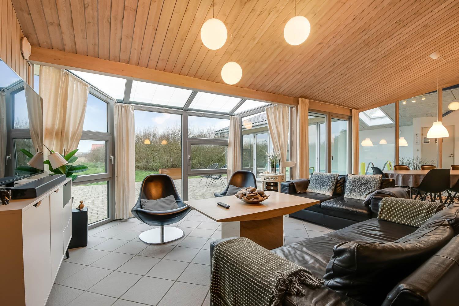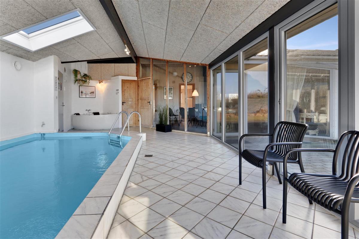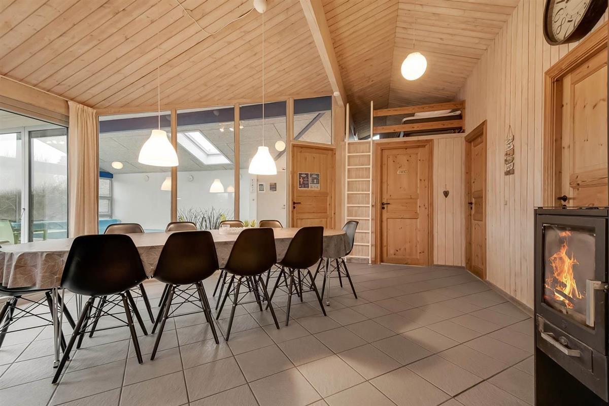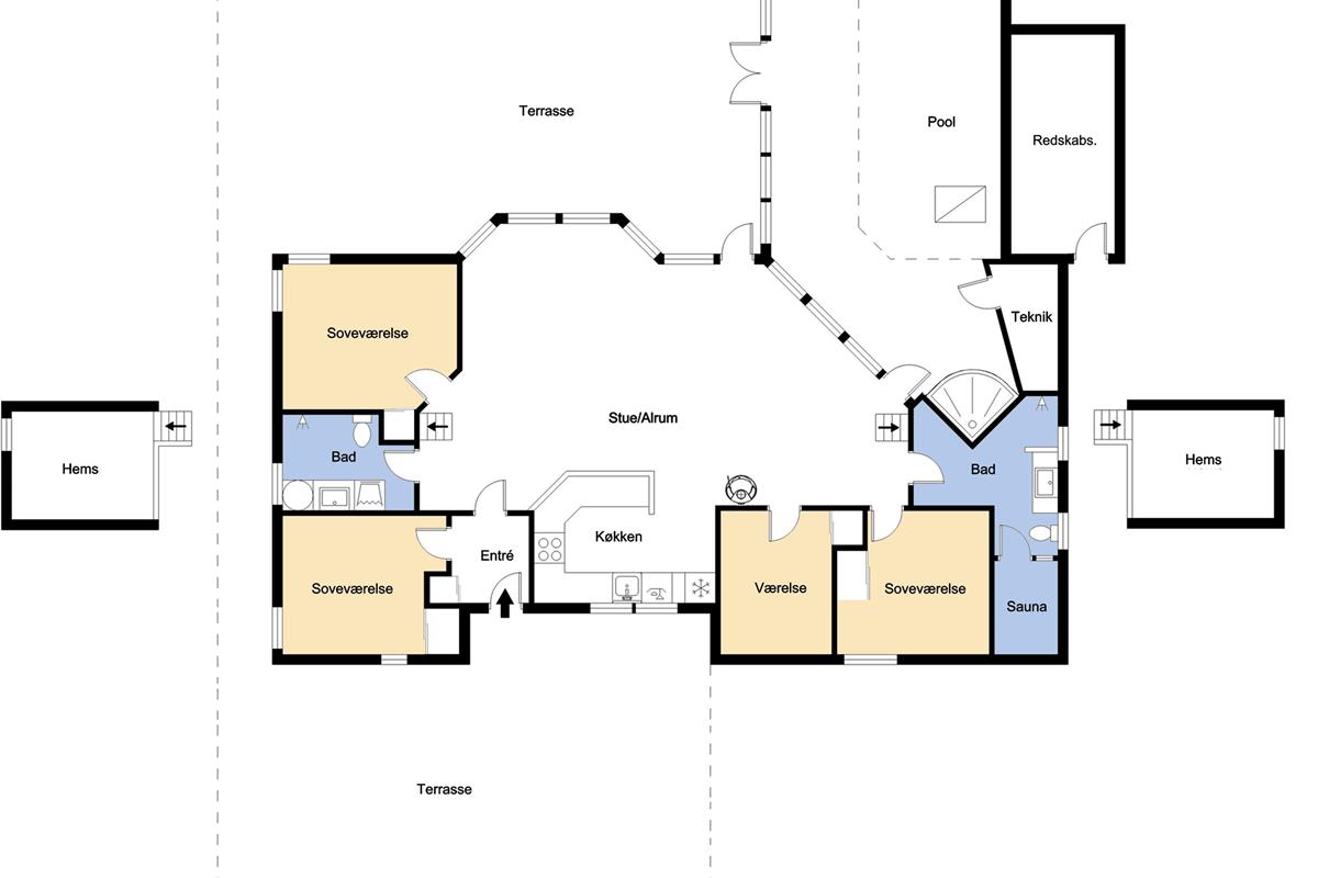 Die Küche des Hauses, die mit dem Wohnzimmer kombiniert ist, ist gut ausgestattet, unter anderem mit Geschirrspüler , Mikrowelle und Kühlschrank mit Gefrierfach. Das gemütliche Wohnzimmer ist mit komfortablen Möbeln, Kaminofen und Flachbildfernseher mit DR-Kanälen, Chromcast, Satellitenschüssel für die deutschen Kanäle und Stereoanlage ausgestattet. 4 gute Schlafzimmer, die mit 1DB+ 1DB + 2B + 2B und offenem Schlafboden mit 2 Schlafmöglichkeiten eingerichtet sind. In allen Zimmern können Doppel- und Einzelbetten hergestellt werden. Für die Kleinen gibt es ein Kinderbett und einen Hochstuhl. Das Haus verfügt über 2 Badezimmer, eines davon mit Toilette, Waschbecken, Dusche und Fußbodenheizung sowie Sauna. Die zweite ist auch mit Dusche und Fußbodenheizung und es gibt Platz für eine Wickelunterlage. Der schöner Poolraum hat Panoramafenster zu 3 Seiten, die ein schönes Licht bieten. Neben dem Pool gibt es einen Whirlpool. Im Haus ist eine Luft-Wasser-Wärmepumpe installiert, über die der Pool beheizt wird. Energifreundliches Haus. Das Haus ist natürlich auch mit Waschmaschine und Trockner ausgestattet. Wenn Sie ein Elektroauto oder einen Plug-in-Hybrid haben, verfügt das Haus über eine Ladegerät, Type 2 die bis zu 11 kWh aufladen kann. Kaution Wintersaison EUR 600 und Sommersaison EUR 300.