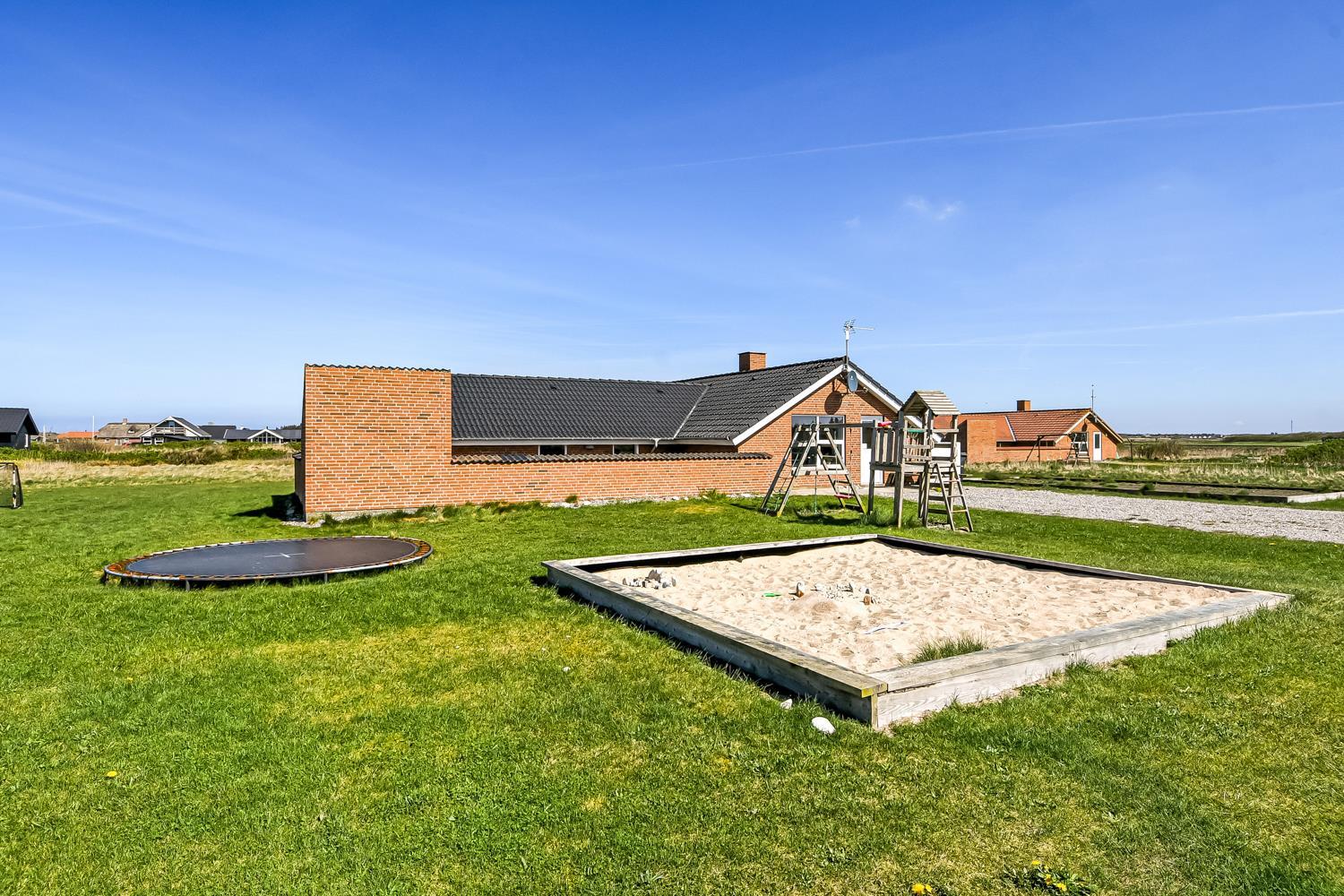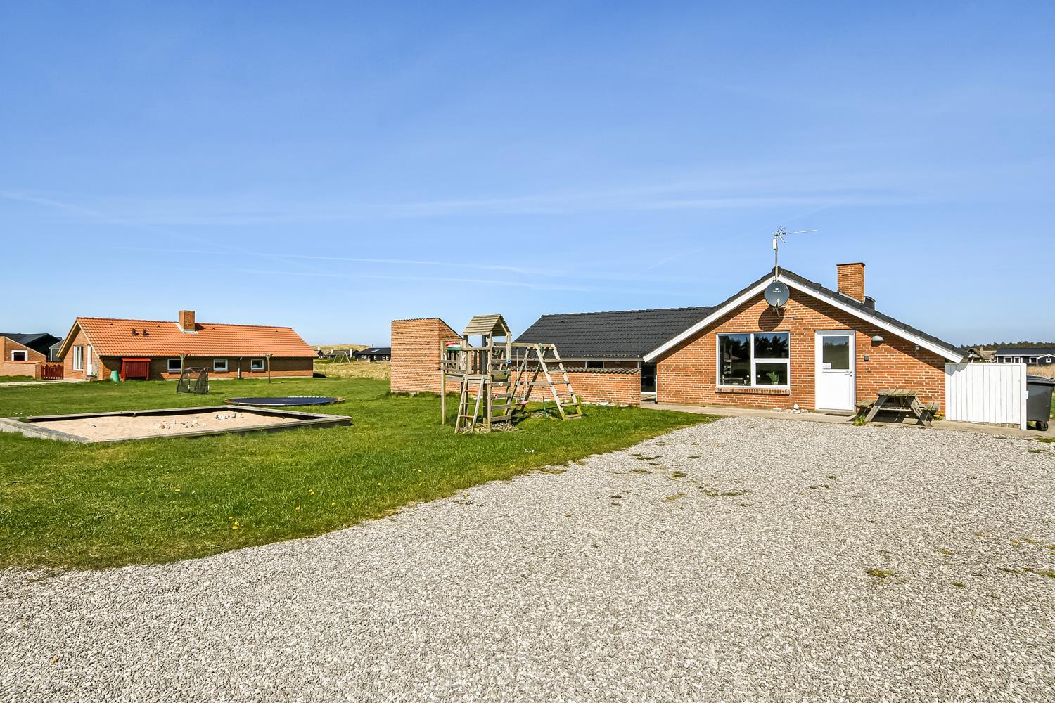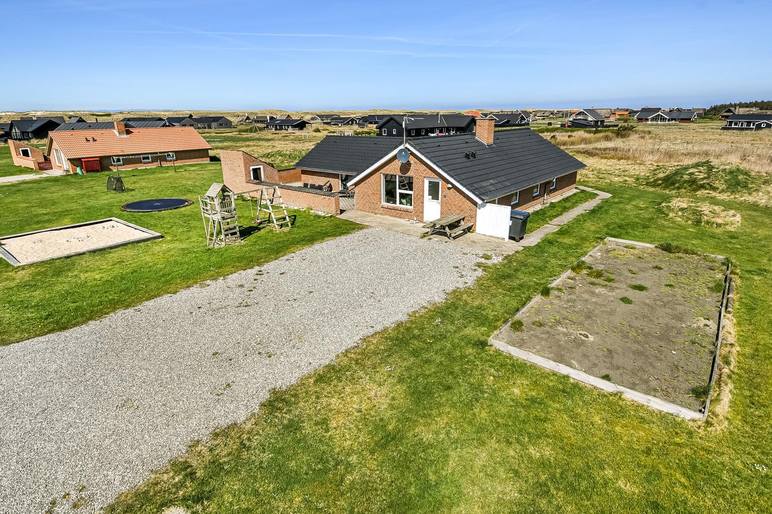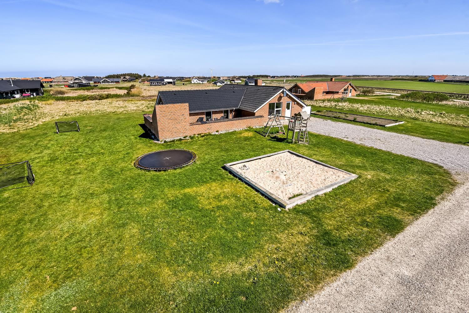Das Haus wurde im Jahr 1996 erbaut und liegt auf einem etwa 2.500 m²grossen Grundstück, bloss 300 m von der Nordsee entfernt. Vom Wohnraum gibt es einen Ausgang zur grossen eingezäunten Terrassenanlage. Auf der Terrasse gibt es Gartenmöbel, Sonnenliegen und Grill. Ideal für Kinder und Haustiere. Direkt an der Terrasse ist ein schöner Spielplatz mit z.B. Rutsche und Klettergerüst. Geniessen Sie die Sonne miteinander oder einen schönen Grillabend. Laufen Sie mit dem Hund in der Umgebung. Diese Gegend ist zu jeder Jahreszeit einen Besuch wert. Nach einer kurzen Autofahrt erreichen Sie die aktive Handelsstadt Lemvig mit mehreren Spezialgeschäften, als auch das einzigartige Fischerdorf Thyborøn, das neben dem aktiven Fischerhafen auch einen Strand bietet . Beide Orte bieten mehrere Aktivitäten, die alle einen Besuch wert sind.