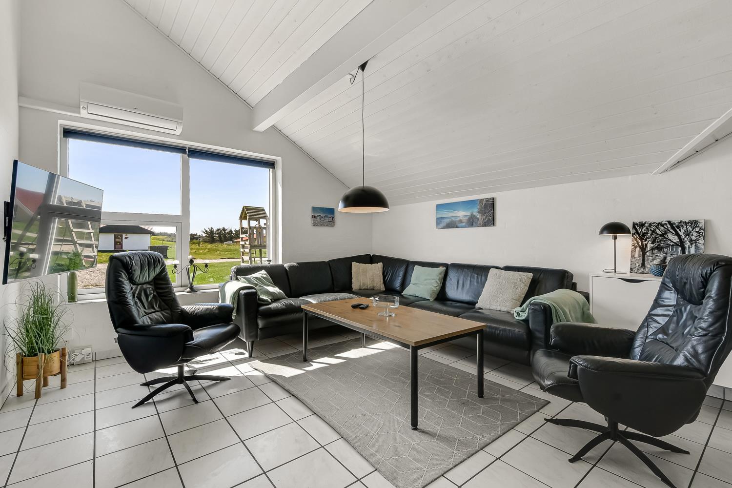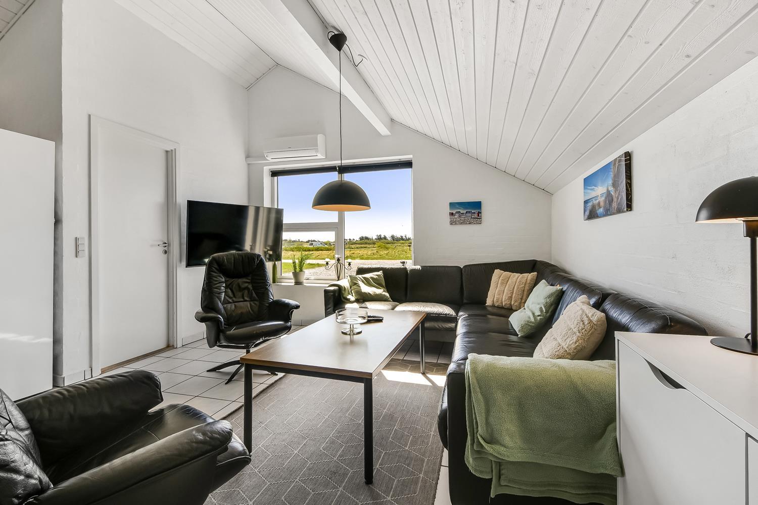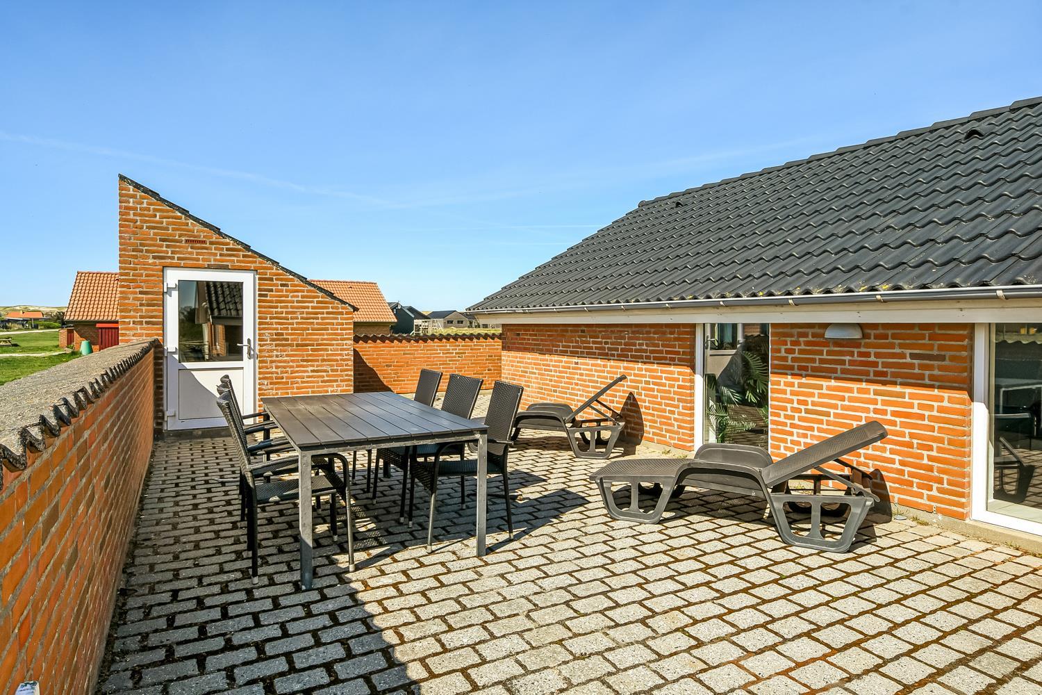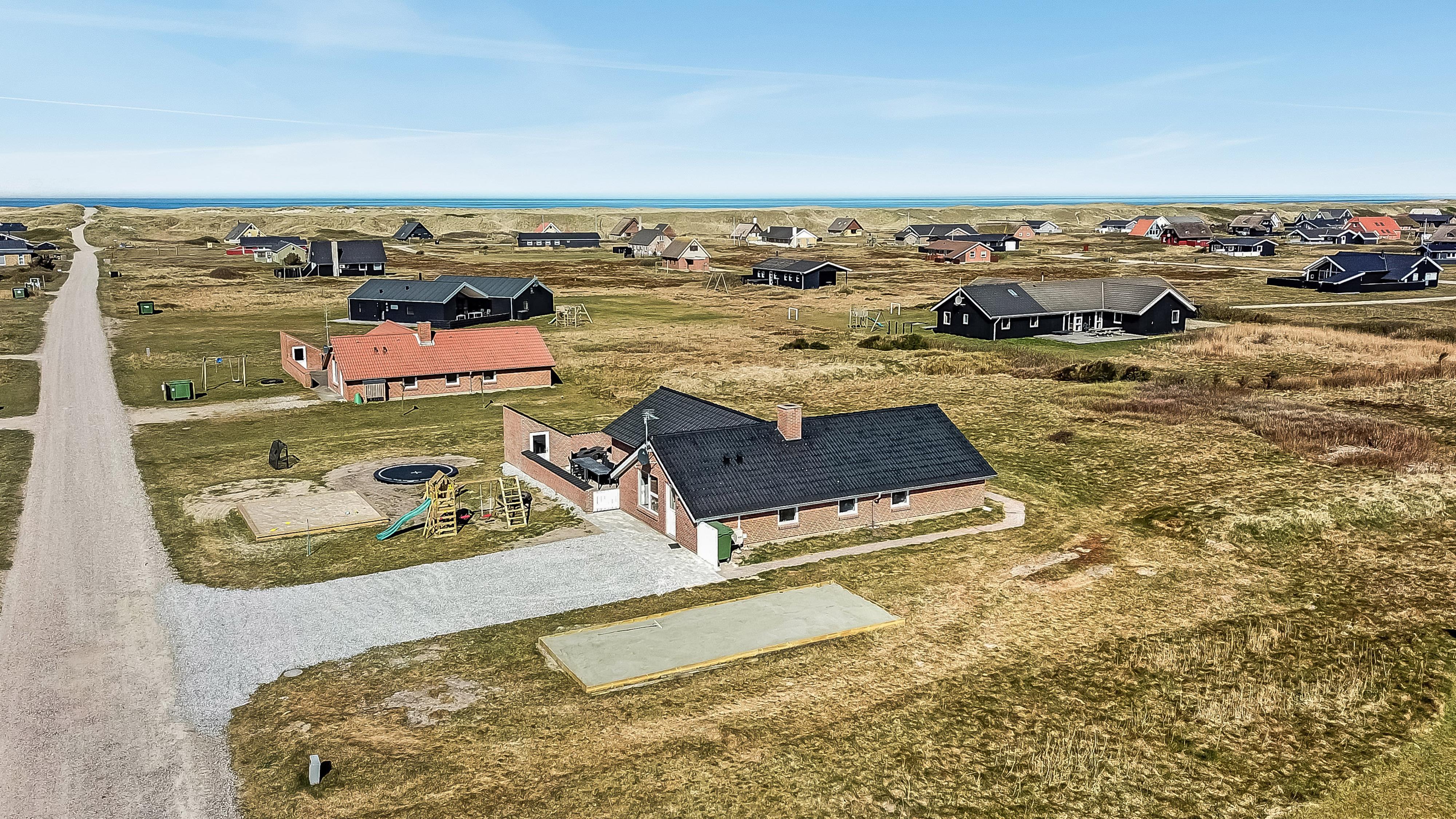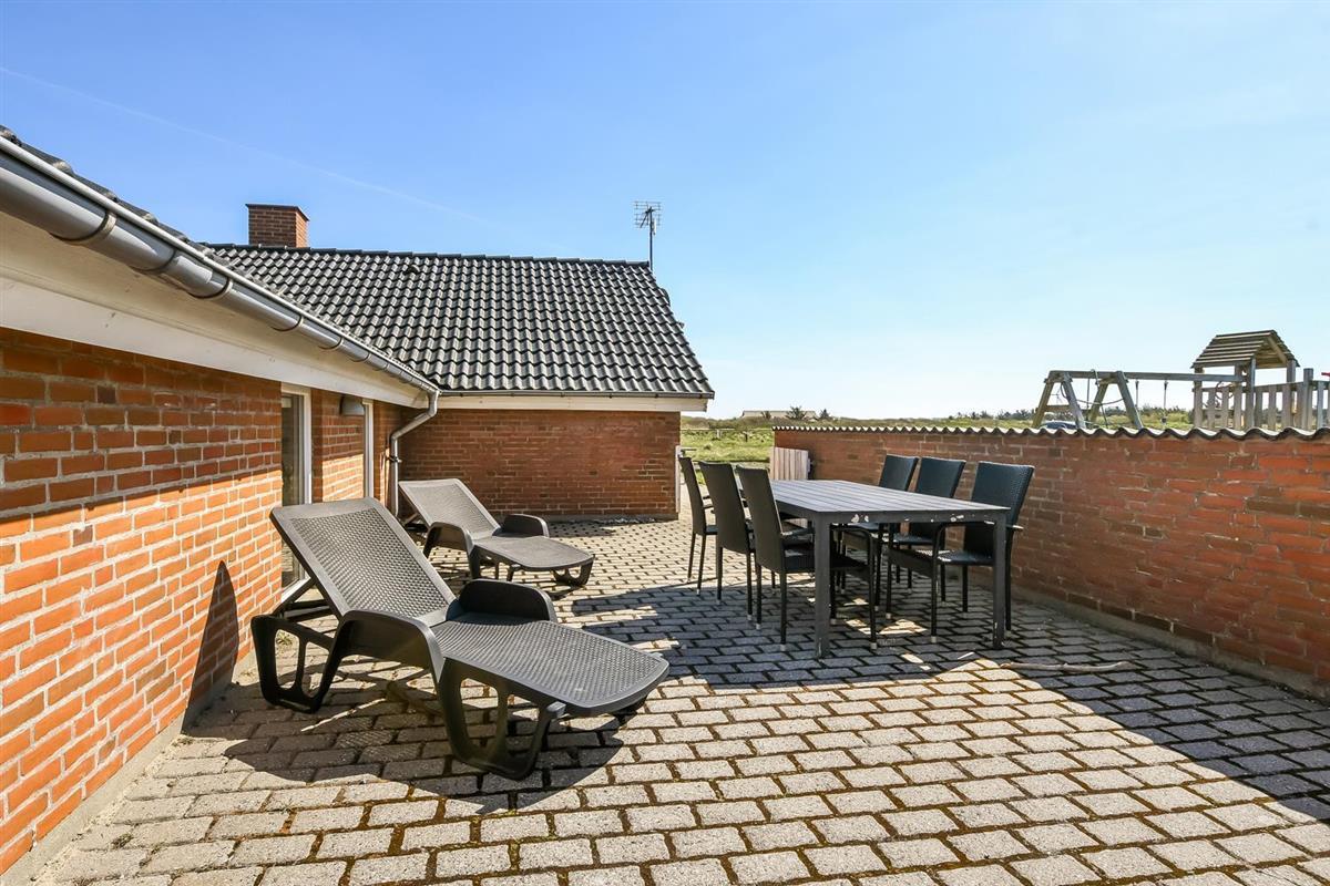 Das Haus wurde im Jahr 1996 erbaut und liegt auf einem etwa 2.500 m²grossen Grundstück, bloss 300 m von der Nordsee entfernt. Vom Wohnraum gibt es einen Ausgang zur grossen eingezäunten Terrassenanlage. Auf der Terrasse gibt es Gartenmöbel, Sonnenliegen und Grill. Ideal für Kinder und Haustiere. Direkt an der Terrasse ist ein schöner Spielplatz mit z.B. Rutsche und Klettergerüst. Geniessen Sie die Sonne miteinander oder einen schönen Grillabend. Laufen Sie mit dem Hund in der Umgebung. Diese Gegend ist zu jeder Jahreszeit einen Besuch wert. Nach einer kurzen Autofahrt erreichen Sie die aktive Handelsstadt Lemvig mit mehreren Spezialgeschäften, als auch das einzigartige Fischerdorf Thyborøn, das neben dem aktiven Fischerhafen auch einen Strand bietet . Beide Orte bieten mehrere Aktivitäten, die alle einen Besuch wert sind.
