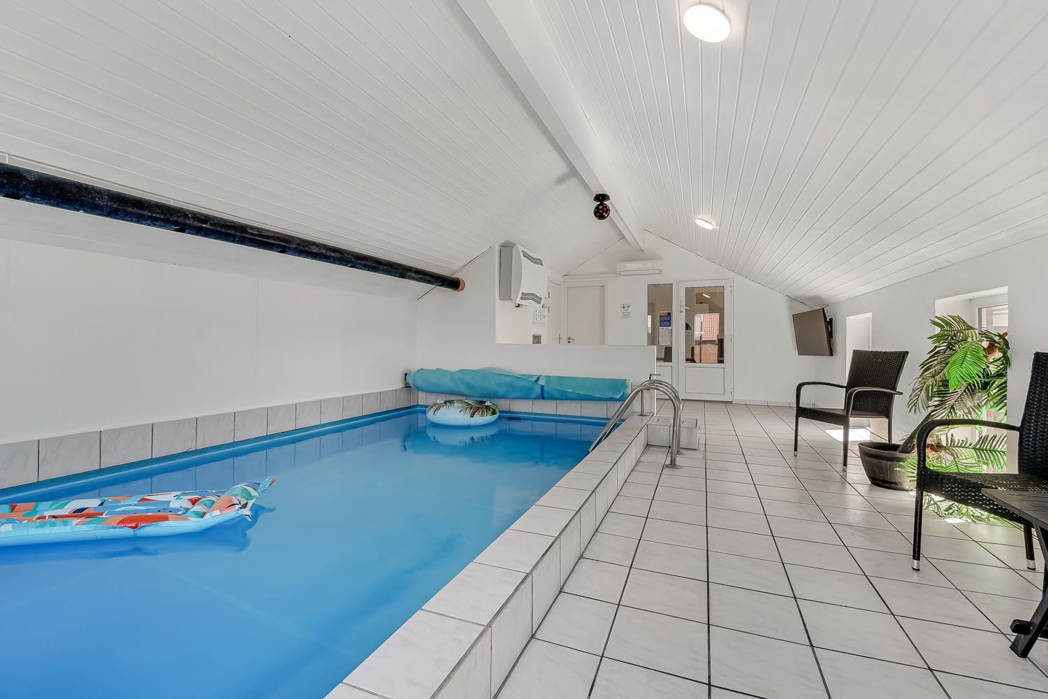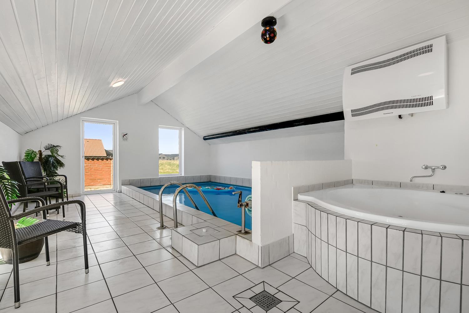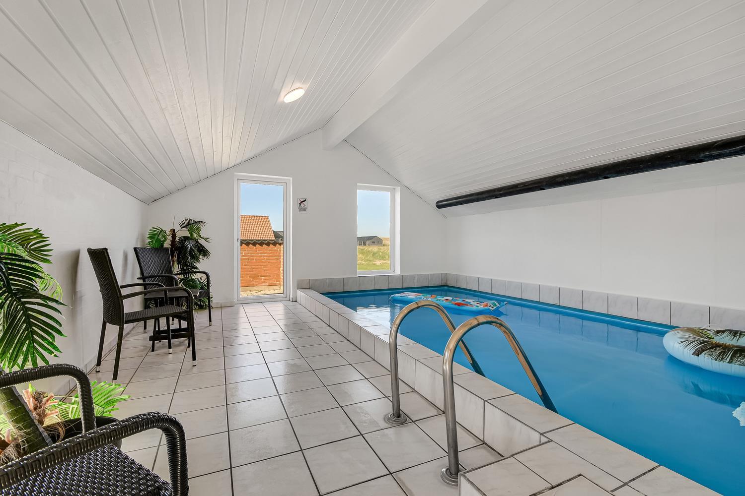 Das Haus ist 153 m² gross und hat 4 schöne Schlafräume: 1DB + 1DB + 2B + 2B mit Komfortbetten. Im Herzen des Hauses finden Sie die gut ausgestattete Küche mit Herd mit Cerankochfeld, Abzugshaube, Geschirrspüler, Mikrowelle und Kühlschrank mit Gefrierfach. Geniessen Sie Ihr Essen am Esstisch oder entspannen Sie einfach in den Ledermöbeln. Smart-TV mit dänischen und deutschen Programmen, Radio und die Möglichkeit zum Streaming. Möchten Sie die Stimmung erhöhen, dann machen Sie den Kaminofen an, wo Sie die intensive Wärme und den Blick in die Flammen geniessen können. Es gibt Fliesenboden mit Fussbodenheizung im Wohnraum und dem Küchebereich. Die Schlafräume sind mit Holzböden ausgelegt. Der Wellnessbereich des Hauses ist die Poolabteilung mit dem Whirlpool, der Sauna und natürlich auch mit dem Pool eingerichtet. 2 Badezimmer mit Toilette, Dusche, Waschbecken und Fussbodenheizung. Waschmaschine und Trockner sind natürlich auch vorhanden und stehen im Flur. Nichtraucher- Haus. Max. 2 Haustiere sind erlaubt. Kaution Wintersaison EUR 400 und Sommersaison EUR 300. Obligatorische Endreinigung.