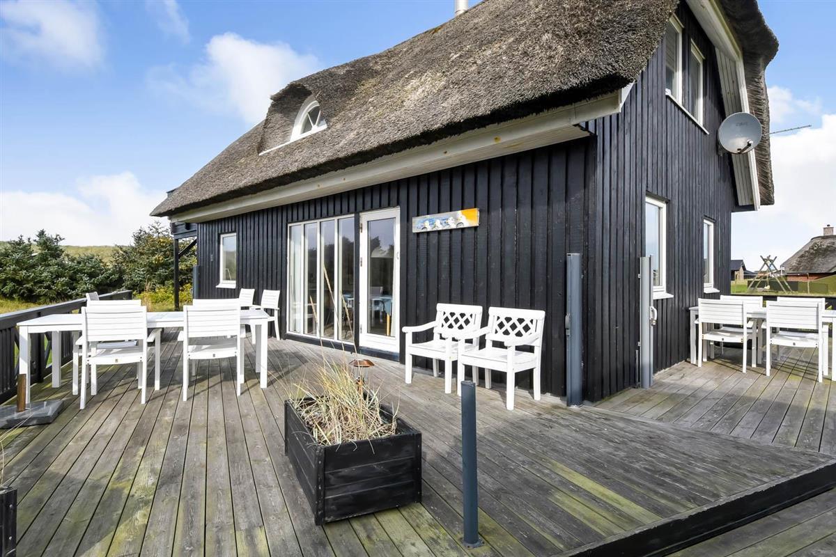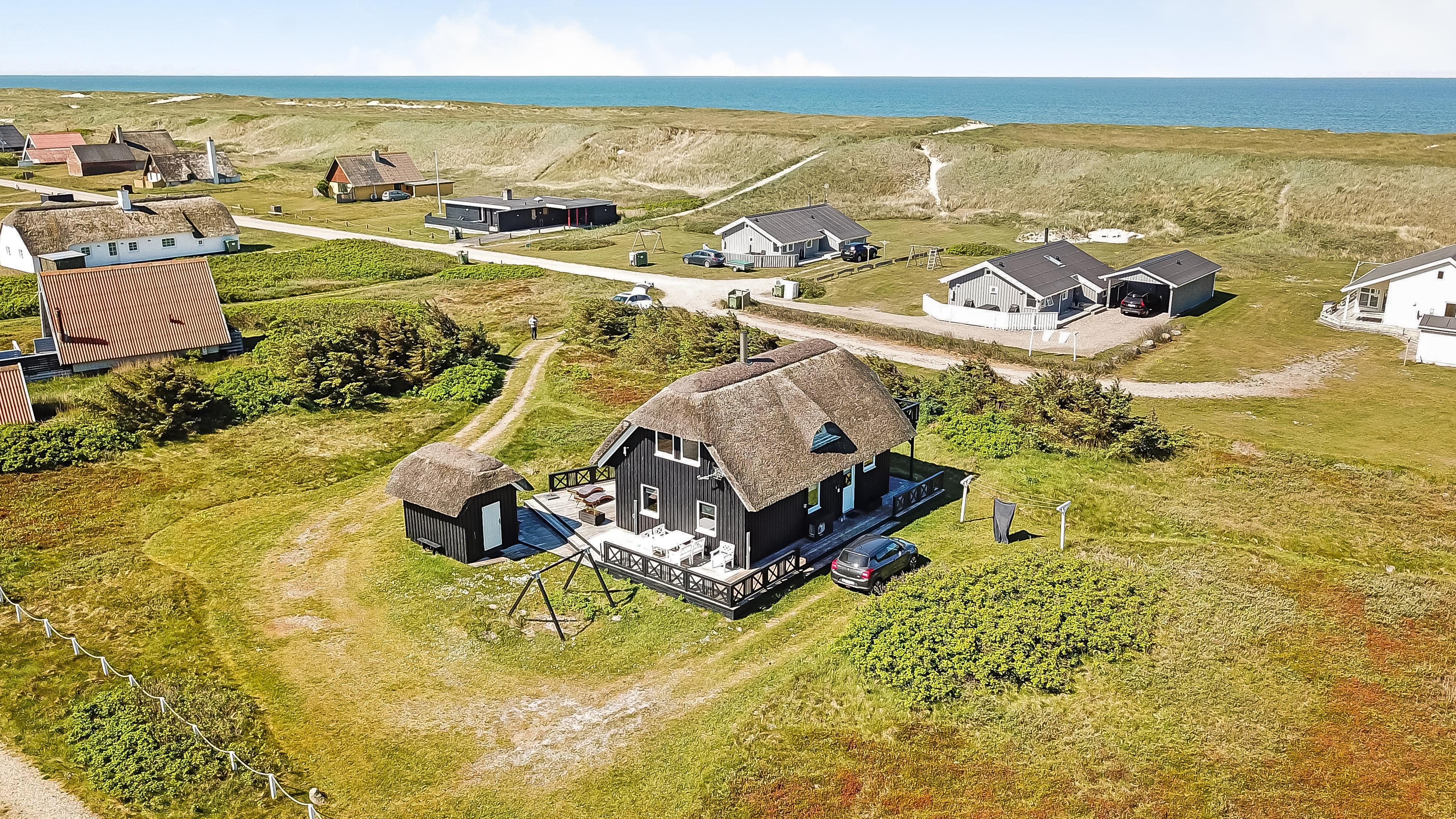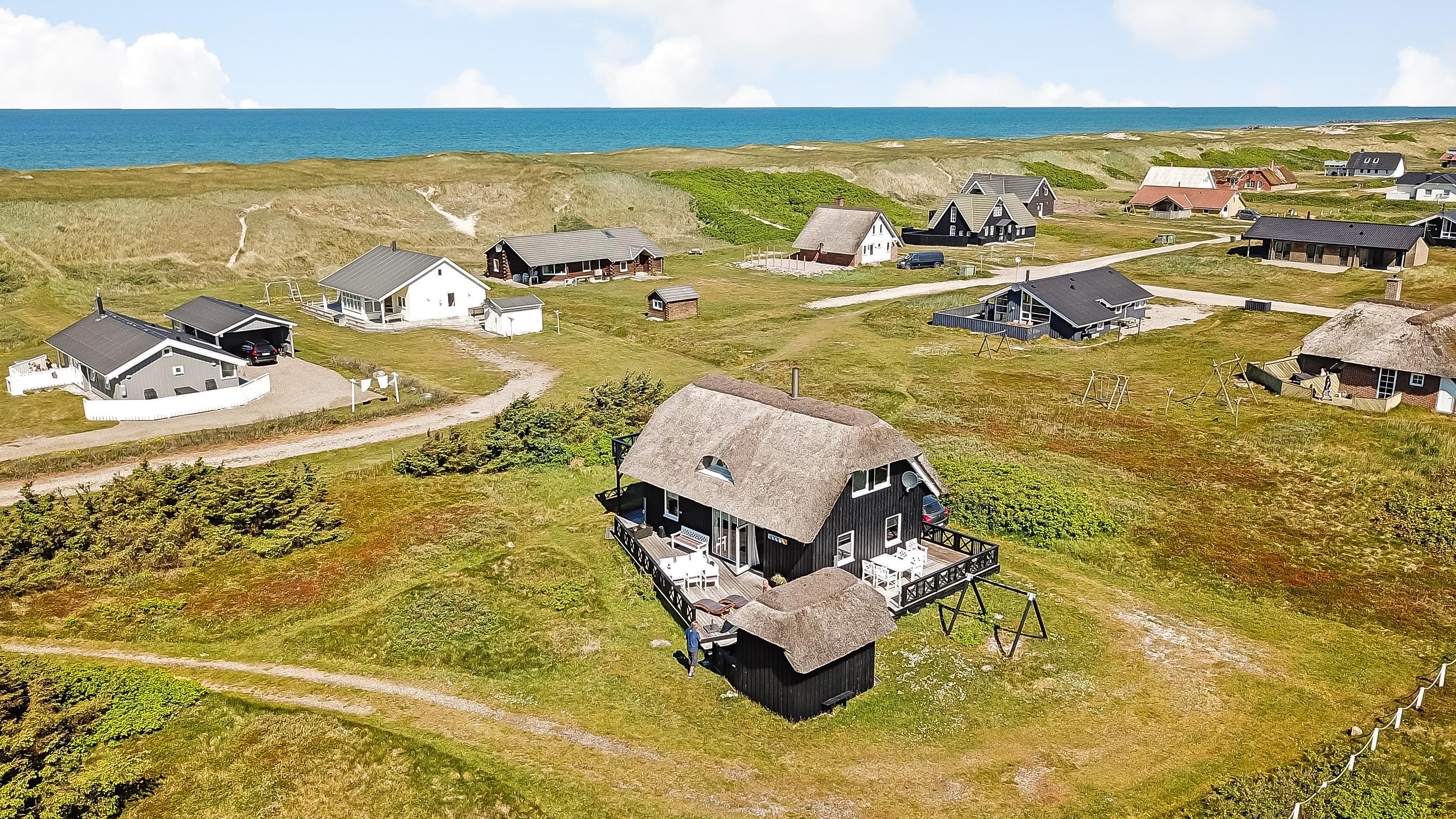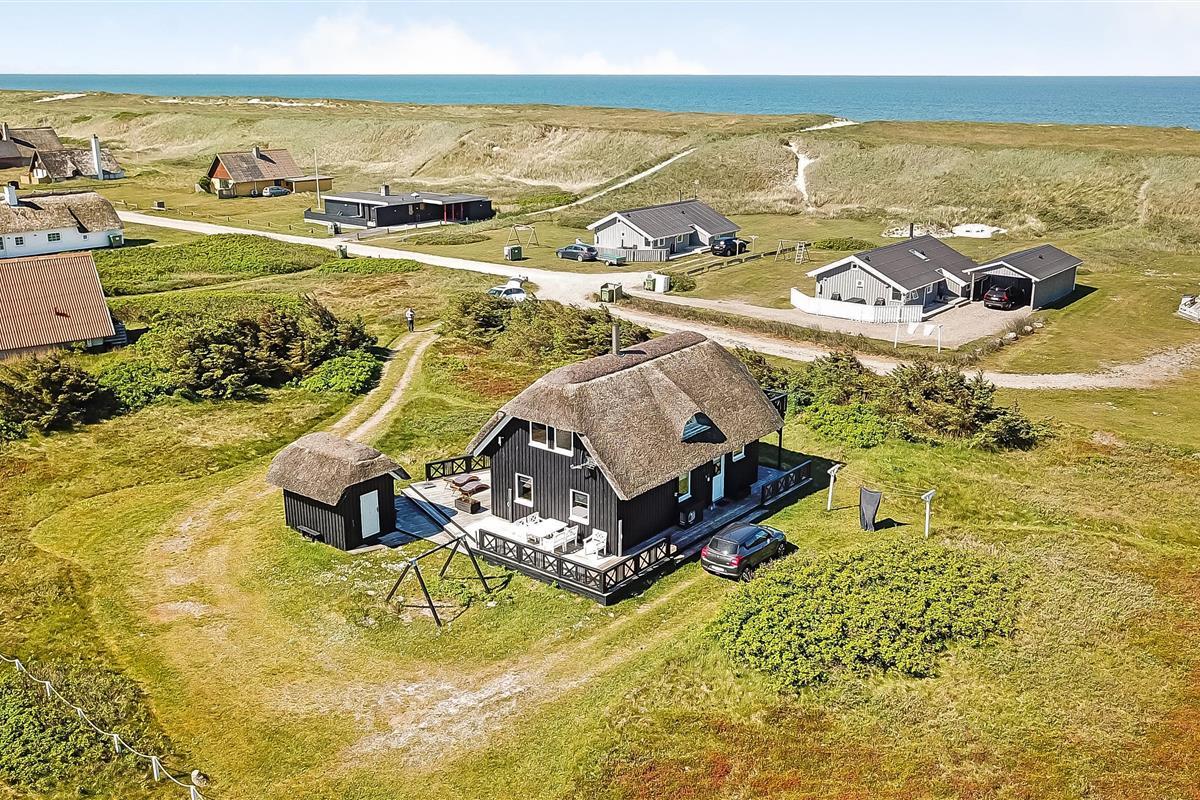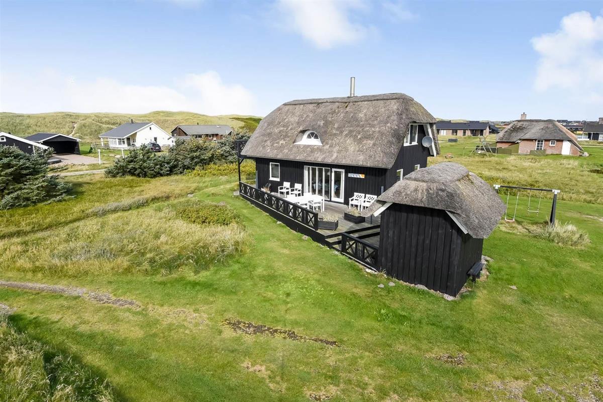 Das Ferienhaus liegt auf einem 2.616 m² grossen Dünengrundstück bloss 100 m von der Nordsee entfernt. Schöne romatische Terrasseanlage mit Gartenmöbeln, Sonnenliegen und Grill. Geniessen Sie die einmalige Möglichkeit die Sonne zu geniessen, oder miteinander einen gemütlichen Grillabend. Machen Sie einen Spaziergang mit dem Hund in der ruhigen Ferienhausgegend über die hohen Dünen und unmittelbar danach offenbart sich die Nordsee. Jeden Tag bietet die Nordsee neue malerische Erlebnisse, die zu einem flotten Spaziergang oder Joggen einladen. Oder wie wäre es mit einer kleinen Reise von rd. 10 - 15 Minuten bis zum kleinen Lebensmittelgeschäft der Gegend, das während der Saison geöffnet ist und ein frisches Frühstück bietet und in dem auch täglich eingekauft werden kann. Egal, ob Sie im aktiven Urlaub sind oder sich total entspannen, dieses schöne Ferienhaus bietet den perfekten Rahmen in Bezug auf Haus, Lage und Umgebung. Innerhalb einer kurzen Autofahrt erreichen Sie sowohl die aktive Handelsstadt Lemvig mit mehreren Fachgeschäften als auch das einzigartige Fischerdorf Thyborøn, das neben dem aktiven Fischerhafen auch einen Strand und verschiedene Aktivitäten bietet, die alle einen Besuch wert sind.