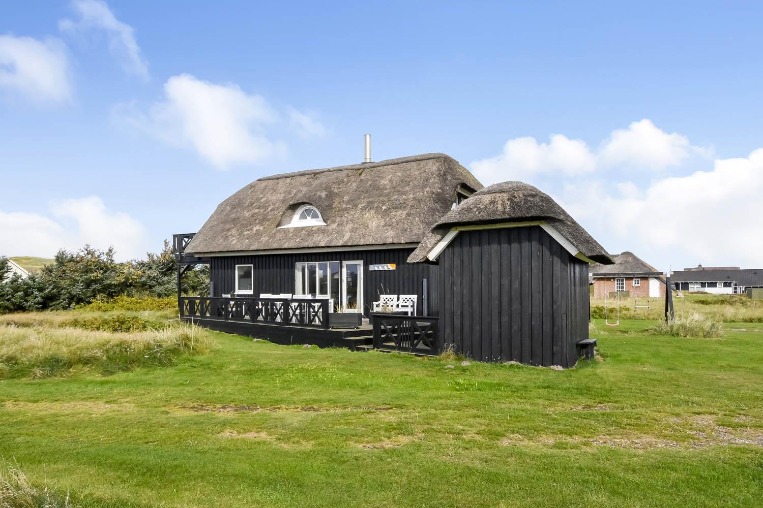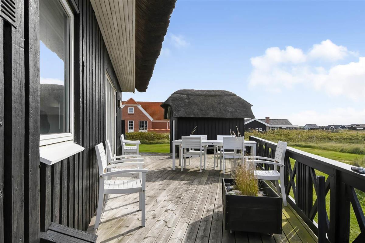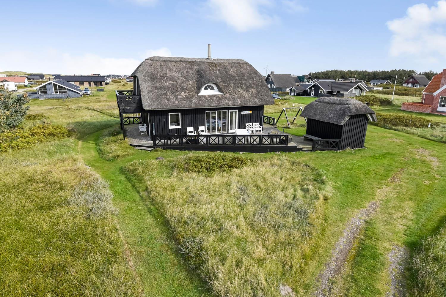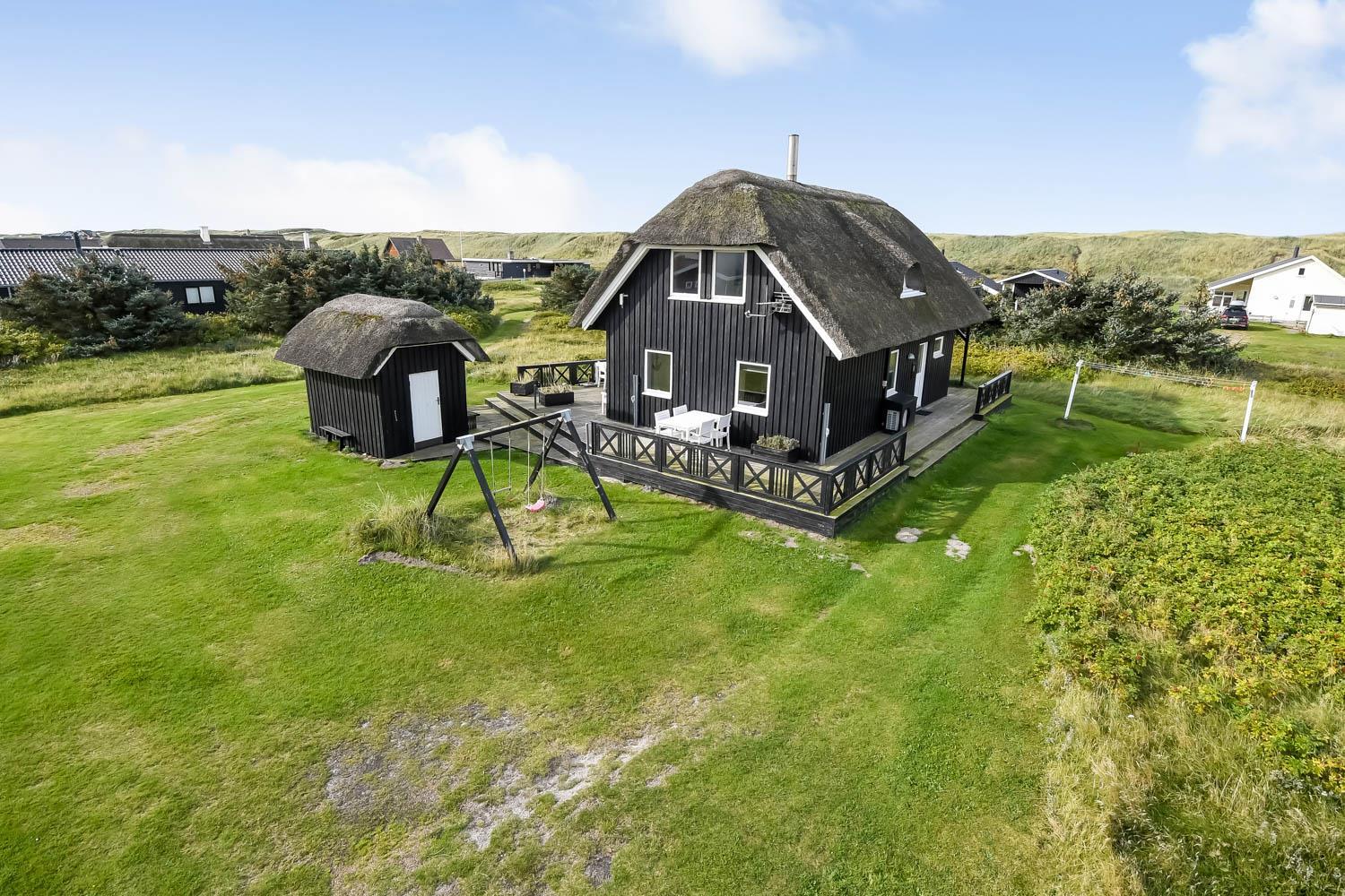 Das Ferienhaus liegt auf einem 2.616 m² grossen Dünengrundstück bloss 100 m von der Nordsee entfernt. Schöne romatische Terrasseanlage mit Gartenmöbeln, Sonnenliegen und Grill. Geniessen Sie die einmalige Möglichkeit die Sonne zu geniessen, oder miteinander einen gemütlichen Grillabend. Machen Sie einen Spaziergang mit dem Hund in der ruhigen Ferienhausgegend über die hohen Dünen und unmittelbar danach offenbart sich die Nordsee. Jeden Tag bietet die Nordsee neue malerische Erlebnisse, die zu einem flotten Spaziergang oder Joggen einladen. Oder wie wäre es mit einer kleinen Reise von rd. 10 - 15 Minuten bis zum kleinen Lebensmittelgeschäft der Gegend, das während der Saison geöffnet ist und ein frisches Frühstück bietet und in dem auch täglich eingekauft werden kann. Egal, ob Sie im aktiven Urlaub sind oder sich total entspannen, dieses schöne Ferienhaus bietet den perfekten Rahmen in Bezug auf Haus, Lage und Umgebung. Innerhalb einer kurzen Autofahrt erreichen Sie sowohl die aktive Handelsstadt Lemvig mit mehreren Fachgeschäften als auch das einzigartige Fischerdorf Thyborøn, das neben dem aktiven Fischerhafen auch einen Strand und verschiedene Aktivitäten bietet, die alle einen Besuch wert sind.