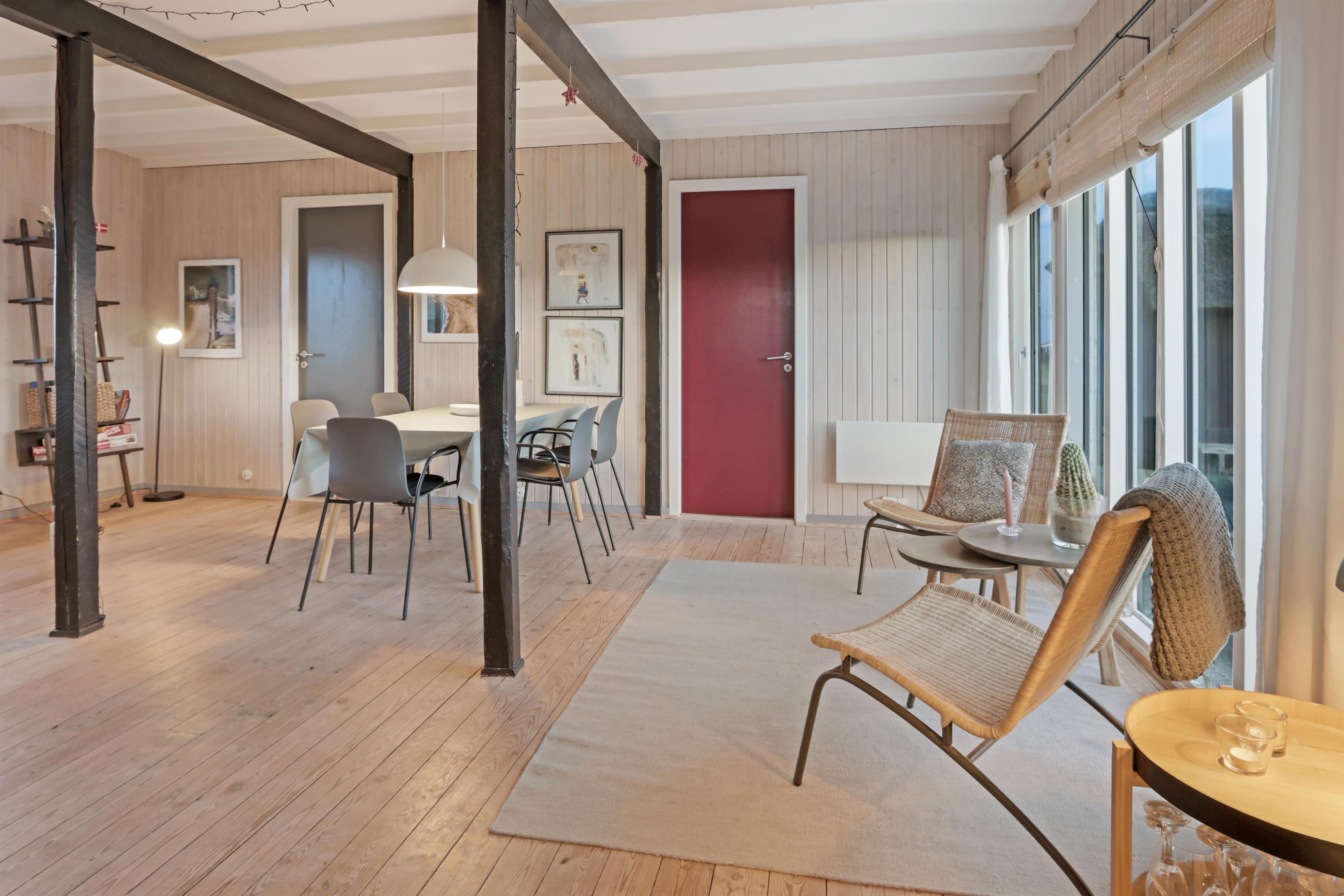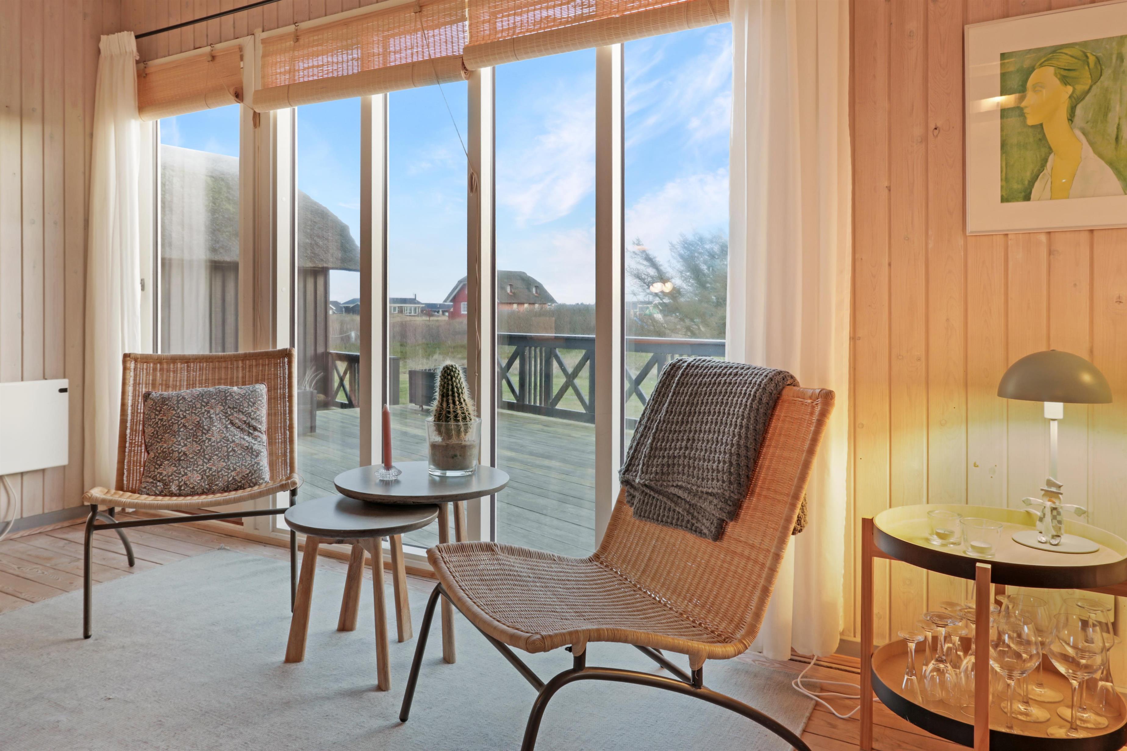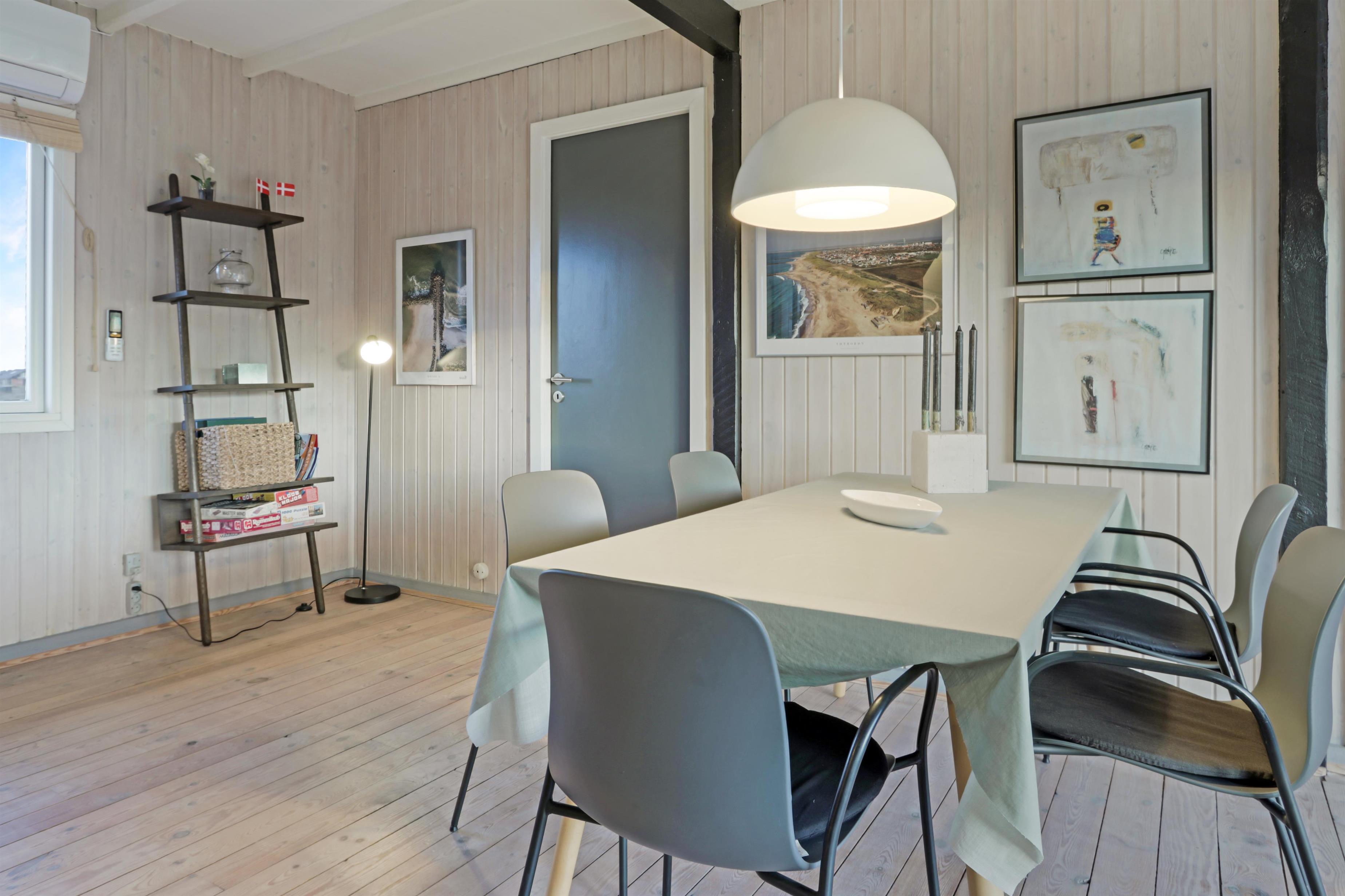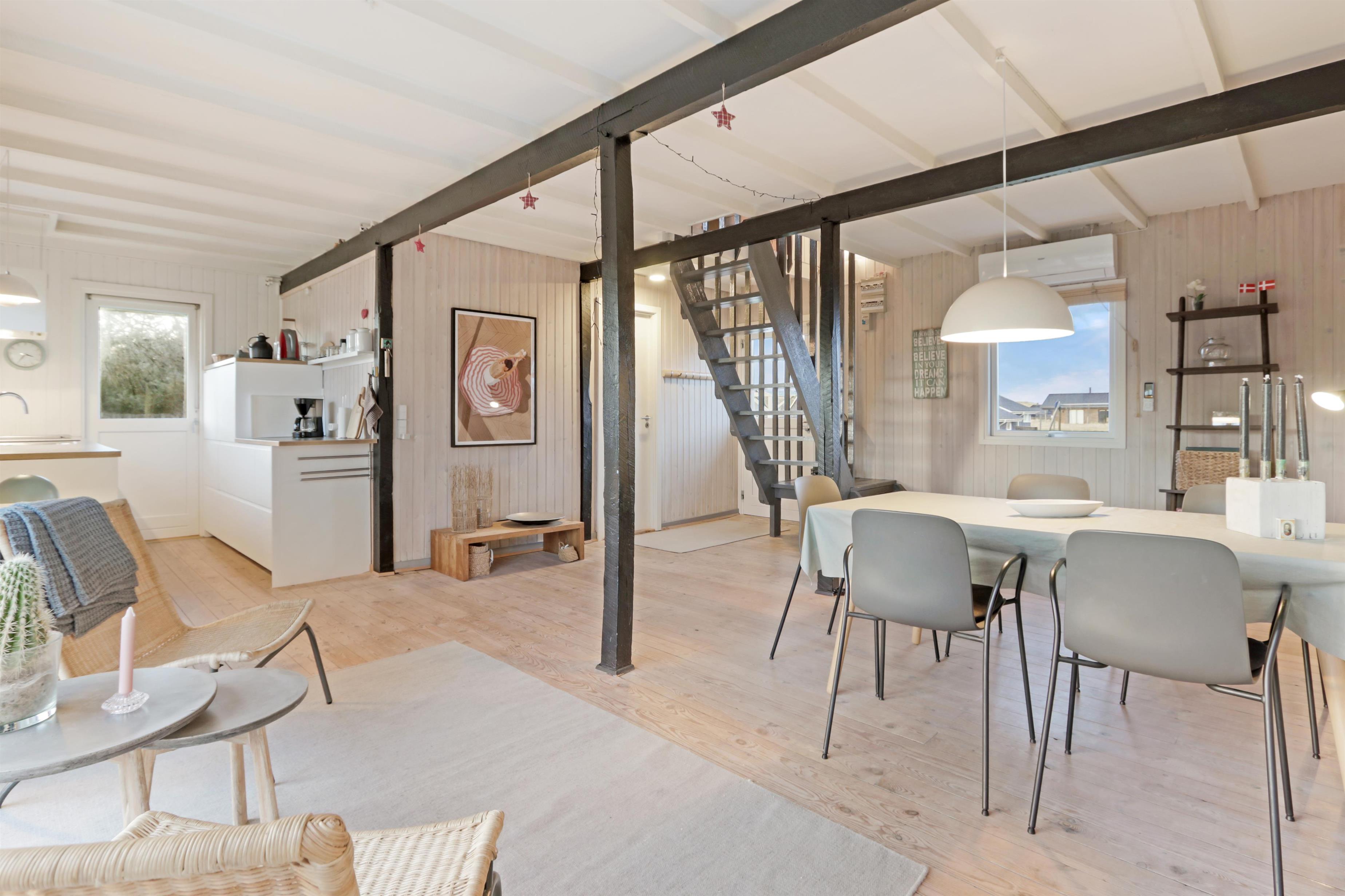 Das Ferienhaus liegt auf einem 2.616 m² grossen Dünengrundstück bloss 100 m von der Nordsee entfernt. Schöne romatische Terrasseanlage mit Gartenmöbeln, Sonnenliegen und Grill. Geniessen Sie die einmalige Möglichkeit die Sonne zu geniessen, oder miteinander einen gemütlichen Grillabend. Machen Sie einen Spaziergang mit dem Hund in der ruhigen Ferienhausgegend über die hohen Dünen und unmittelbar danach offenbart sich die Nordsee. Jeden Tag bietet die Nordsee neue malerische Erlebnisse, die zu einem flotten Spaziergang oder Joggen einladen. Oder wie wäre es mit einer kleinen Reise von rd. 10 - 15 Minuten bis zum kleinen Lebensmittelgeschäft der Gegend, das während der Saison geöffnet ist und ein frisches Frühstück bietet und in dem auch täglich eingekauft werden kann. Egal, ob Sie im aktiven Urlaub sind oder sich total entspannen, dieses schöne Ferienhaus bietet den perfekten Rahmen in Bezug auf Haus, Lage und Umgebung. Innerhalb einer kurzen Autofahrt erreichen Sie sowohl die aktive Handelsstadt Lemvig mit mehreren Fachgeschäften als auch das einzigartige Fischerdorf Thyborøn, das neben dem aktiven Fischerhafen auch einen Strand und verschiedene Aktivitäten bietet, die alle einen Besuch wert sind.