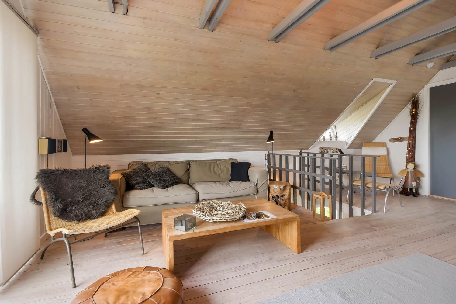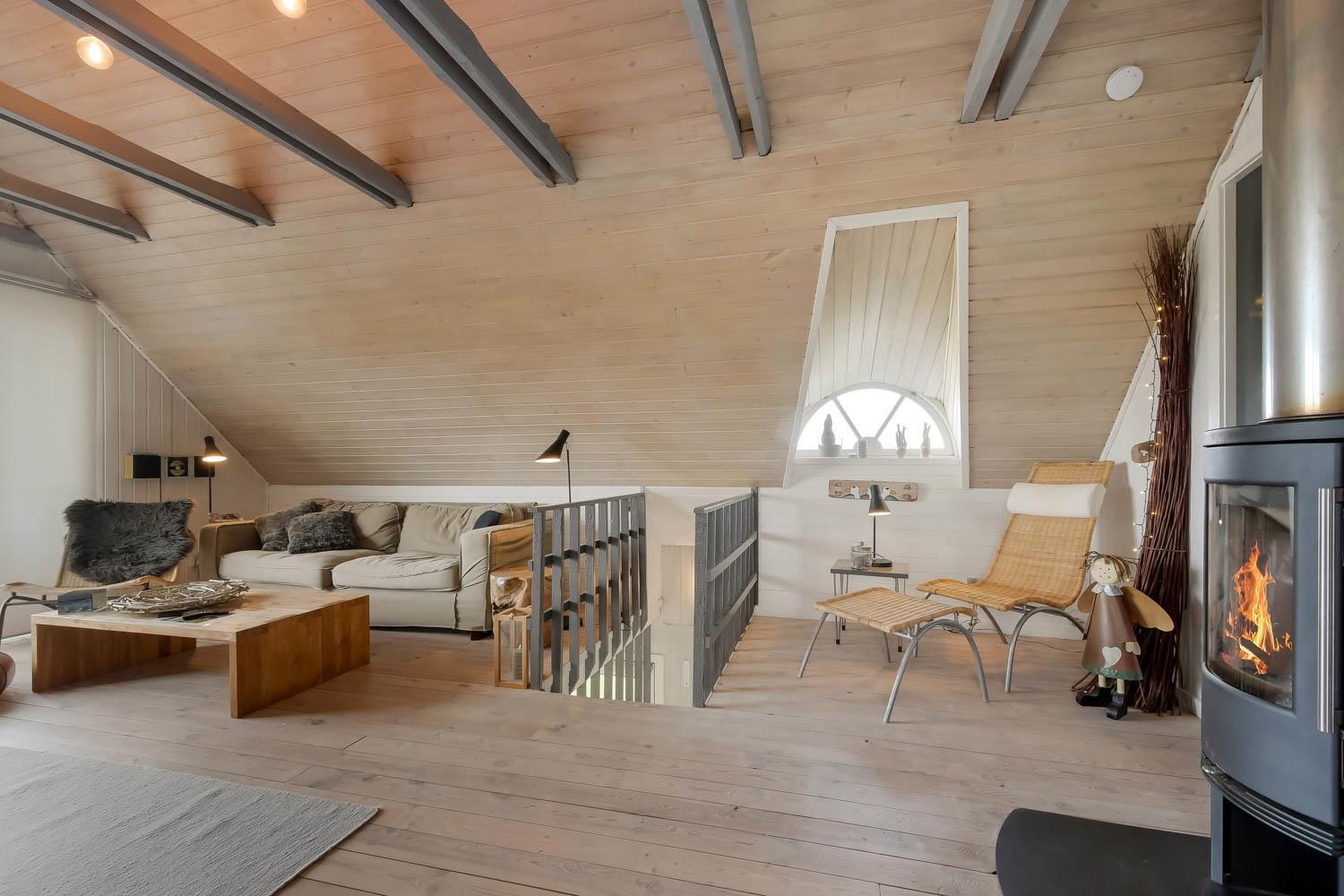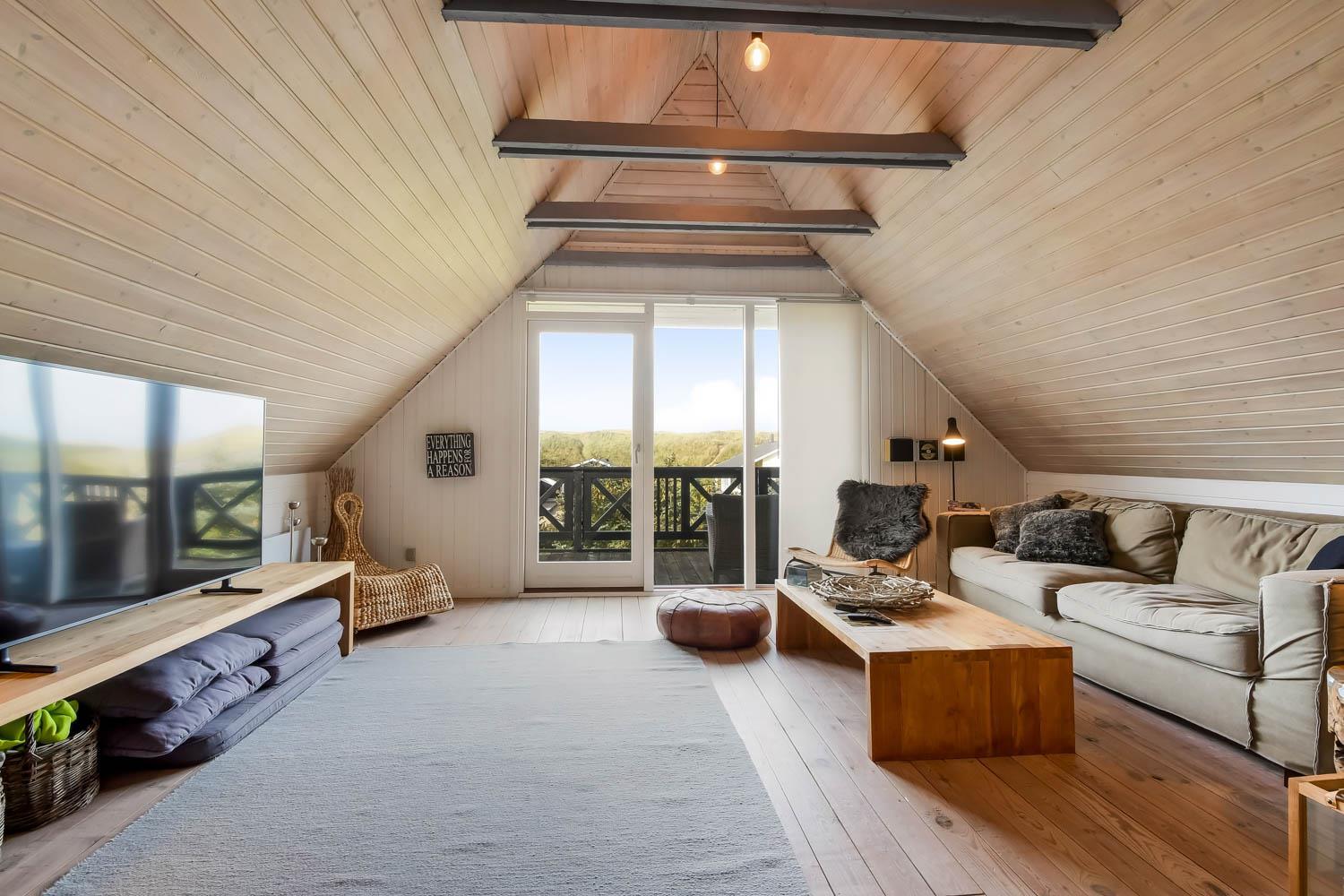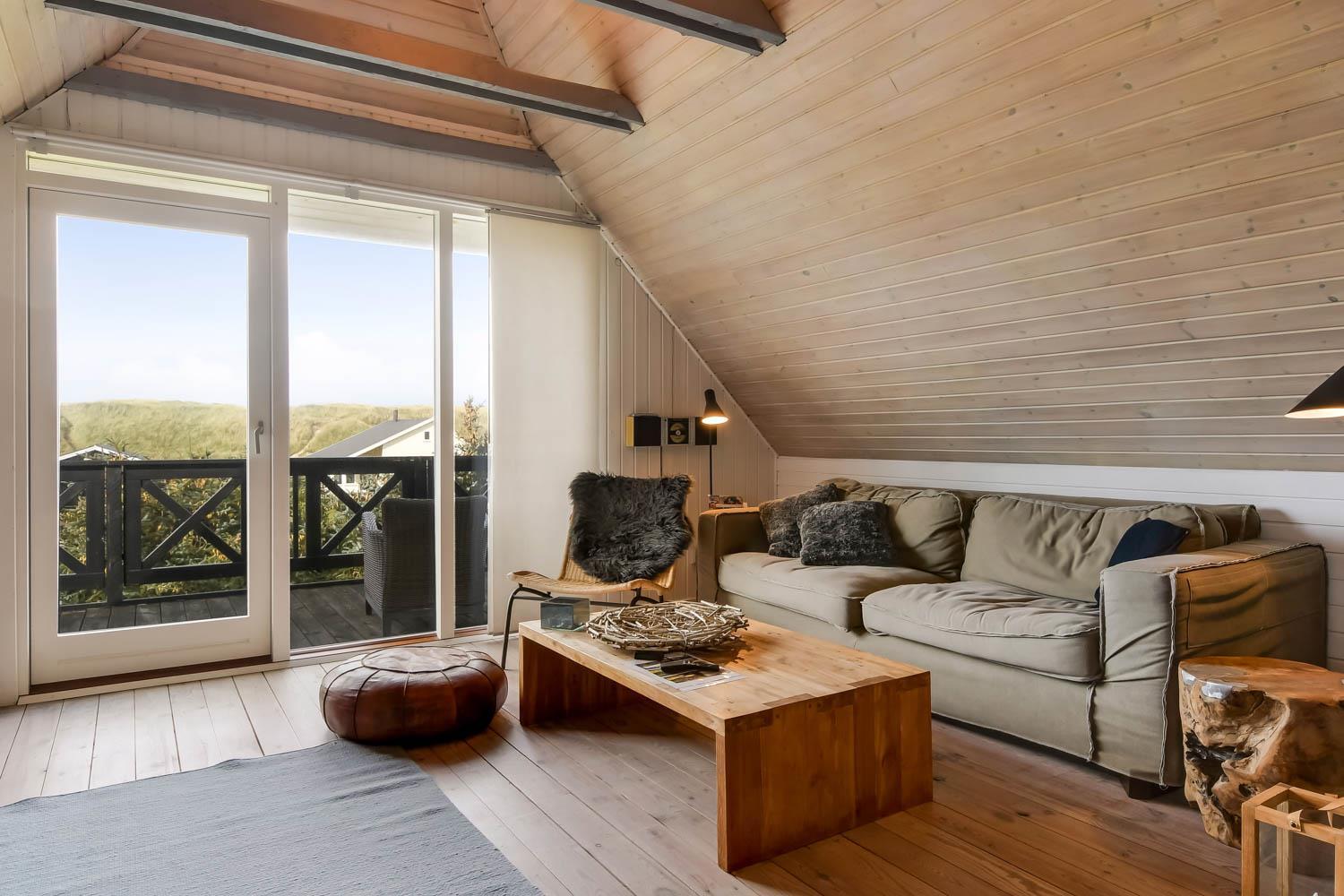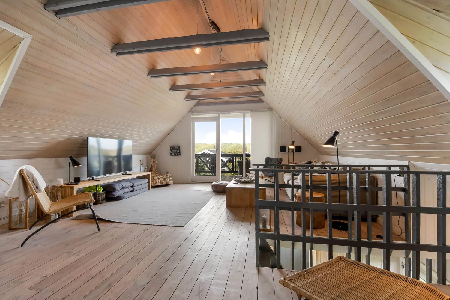 Im Wohnraum kommen Sie über die Treppe zum 1. Stock. Hier gibt es noch einen Wohnraum. Von dem 55” Smart-TV können Sie dänische Programme 1 und TV 2 und viele ausländische und deutsche Programme sehen. Ausserdem haben Sie die Möglichkeit Ihr eigenes Programm zu streamen von Ihrem Handy oder Laptop. Geniessen Sie die Flammen in dem gemütlichen Kaminofen, der zusammen mit der Wärmepumpe im Parterre für einen minimalen Verbrauch für die Wärme sorgt. Ausgang vom Balkon mit einmaligem Blick zur Nordsee. Im 1. Stock gibt es auch 2 von den schönen Schlafräumen: 1DB + 1DB. Es gibt praktische Holzböden in allen Räumen und das Haus ist sehr pflegeleicht. Badezimmer mit Toilette, Dusche, Waschbecken, Waschmaschine und Fliesenboden mit Fussbodenheizung. Max. 2 Haustiere ist erlaubt. Nichtraucher-Haus.