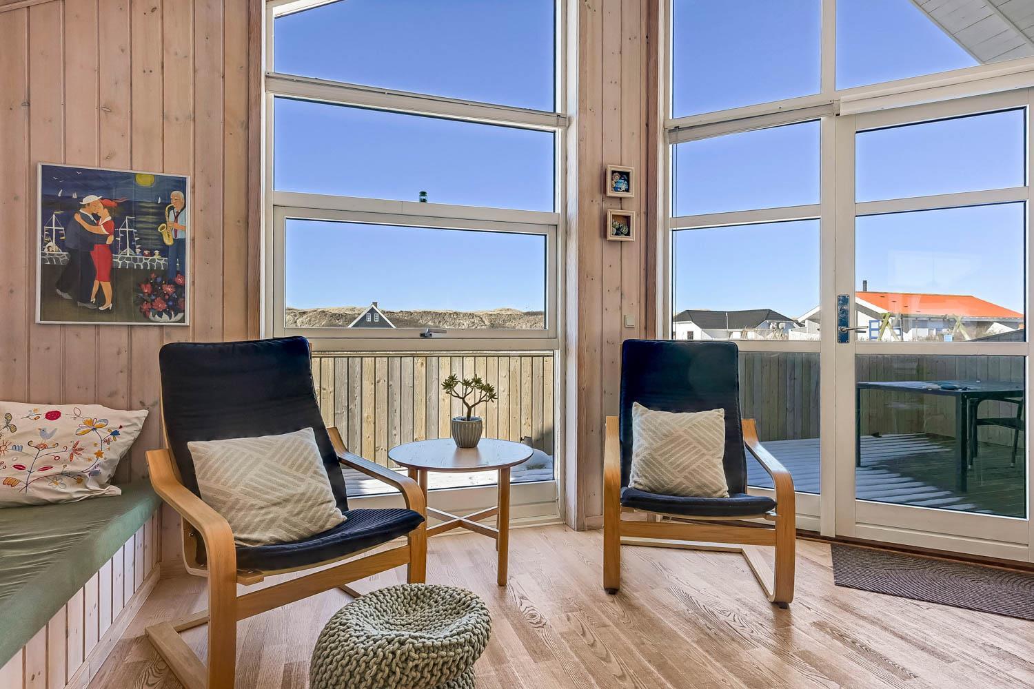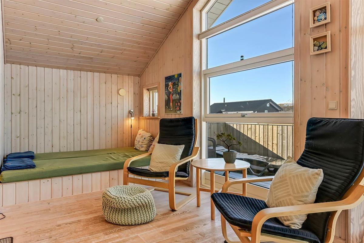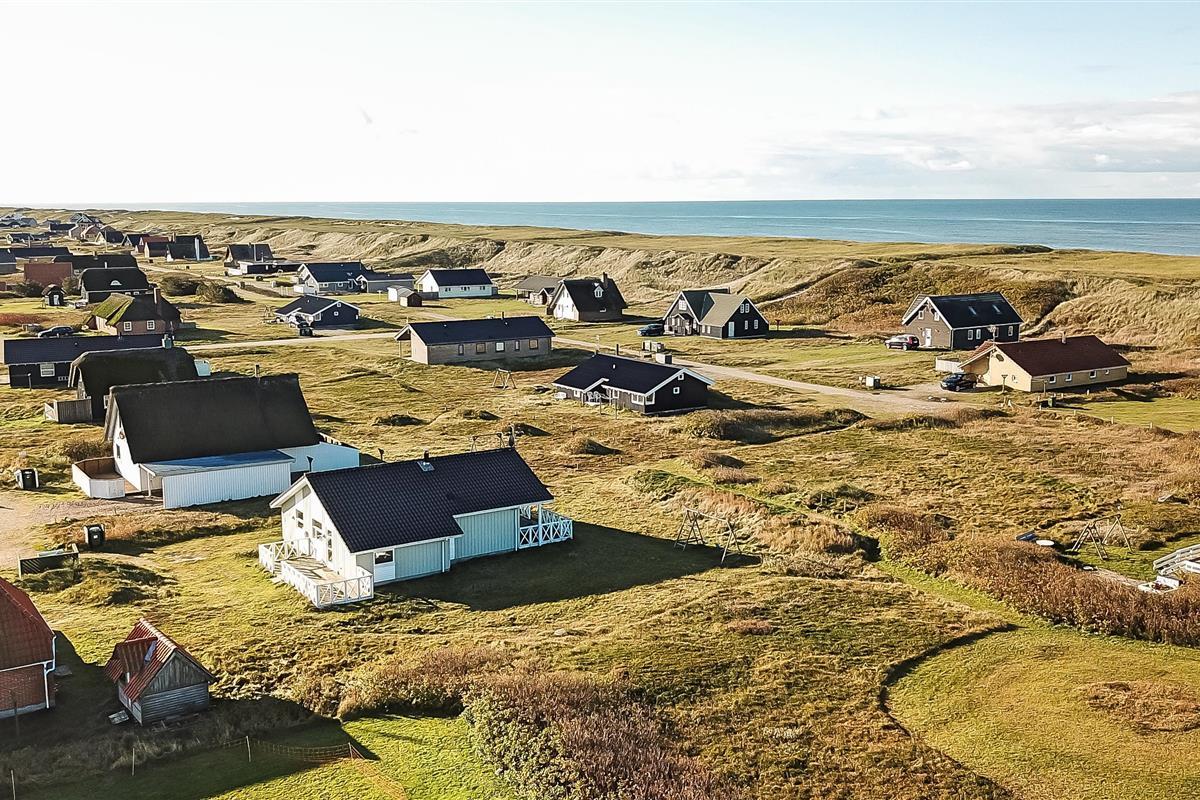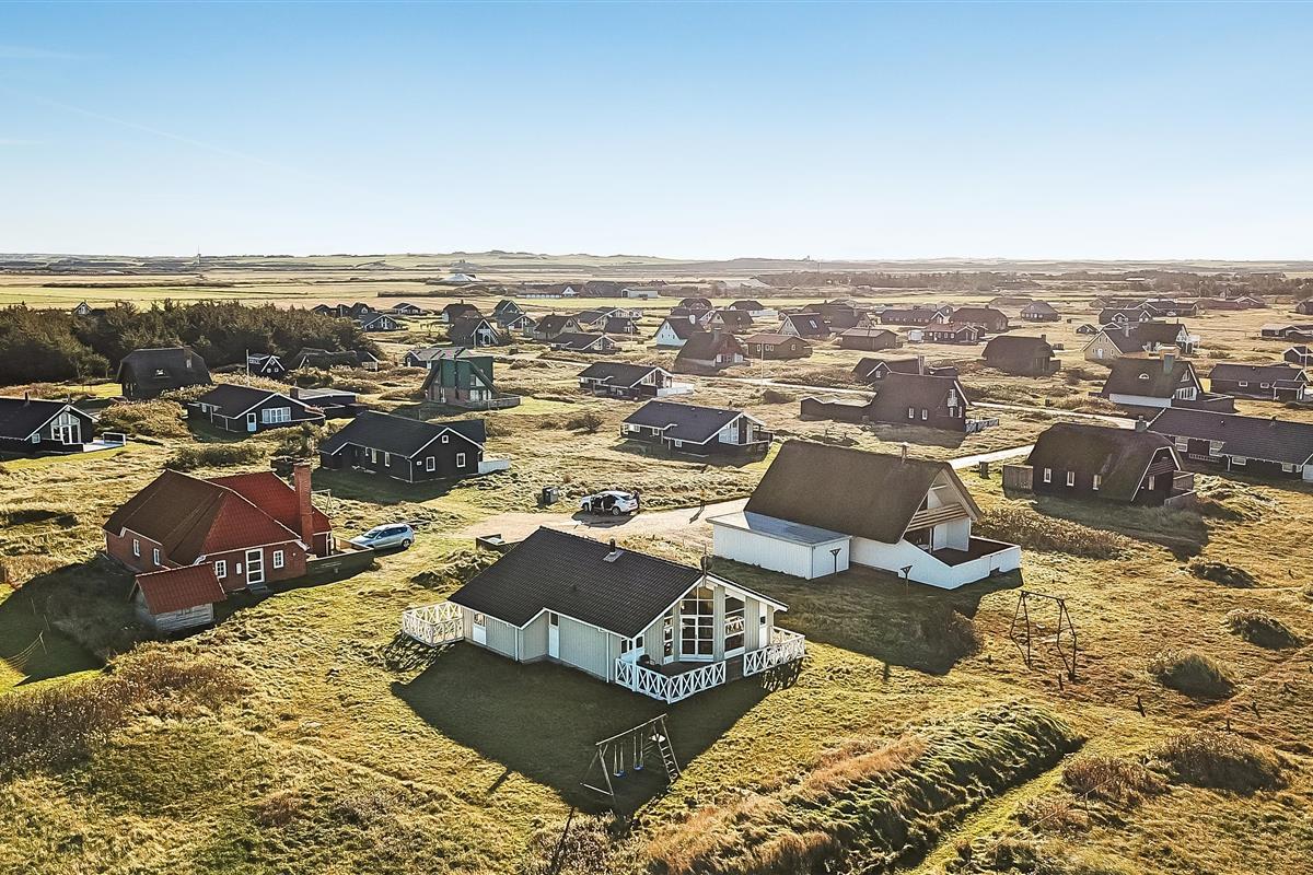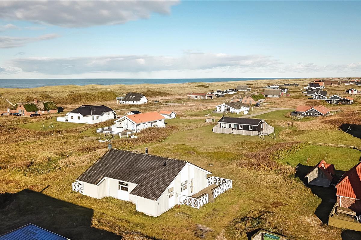 Das Haus liegt auf einem Naturgrundstück dicht an der Nordsee; es gibt 2 Terrassen, eine kleine Morgenterrasse Richtung Osten und eine teilweise überdachte Terrasse Richtung Westen. Es gibt Gartenmöbel, Sonnenliegen und Grill. Die Hausumgebung bietet sich für Wander- und Fahrradtouren an; es gibt mehrere gute Fahrradwege im Gebiet. Das Haus ist bloß 100 m vom Strand entfernt und so ist es einfach, an den Strand zu kommen, um die Nordsee zu genießen. Im Gebiet gibt es auch das Fischerdorf Thyborøn und die Handelsstadt Lemvig. Beide Orte bieten gute Einkaufsmöglichkeiten, Restaurants und Sehenswürdigkeiten an.