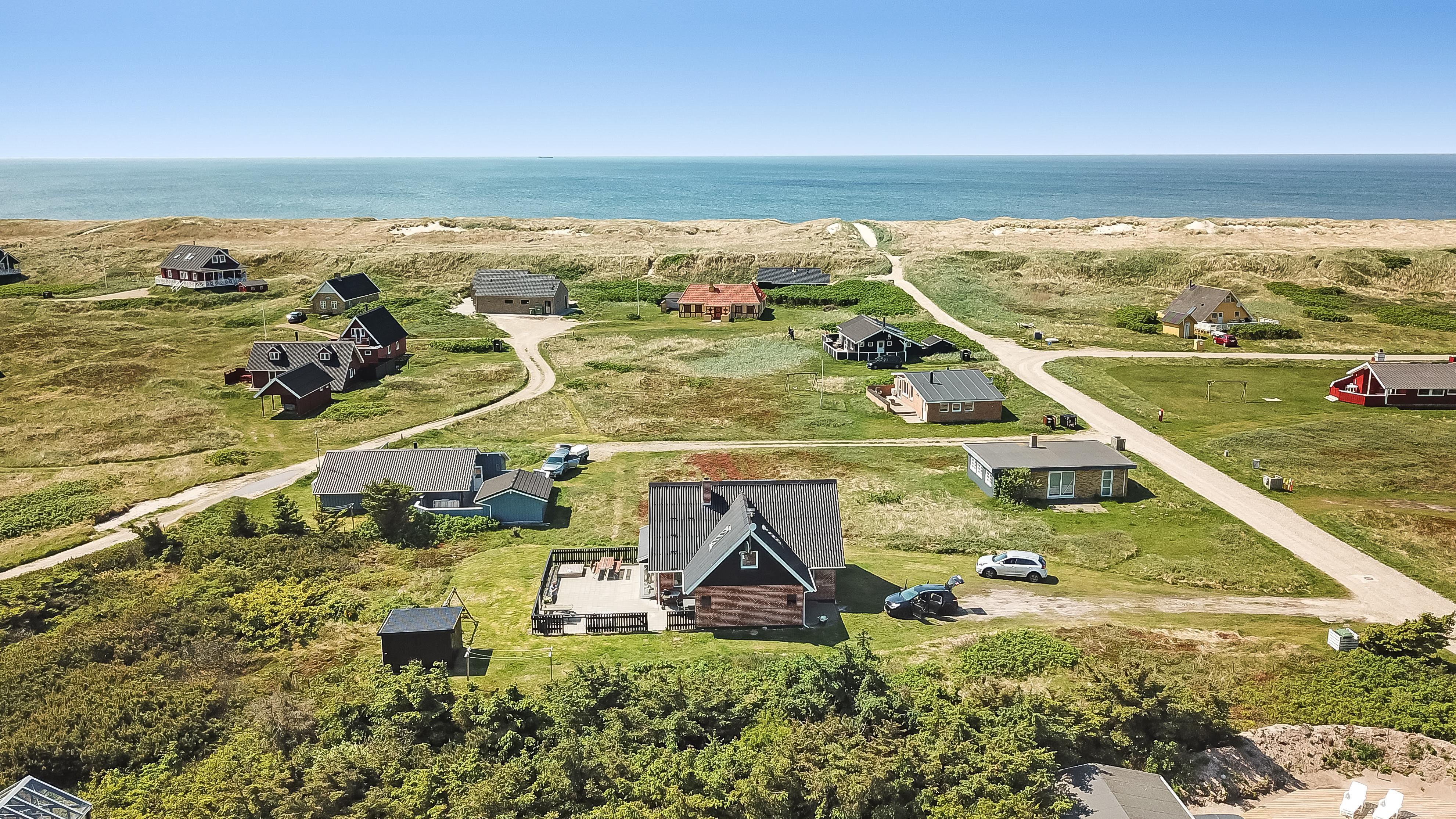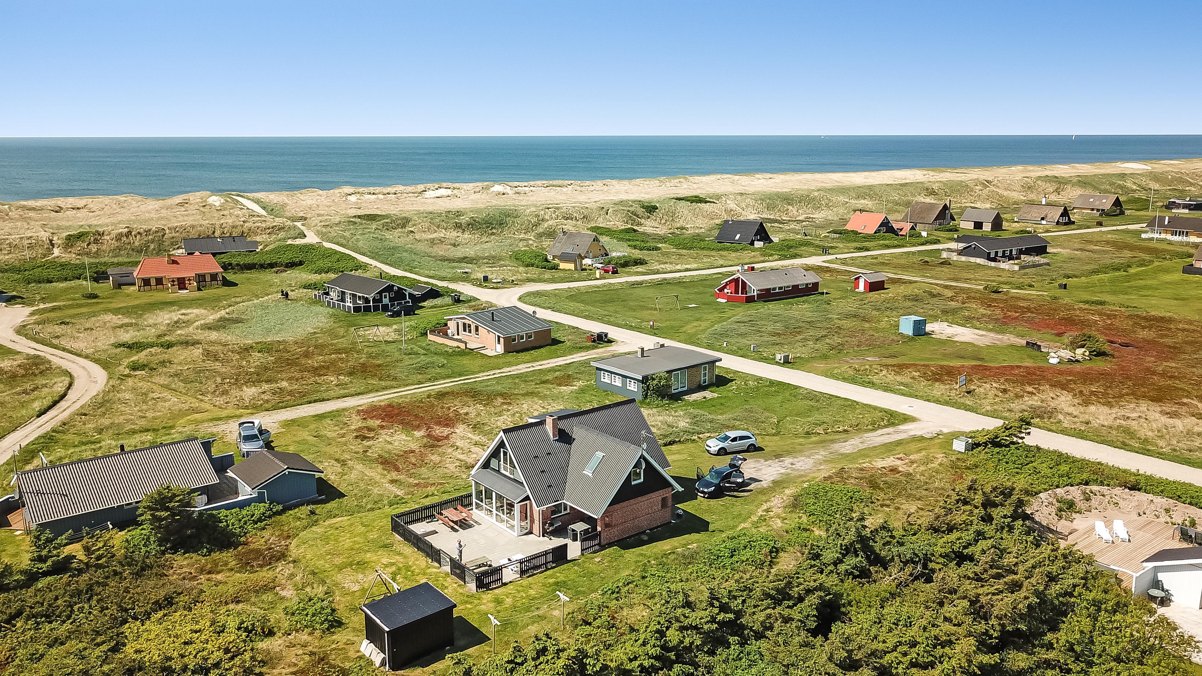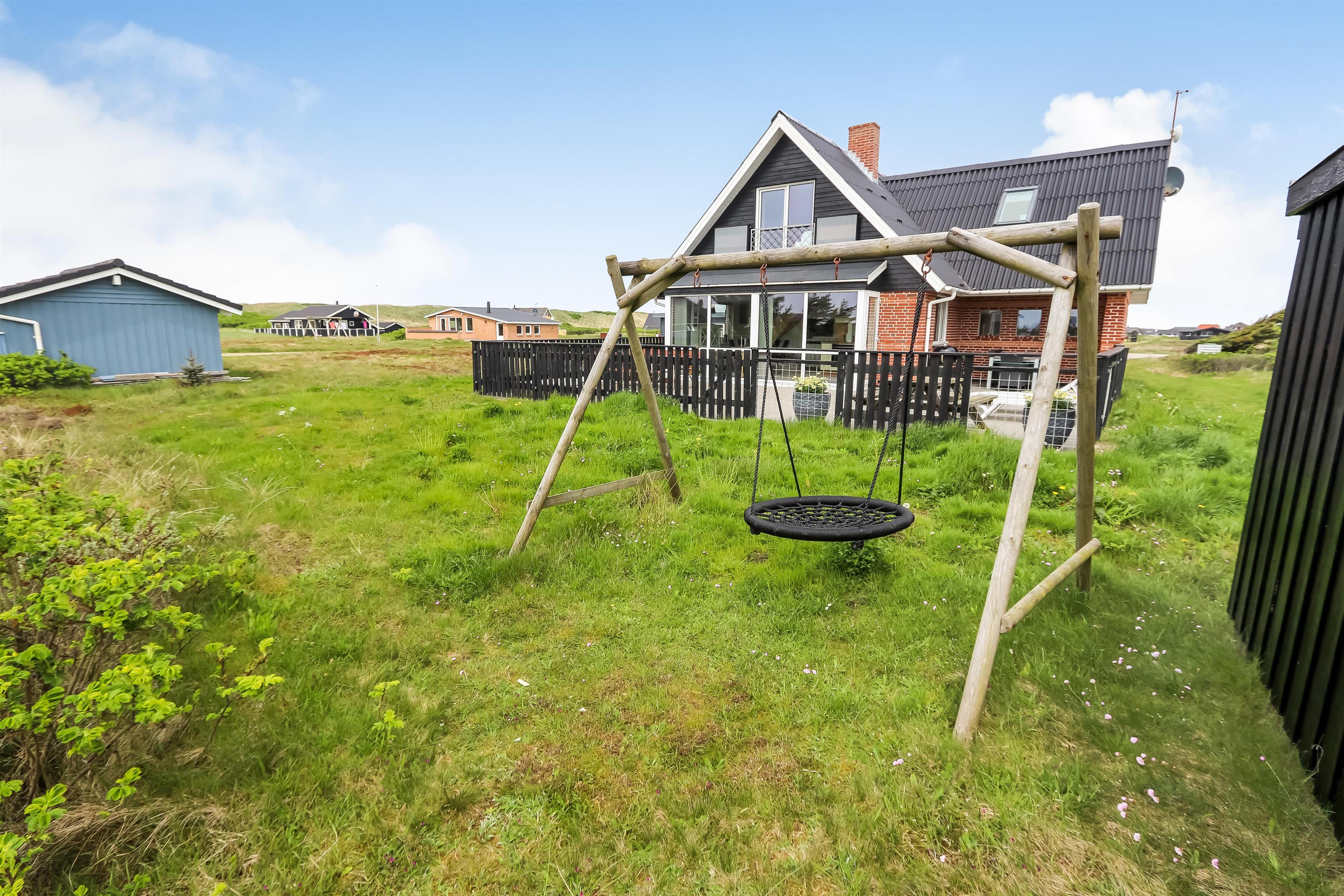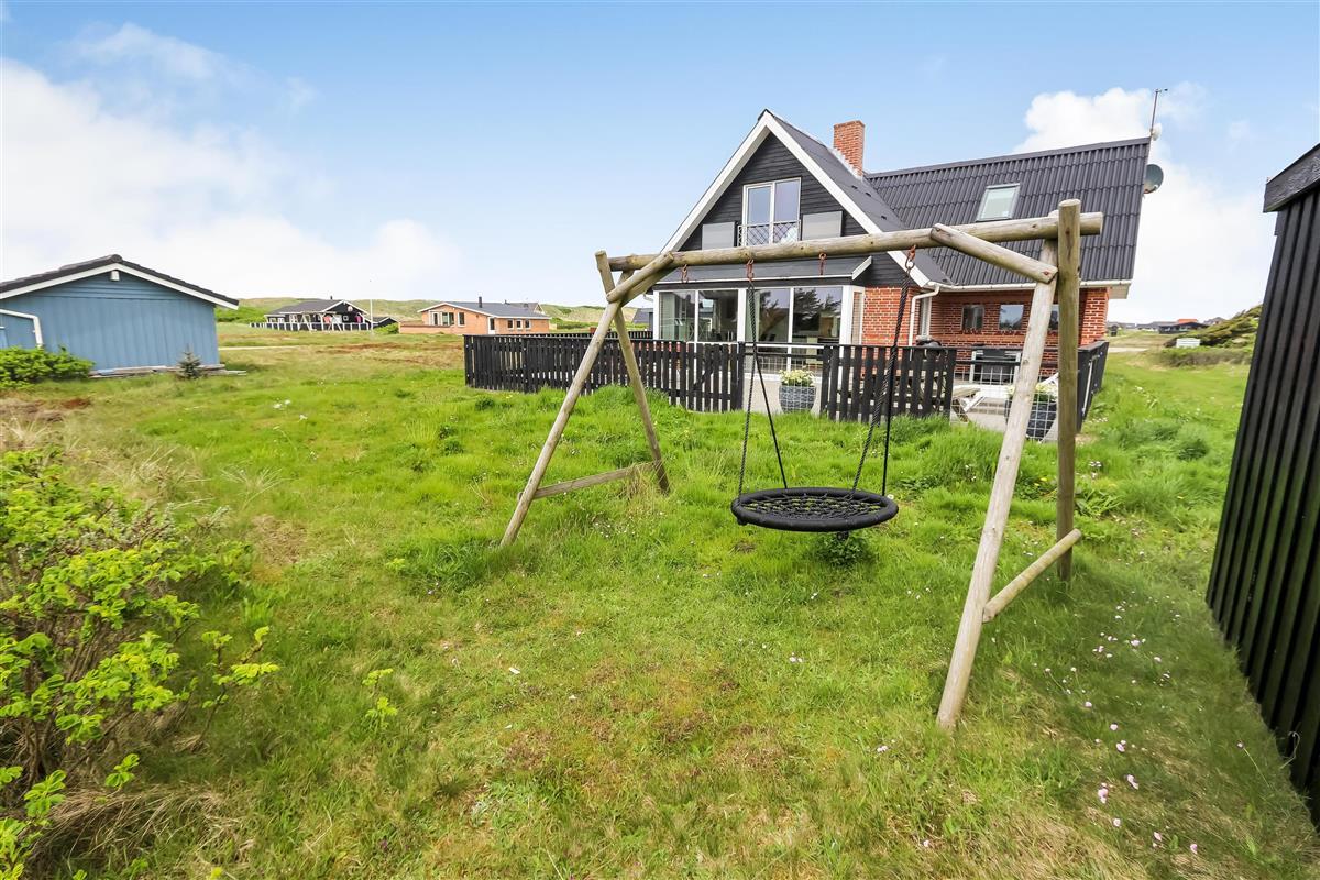 Dieses schöne Ferienhaus liegt auf einem Naturgrundstück in schöner Umgebung mit schöner Aussicht auf die Umgebung und die Dünen. Zur rauschenden Nordsee sind es nur 150 m, die viele schöne Erlebnisse bietet. Gute, umzäunte Terrasse mit Gartenmöbeln und Gasgrill. Ideal, wenn Tiere oder Kinder mitgebracht werden. Für die kleinen Gäste gibt es auf der Terrasse eine Schaukel mit Sinnesschaukel und einen Sandkasten. Wenn Sie im Urlaub etwas anderes als Strand und Wasser erleben möchten, können Sie einen Ausflug nach Lemvig machen, es ist nur 15 Autominuten vom Haus entfernt, hier finden Sie eine schöne Hafenpromenade und eine Fußgängerzone mit guten Einkaufsmöglichkeiten. Am Hafen von Lemvig gibt es eine kostenlose Skaterbahn und einen Spielplatz.