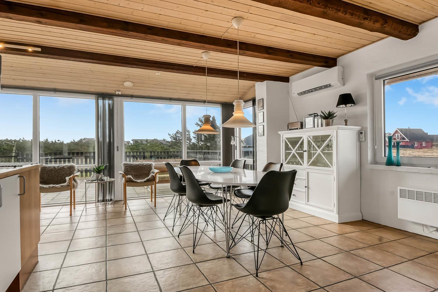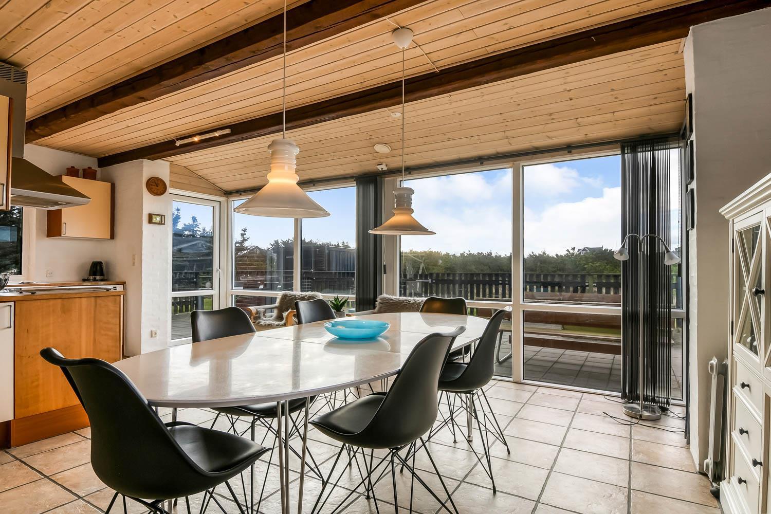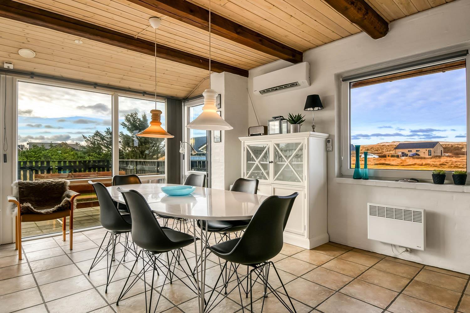 Dieses schöne Ferienhaus liegt auf einem Naturgrundstück in schöner Umgebung mit schöner Aussicht auf die Umgebung und die Dünen. Zur rauschenden Nordsee sind es nur 150 m, die viele schöne Erlebnisse bietet. Gute, umzäunte Terrasse mit Gartenmöbeln und Gasgrill. Ideal, wenn Tiere oder Kinder mitgebracht werden. Für die kleinen Gäste gibt es auf der Terrasse eine Schaukel mit Sinnesschaukel und einen Sandkasten. Wenn Sie im Urlaub etwas anderes als Strand und Wasser erleben möchten, können Sie einen Ausflug nach Lemvig machen, es ist nur 15 Autominuten vom Haus entfernt, hier finden Sie eine schöne Hafenpromenade und eine Fußgängerzone mit guten Einkaufsmöglichkeiten. Am Hafen von Lemvig gibt es eine kostenlose Skaterbahn und einen Spielplatz.