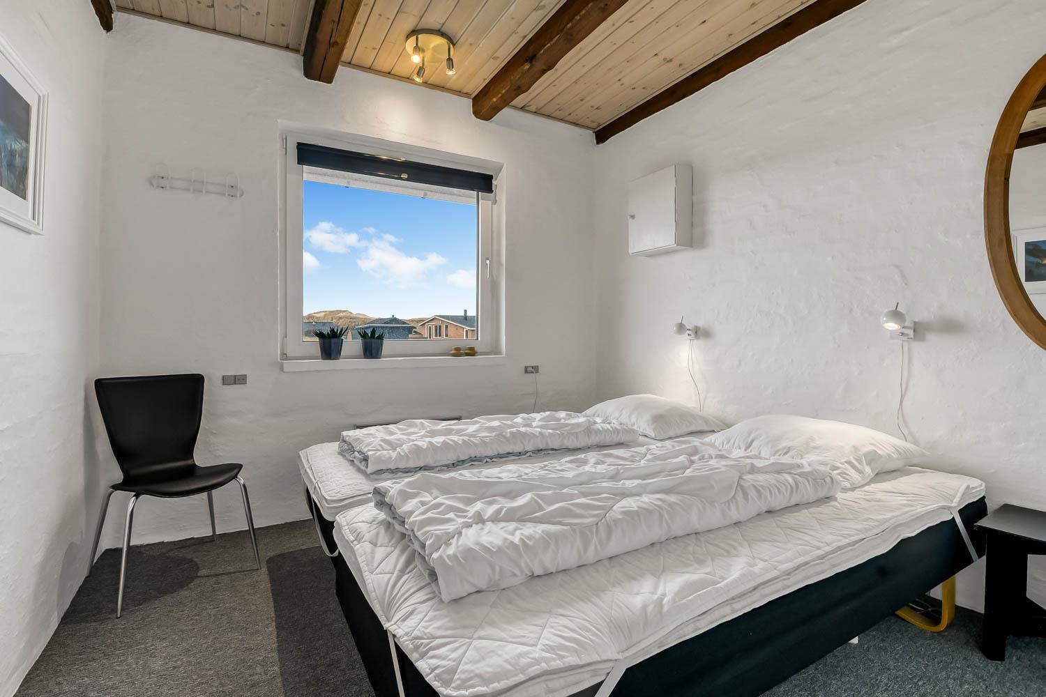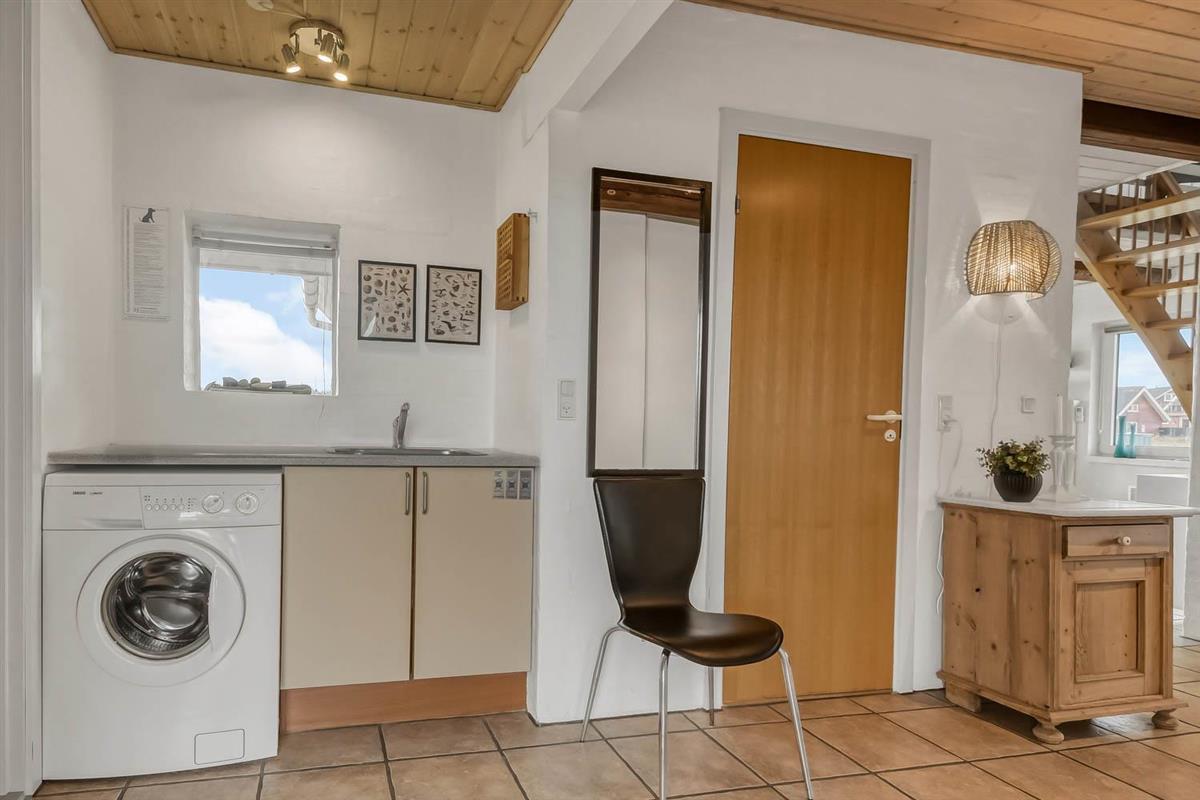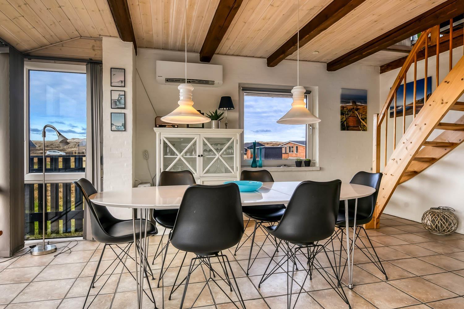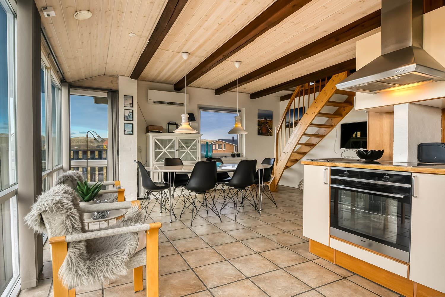 Über die Treppe am Ende des Wohnzimmers gelangt man in die 1. Etage. Hier ist ein schönes großes Wohnzimmer mit einem fantastischen Canapé mit Blick auf die Dünen an der Nordsee und über die Landschaft. Genießen Sie die schönen Möbel im Dachgeschoss zusammen mit dem Blick auf einen wunderschönen Sonnenuntergang. Es ist außerdem mit neuen modernen Ledermöbeln, kleinem Holzofen, Wärmepumpe, Flatscreen-TV mit dänischen und deutschen Sendern und einem Chromecast ausgestattet. Es gibt auch einen Aktivitätsbereich mit Billardtisch und Sofagruppe für Brettspiele. Zu guter Letzt gibt ist es ein schönes großes Schlafzimmer (1DB + 1B) und einen Schreibtisch mit Computerbildschirm (HDMI), wenn Hausaufgaben gemacht werden müssen.