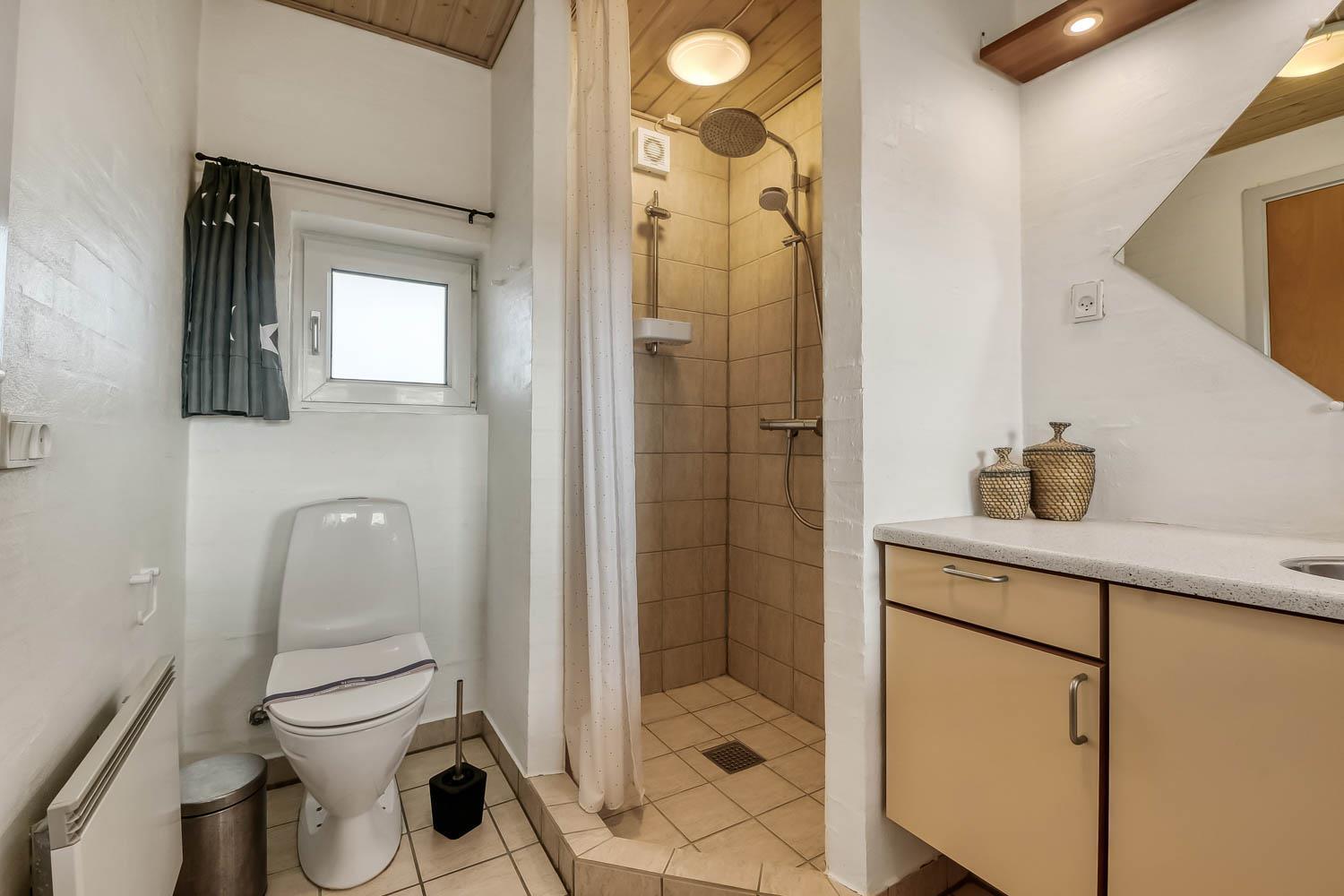 158 m2 groß, geräumig und wunderschön eingerichtet. Die kombinierte Küche / Esszimmer mit großen Fenstern spenden ein schönes Licht; hier finden Sie auch den schönen Holzofen des Hauses, der für eine gemütliche Wärme sorgt. Es gibt hier auch einen zusätzlichen Fernseher, damit Sie die Nachrichten verfolgen oder im Internet streamen können (über Chromecast) beim Kochen etc. Es ist auch möglich, Ihre eigene Musik über das Telefon auf den eingerichteten Lautsprechern zu streamen. Die Küche ist mit Elektroherd, Kühl-/Gefrierschrank, Mikrowelle und Spülmaschine ausgestattet. Von der Küche/Wohnzimmer hat man Zugang zur großen umzäunten Terrasse des Hauses, die ganz privat von umliegenden Sträuchern geschützt liegt. Sie ist mit Sandkasten, Sonnenliegen, Gartenmöbeln und Grill ausgestattet. Die Terrasse hat auch einen überdachten Bereich. Im Erdgeschoss befindet sich ein großes Badezimmer mit Toilette, Waschbecken, Dusche und Fußbodenheizung, sowie ein zusätzliches Gäste-WC mit Waschbecken und Toilette. Im Erdgeschoss befinden sich auch 3 Schlafzimmer (1DB mit TV (mit Chromecast), 1DB, 2B). Großer Eingangsbereich mit Waschmaschine. Kinderbett und Hochstuhl für die Kleinen. Nichtraucher-Haus. 2 Haustiere sind erlaubt.