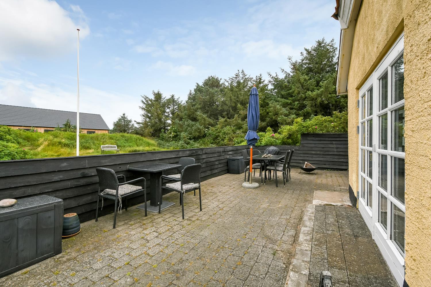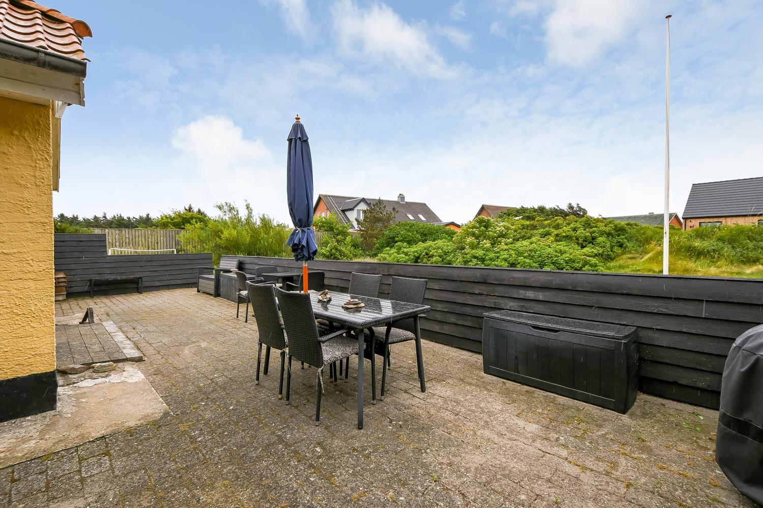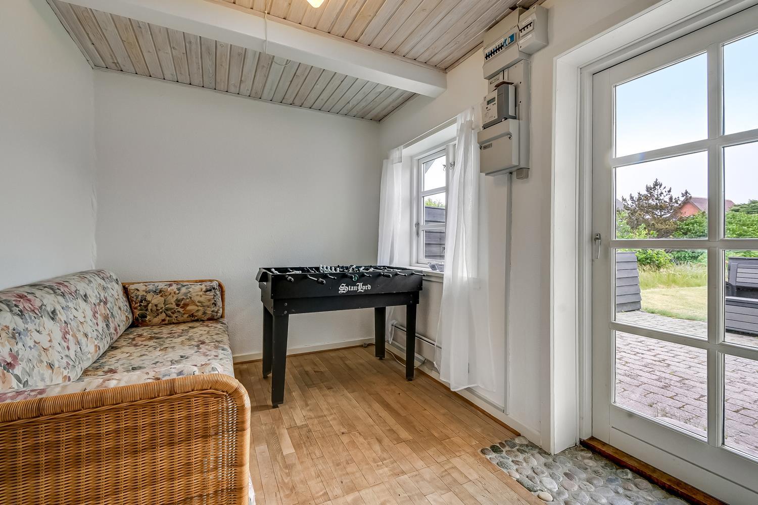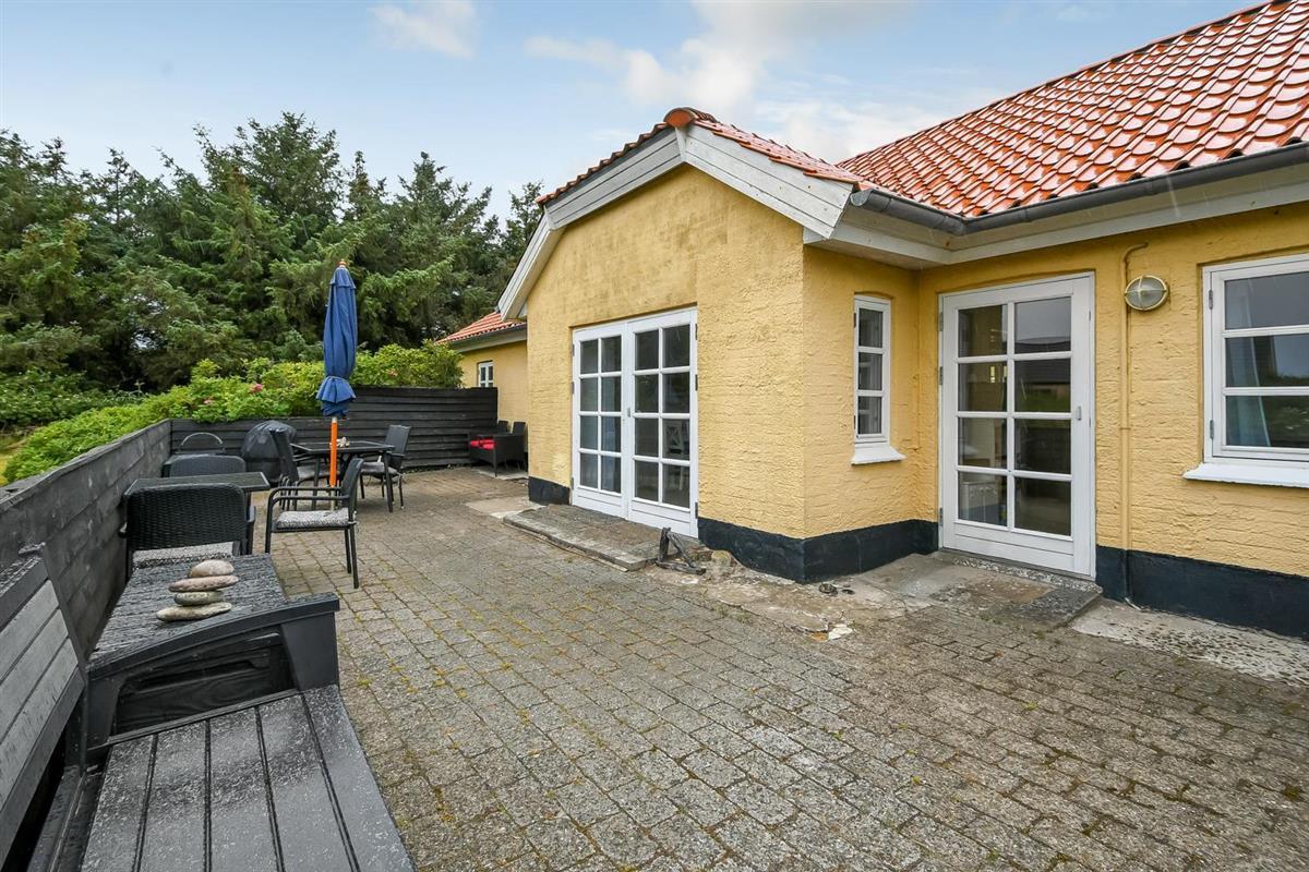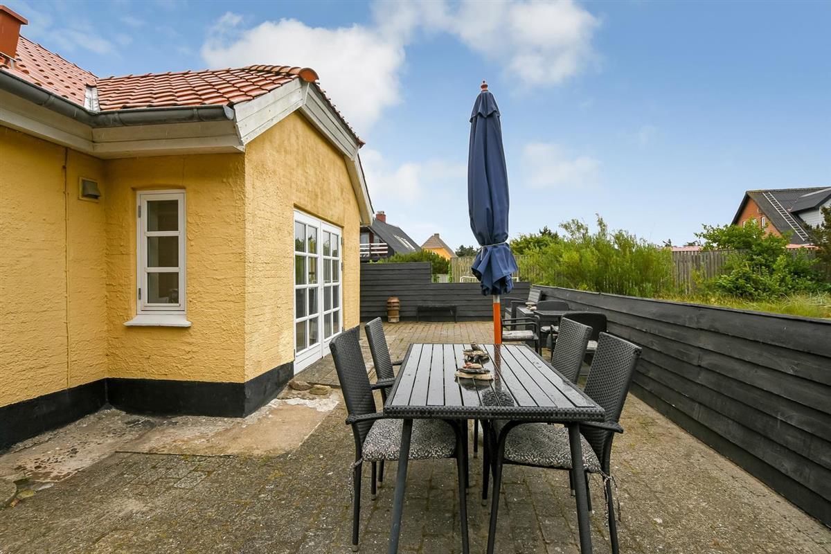 Dieses schöne Ferienhaus liegt auf einem 1.900 m2 großen Grundstück und ist wunderbar zurückgezogen mit Windschutz von allen Seiten. Die gemütliche, nach Osten ausgerichtete Terrasse mit Gartenmöbeln ist von einer halben Mauer umgeben und lädt dazu ein, den Morgenkaffee in aller Ruhe zu genießen. Auf der nach Süden ausgerichteten Terrasse befinden sich Gartenmöbel, zwei Sonnenliegen und ein Grill – ideal, um die späten Sommerabende ausklingen zu lassen und dem Rauschen der Nordsee zu zuhören die hinter den Dünen nur wenige hundert Meter vom Haus entfernt ist. In der Umgebung gibt es zahlreiche Möglichkeiten, einen entspannten Urlaub in Meeresnähe zu verbringen oder die vielen Aktivitäten der Gegend zu nutzen, wie Minigolf, Fußballgolf, Angeln in einem Put-and-Take-See und vieles mehr. Im Ort gibt es einen Kaufmann, Supermärkte, Cafés und Restaurants. In der Nähe des Hauses besteht die Möglichkeit, die lokale Bahn (VLTJ – die auch ihr eigenes Lied hat) zu nutzen. Vom Haltepunkt in Vrist dauert es etwas mehr als 10 Minuten mit der Bahn, um die gemütlichen Hafenstädte Thyborøn oder Lemvig zu erreichen, die beide gute Einkaufsmöglichkeiten bieten. Als Gast von SJ Feriehusudlejning können alle Gäste des Hauses die Bahn kostenlos nutzen. Für Spaziergänge gibt es mehrere schöne Wege entlang der Nordsee, am Ferring See, am Bovbjerg Leuchtturm und im Klosterheden-Waldgebiet.