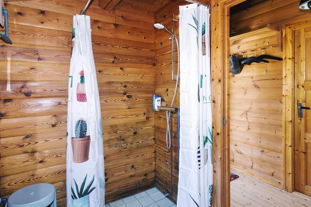 Das Badezimmer: Das Badezimmer ist hell und praktisch mit einer begehbaren Dusche, Toilette, Waschbecken und einer komfortablen Fußbodenheizung - perfekt für kalte Morgen.