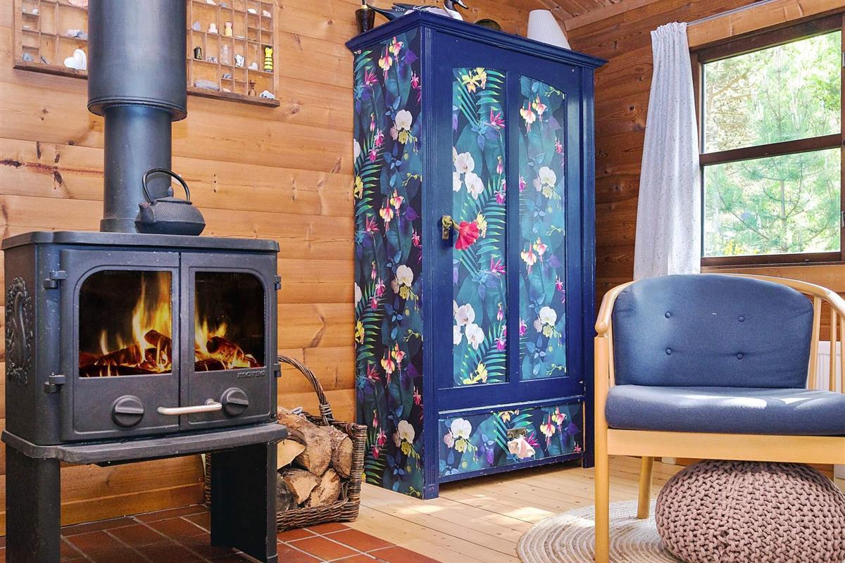 Das Wohnzimmer: Das helle und geräumige Wohnzimmer ist mit bequemen Möbeln und großen Fenstern ausgestattet, die viel Tageslicht hereinlassen. Hier finden Sie einen gemütlichen Holzofen, der an kühleren Tagen für Wärme und Atmosphäre sorgt. Es gibt einen Fernseher mit Chromecast und ein Radio, so dass es viele Möglichkeiten zur Entspannung und Unterhaltung für die ganze Familie gibt.