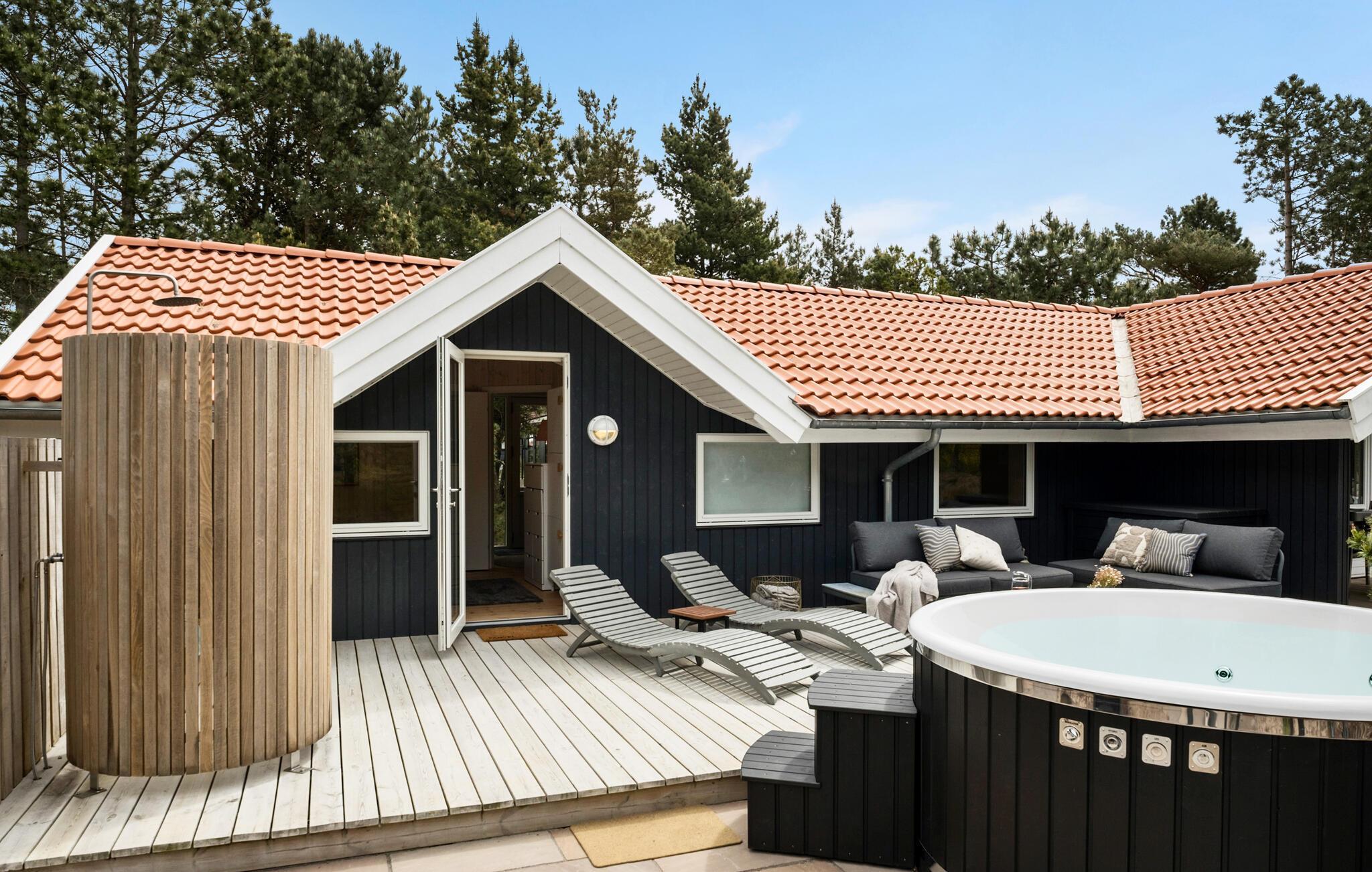 Ontspan in dit charmante vakantiehuis met hot tub, sauna en zeezicht, gelegen nabij het strand van Yderby Lyng.