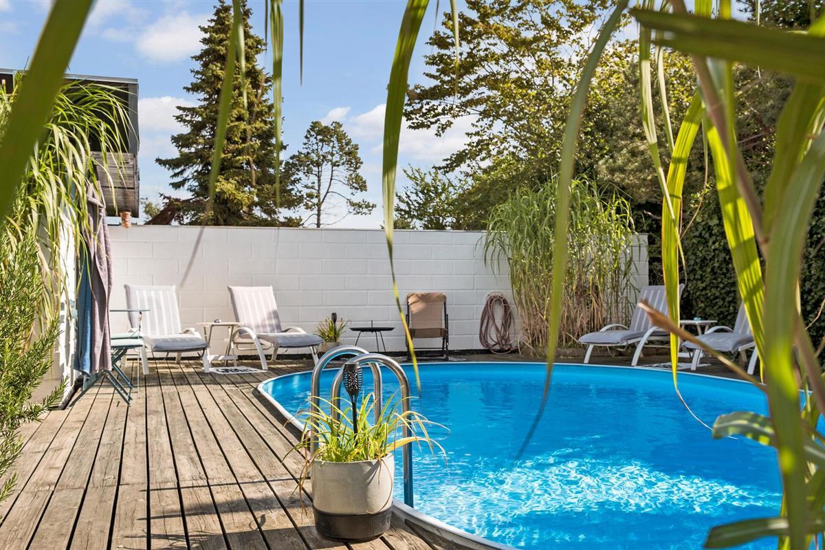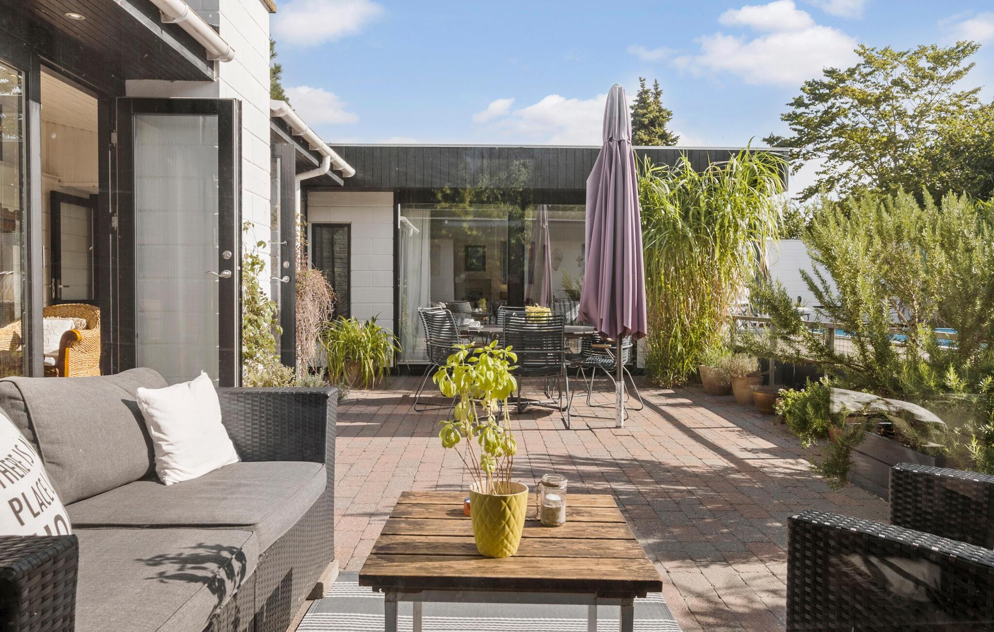 Ontspan in een sfeervol vakantiehuis met privézwembad en prachtige tuin in Yderby Lyng.