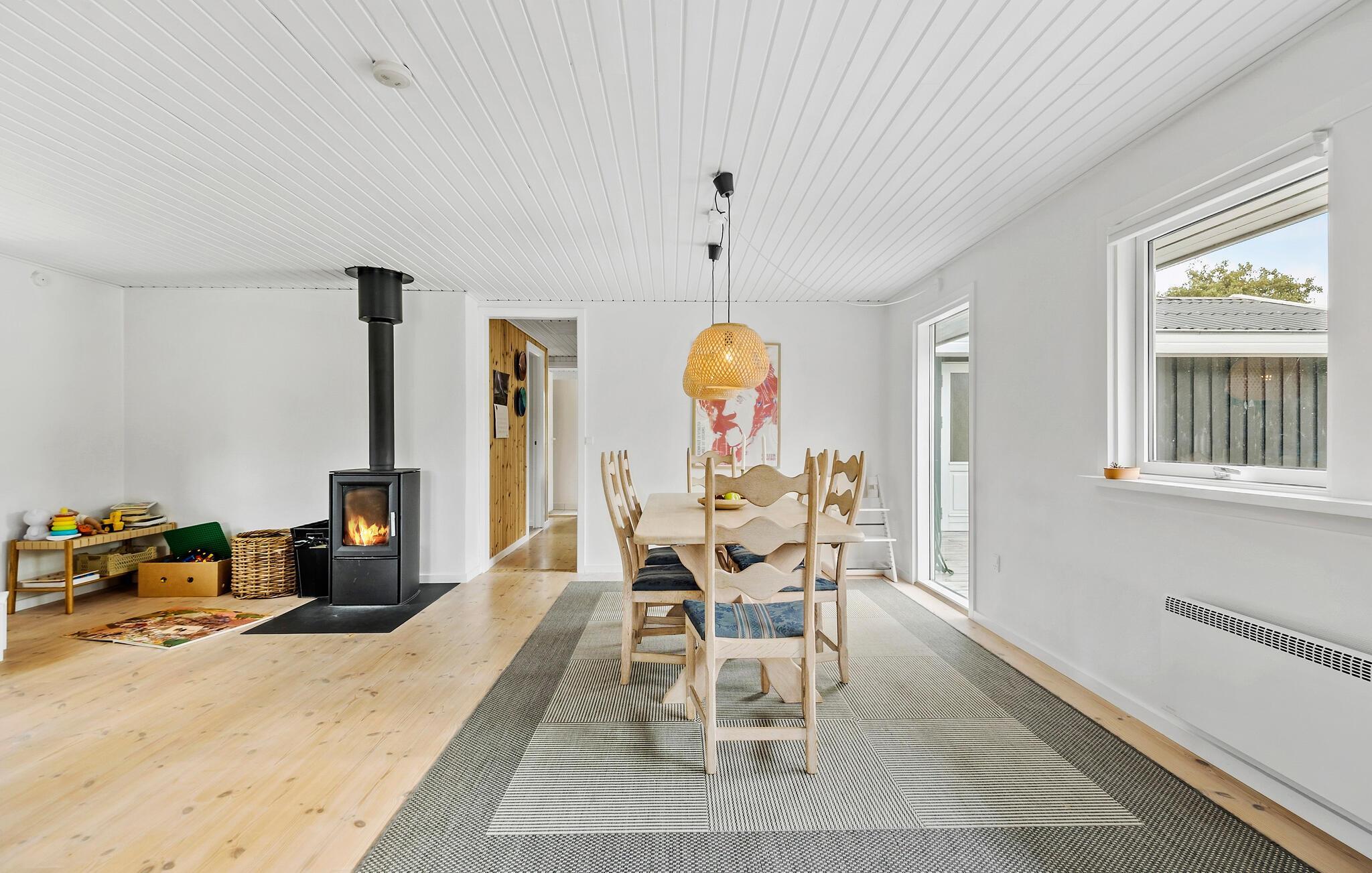 Dit gezellige tijdelijke huis nodigt je uit voor een ontspannen vakantie. Subtiele kleuren, een comfortabele bank en liefdevol geselecteerde details creëren een rustgevende sfeer waardoor je je meteen thuis voelt. Luister naar je favoriete muziek, blader door een spannend boek of bereid heerlijke maaltijden in de goed uitgeruste keuken. En als het 's avonds koeler wordt, steek je de houtkachel aan en geniet je van het rustgevende geknetter van het vuur.