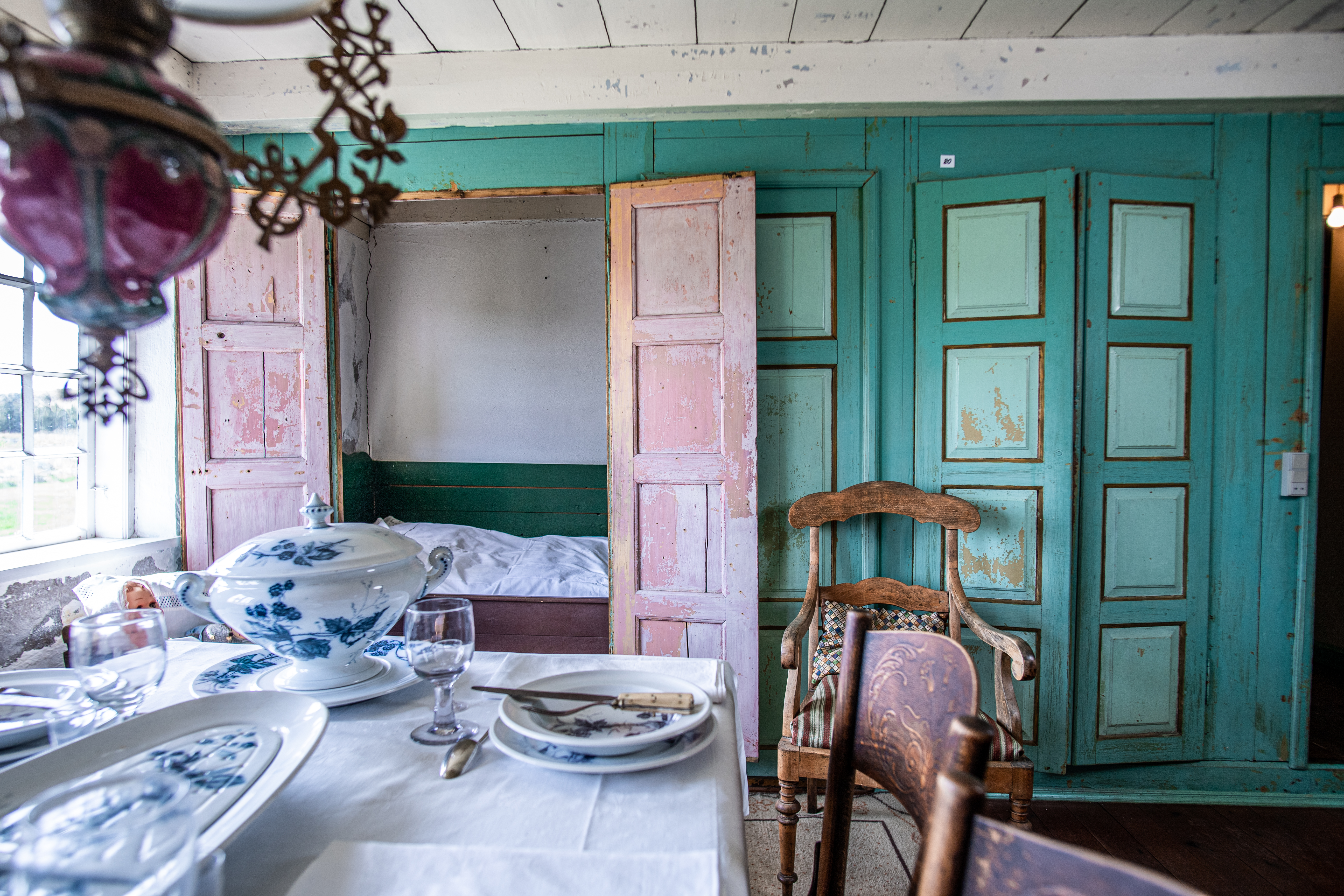 Als je de boederij van Abeline in de duinen bij Hvide Sande binnenstapt, voel je meteen dat je terug gaat in de tijd. Je hoort de klok tikken, je zie haar breinaalden en breiwerk klaar liggen en de koffie staat te pruttelen. Het lijkt alsof ze net even is opgestaan.