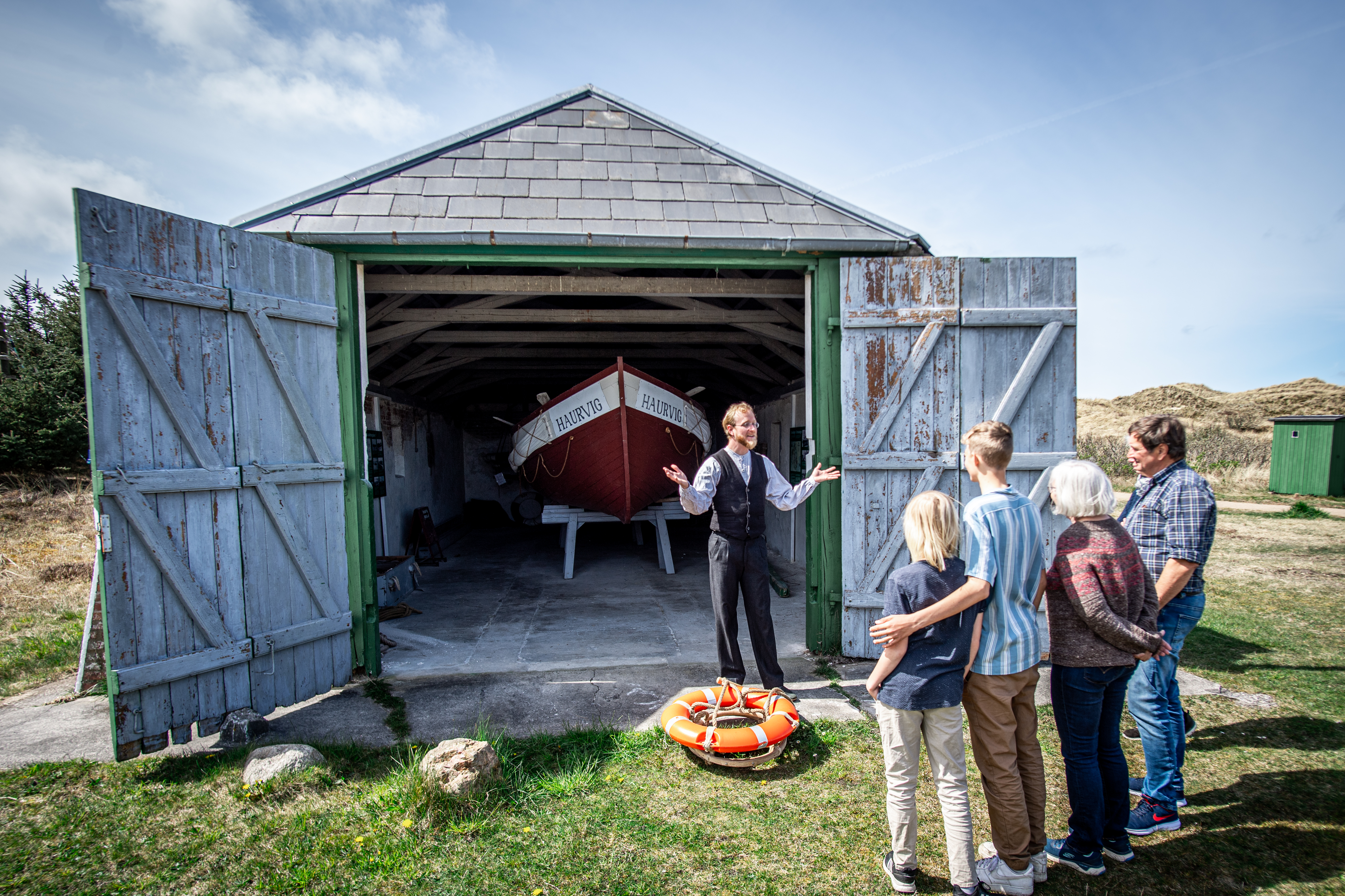 Bij Abelines Gaard staat een reddingsstation met een boothuis, rakethuis en telefoonschuur. Het is het oude reddingsstation van Haurvig. Vier keer per jaar kwam de plaatselijke reddingsbrigade om te oefenen en hun vaardigheden te testen, zodat ze precies wisten wat ze moesten doen als er een stranding plaatsvond. De activiteit in Haurvig was echter nooit zo uitgebreid als in veel andere plaatsen aan de westkust van Jutland. Haurvig redde 64 schipbreukelingen in 15 acties. Ze werden allemaal aan land gebracht met behulp van het raketapparaat. De reddingsboot, waarvan je vandaag de dag een replica kunt zien, werd nooit gebruikt.
