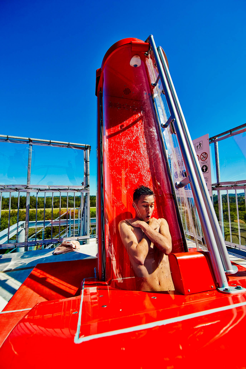 Durf je meer? Probeer dan de Water Cannon, ’s werelds eerste buitenwaterglijbaan met een vrije val én twee loopings – een ervaring die je hart sneller laat kloppen!