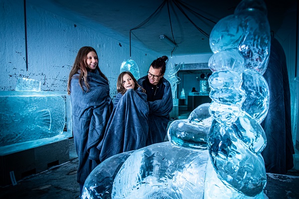 In de oude vriezer, waar de temperatuur constant tussen -15 en -5 graden ligt, kun je de magische sfeer ervaren en de ijskunstwerken zien schitteren in het speciale samenspel met de lichtbronnen. Het is een ervaring voor alle zintuigen, waarbij het koude, heldere ijs in combinatie met sfeervolle verlichting en themamuziek een heel bijzondere sfeer creëert.